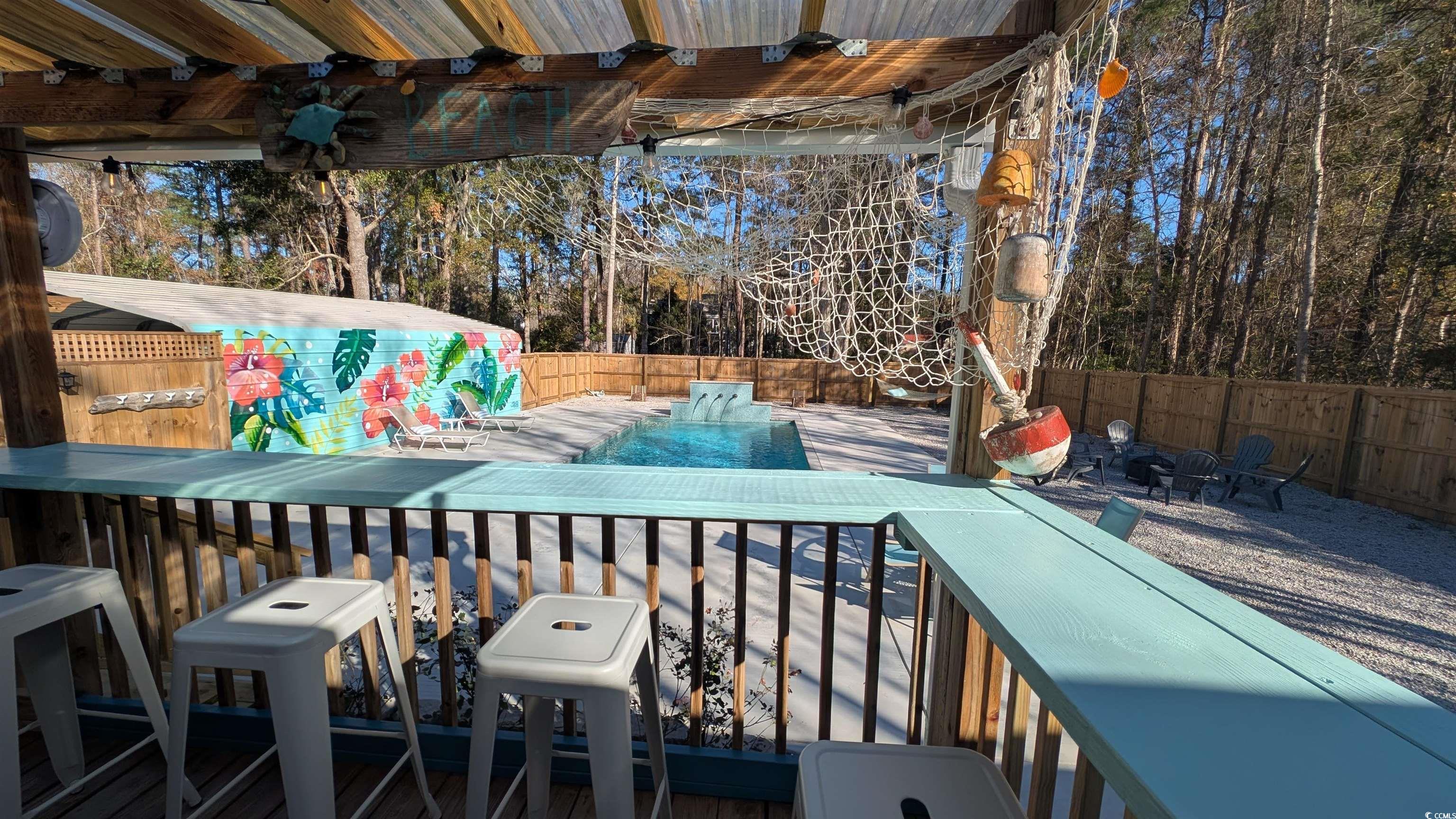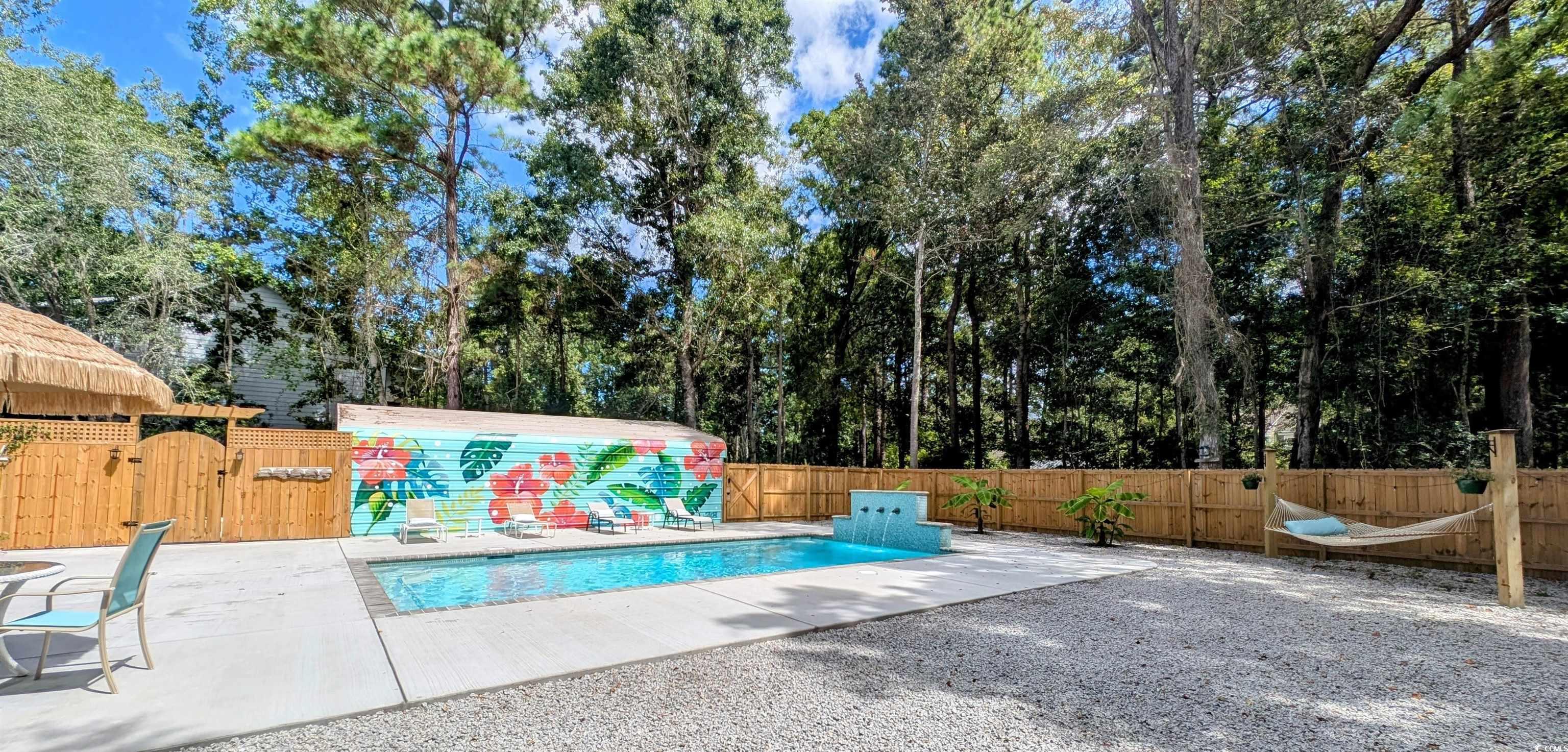 Welcome to your turn key dream getaway in Pawleys Island fully furnished for a second home or short term beach rental! Just 5 minutes from your door step to the South End Beaches of Pawleys Island and Hagley Boat Ramp. NO HOA's! Large private half acre lot. Lots of room out back to add outbuildings, greenhouse, chickens or other. Perfect for those looking for more flexibility and less rules to live by. Short Term Rentals allowed to bring in cash flow for investment property and or 2nd home property options! Bring your boat and RV for parking. Brand new in-ground gunite Salt Water Pool installed 2025 with Hayward Heater/Chiller by Pools of South Carolina. New Metal Roof installed October 2024. Recent updates throughout the kitchen, baths, updated electrical, new LVP flooring and more. Wood burning fireplace to enjoy the chilly winter months. All 3 bedrooms have walk-in closets. Pool mural hand painted by local Pawleys Island artist. Nice and quiet dead-end street. New driveway, new wood privacy fencing, power brought to back and carport, concrete decking and more. Detached carport and additional storage. Stairs leading to unfinished 800 sq ft upstairs with already approved building permit from Georgetown County Building Department to finish the upstairs if desired beyond storage: Add one or two more bedrooms, bathroom or flex space to increase property value further to bring this home to 2300 sq ft of conditioned living space. Also, an additional 500 sq ft of covered porches in the front and back to relax on making it a total of 2800 sq ft under the roof property! Hagley Boat Ramp is just down the road 2 miles and 2 miles to the South end of Pawleys Island to enjoy the creek and beaches. Crawl space is fully encapsulated with a dehumidifier. Serviced by Terminix and Termite bonded. Large private .50 acre lot surrounded by mature trees. Room for circular driveway out front and/or additional parking. Close to great schools, shopping and a short drive to Historic Georgetown. Also, only one hour to Charleston and 35 minutes to the Grand Strand in Myrtle Beach. Pawleys Island really is the perfect location for it all and so close to the beach! The seller is a licensed real estate agent in South Carolina. Please contact the seller/agent directly if not working with an agent for more information.