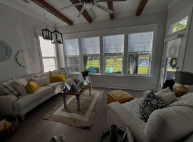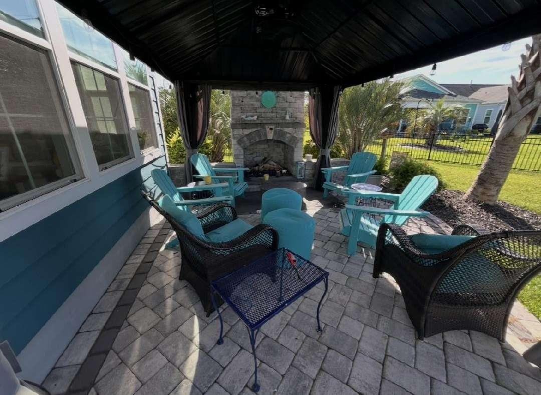 Beautiful coastal home, located in Prince Creek. Sits on desired pond front lot. 2209 heated sq ft. offers 3 bedrooms, 2 1/2 baths, upgraded kitchen with walk-in spacious pantry. Large Island with white farm sink, quartz countertops and bar seating. Combination oven and microwave, gas cooktop with exposed stainless-steel hood. Matching whirlpool stainless steel appliances, garbage deposal. Plenty of cabinet space, with pullout drawers in some cabinets. Undercabinet lights, and coffee bar. Dining area, open living area with ship lapped fireplace and remote-control gas logs, tray ceiling with weathered ship lap. Sunroom with lots of light, custom shades and exposed beams. sunroom opens onto large paver patio, with custom fireplace, gas logs, fenced in backyard with professional landscaping including 4 palm trees, outdoor lighting and irrigation system. Second water meter for the irrigation system. The large primary bedroom, with ensuite includes cave shower, double sinks and large walk-in closet. Laundry room, private powder room for guest. The remaining two bedrooms have a Jack-and-Jill bath. Front door opens to large foyer, with upgraded millwork, trim package and sliding farm door to guest bedroom area. 2 car garage, extra space for golf cart or shop, garage door, with remote control that opens to a mud room. All lights have been up graded with new lights and fans. No carpet, LVP and ceramic tile throughout the house. Plantation shutters throughout house. 10' ceilings.