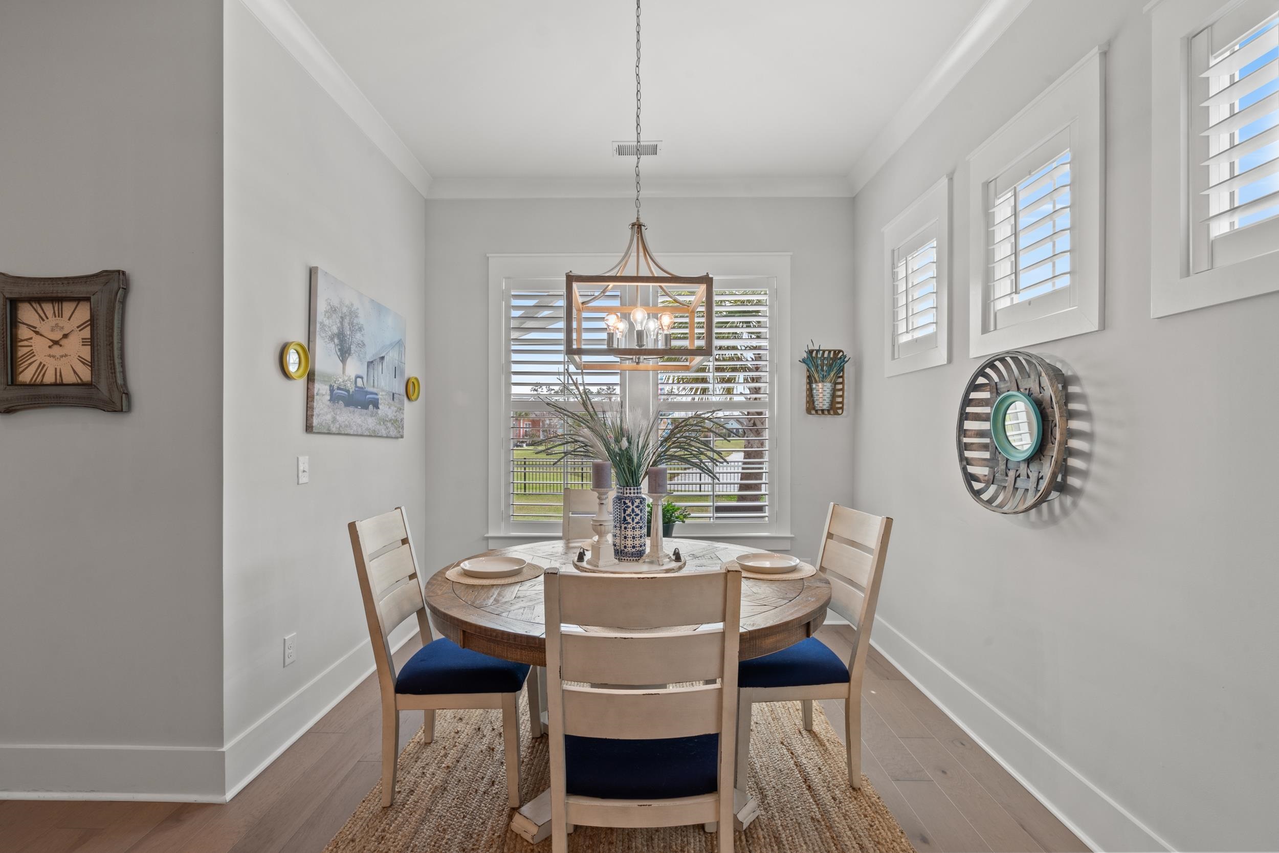 Stunning home in the desirable Prince Creek community offering 3 bedrooms, 2.5 baths within St. James school district. The gourmet kitchen features a large island, quartz countertops, stainless steel appliances, a gas cooktop, and a walk-in pantry, opening to a spacious living area with a fireplace and tray ceiling that flows into a bright sunroom with serene pond views. Step outside to a paver patio with a custom outdoor fireplace—perfect for relaxing or entertaining. The primary suite includes double vanities, a walk-in shower, and a large walk-in closet, while two guest bedrooms share a Jack-and-Jill bath plus a convenient powder room. Additional highlights include 10-foot ceilings on the first floor, crown molding throughout the main living areas and primary bedroom, plantation shutters, LVP and tile flooring (no carpet), upgraded lighting throughout and a beautifully landscaped fenced yard with irrigation. The 2-car garage offers extra space for a golf cart or workshop. Residents enjoy wonderful community amenities including a walking trail, two pools, pavilion area with restrooms, tennis and pickleball courts, and fire pits.