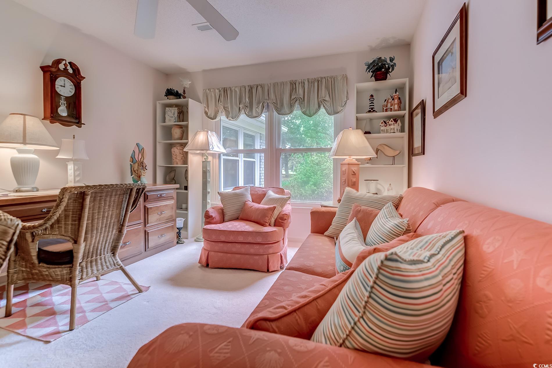 Coastal living at its finest. This home is beautifully situated on the popular Arcadian Shores Golf Course in Myrtle Beach surrounded by lush mature landscaping and natural beauty. Spacious open and covered outdoor living areas provide private venues for evening entertaining. Super nice porch also with the hurricane impact winddows allowing the scenic views of the outdoors and the golfers. Carolina Room overlooking golf course with a cozy double-sided fireplace. Lots of space in kitchen including an adorable breakfast nook. Attic in garage with pull down ladder. Private beach access and free parking is available to all Arcadia Ridge residents close to the community. Roof replaced in 2023. All windows were replaced with Hurricane Proof and Impact Resistance windows. All Window Treatments convey. Termite bond in place. Lawn Well for the lawn sprinkler. Nice community pool included.