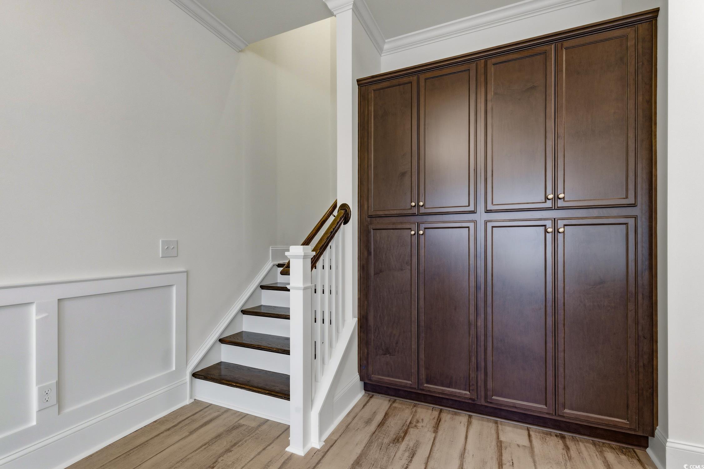 Welcome to 965 Hackler Street Unit D, a beautifully finished 3 bedroom 2.5 bath townhome perfectly positioned overlooking the heart of Market Common. This area is one of Myrtle Beach’s most desirable communities, known for its walkability and vibrant lifestyle. From morning coffee to dinner and drinks, everything you need is just steps away. Market Common features a movie theater, brewery, bowling alley, athletic fields, gym, parks, miles of walking paths, and access to a community pool and lazy river. It is truly a place where convenience, entertainment, and community come together, and you are genuinely buying a lifestyle here. Inside, this home offers an open, airy layout with upgraded flooring, detailed trim work, and a stunning kitchen featuring granite countertops, stainless steel appliances, a large center island, and rich cabinetry. The living and dining areas flow seamlessly together, filled with natural light and designed for easy everyday living. Upstairs, the owner’s suite is a true highlight with his and hers walk in closets, a spa inspired bathroom featuring a tiled walk in shower, double vanities, and a soaking tub, and a spacious private balcony that overlooks Market Common. Additional bedrooms provide great flexibility for family, guests, or a home office. A huge bonus is the attached 2 car garage, providing rare convenience and ample storage in this highly sought after area. With double front porches overlooking Market Common, premium finishes throughout, and an unbeatable location, this townhome offers the perfect blend of comfort, style, and lifestyle. Do not miss your chance to call Unit D at 965 Hackler Street home.