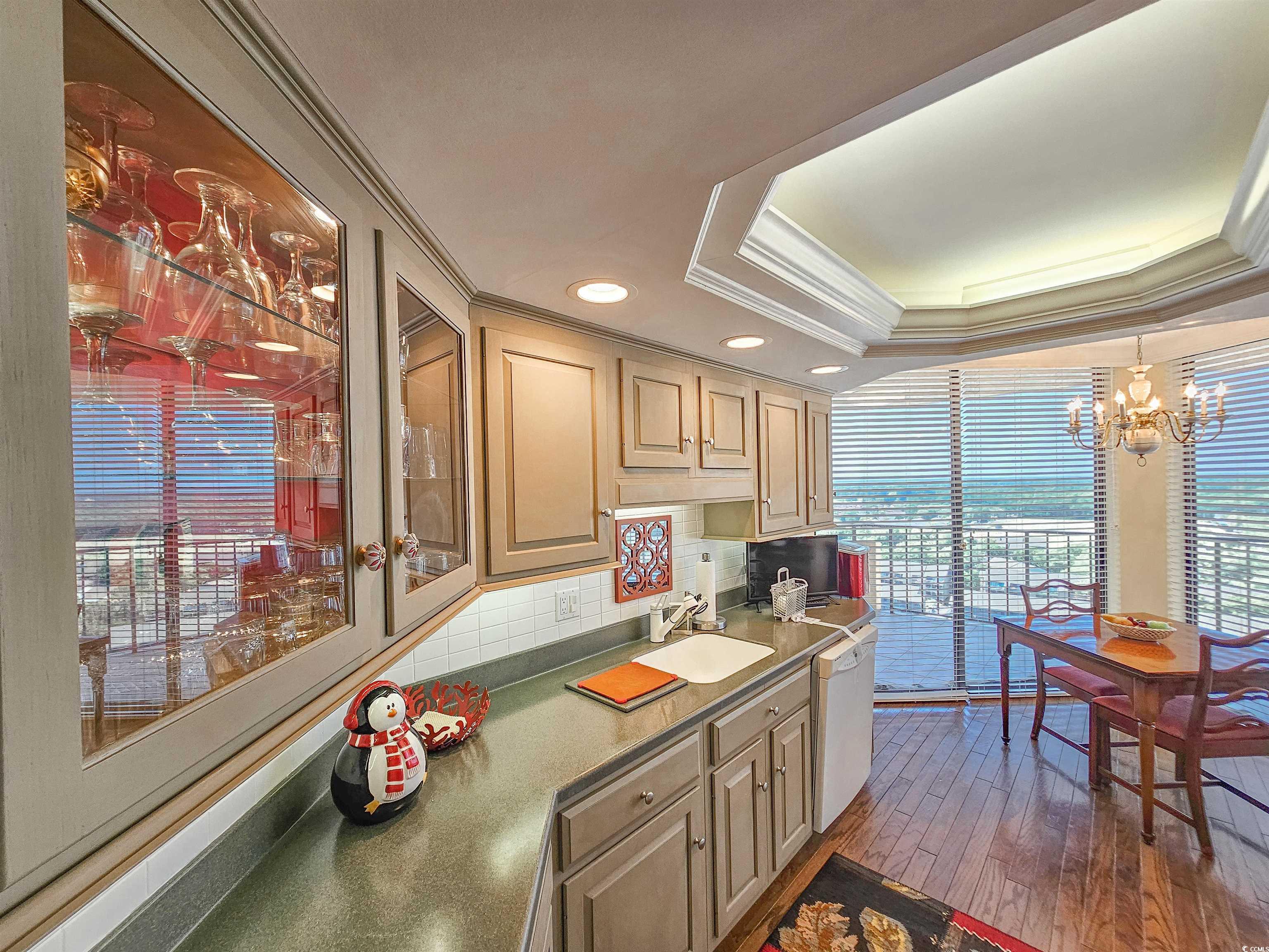 One of the MOST LUXURIOUS OCEANFRONT TOWERS in Myrtle Beach! This is one residence you need to see to appreciate. This professionally furnished two bedroom, two bath is so charming! It has been remodeled, refreshed, and refurnished with a built-in wall unit in the living room. The kitchen has solid surface countertops and custom cabinets. Large bedrooms with walk-in closets and split bedroom plan. The vanities in both bathrooms have been remodeled. Three large balconies and what a sunset! Located inside the Maisons sur Mer where everything awaits you! Oceanfront lounge, restaurant, large oceanfront swimming pool, Tiki Bar, tennis courts, media and pool room, fitness center with saunas, game room, outdoor grilling, underground parking, 24-hour security and close to everything Myrtle Beach has to offer. Perfect for a primary residence, second home or rental option.