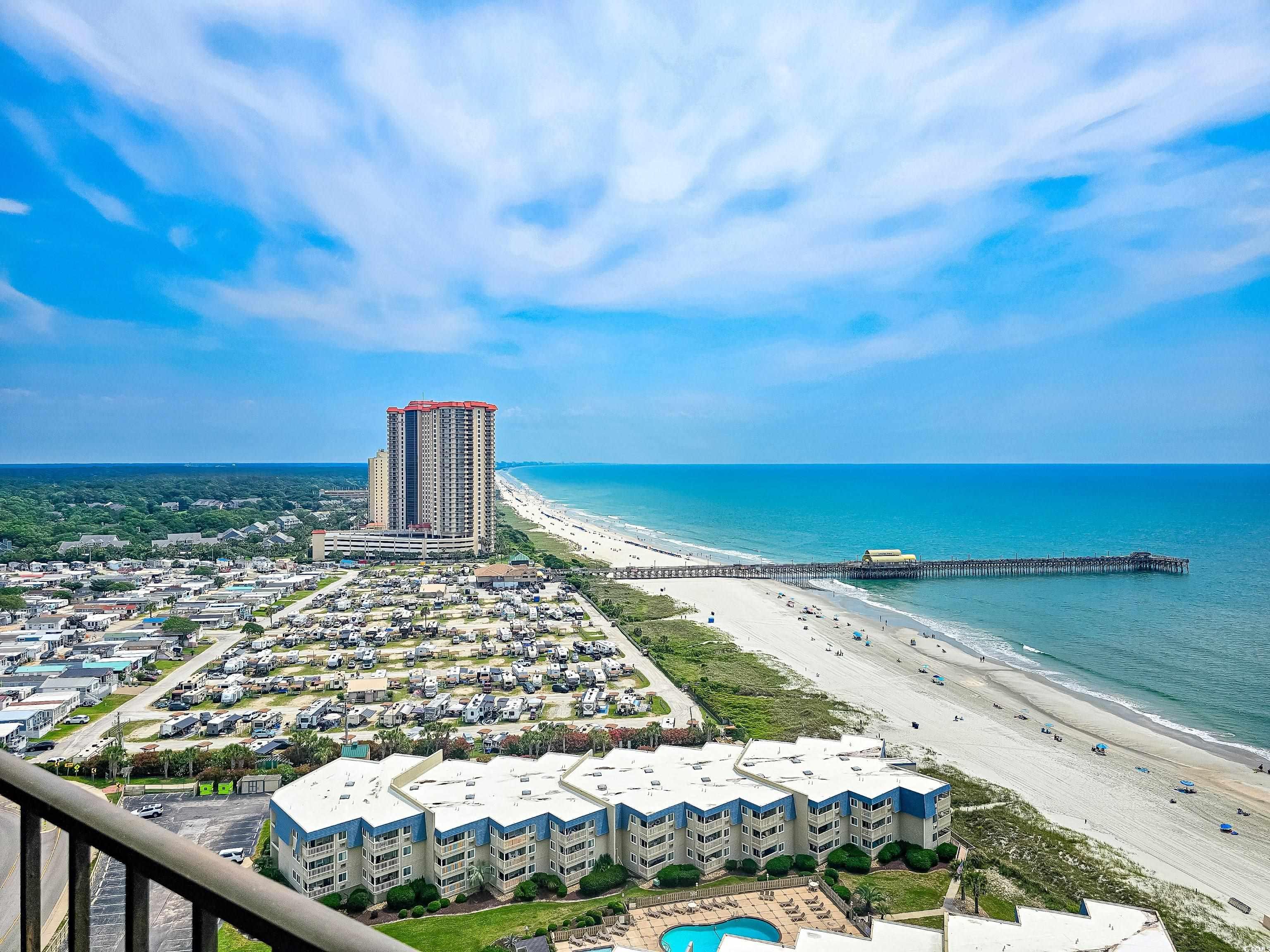Experience breathtaking views every day from one of these two large balconies. Enjoy the sunrise and look down the Atlantic coastline into North Carolina. This two-bedroom, two-bath residence is fully furnished with over 1,800 square feet. The kitchen has granite countertops and stainless steel appliances. Large primary bedroom with sitting area, walk-in closet, split bedroom plan. Open floor plan - great for entertaining and a view from every room. Located inside the prestigious Maisons sur Mer, this oceanfront tower has it all. The amenities include an Oceanfront lounge, pool, Tiki Bar, Bon Appetite restaurant, billiards and media room, separate dining area, card room, library, fitness center, men's & women's sauna, game room, outdoor grilling, basketball and tennis court, underground parking, 24-hour security, and the list goes on! Perfect primary residence, second home or rental option. A must see!