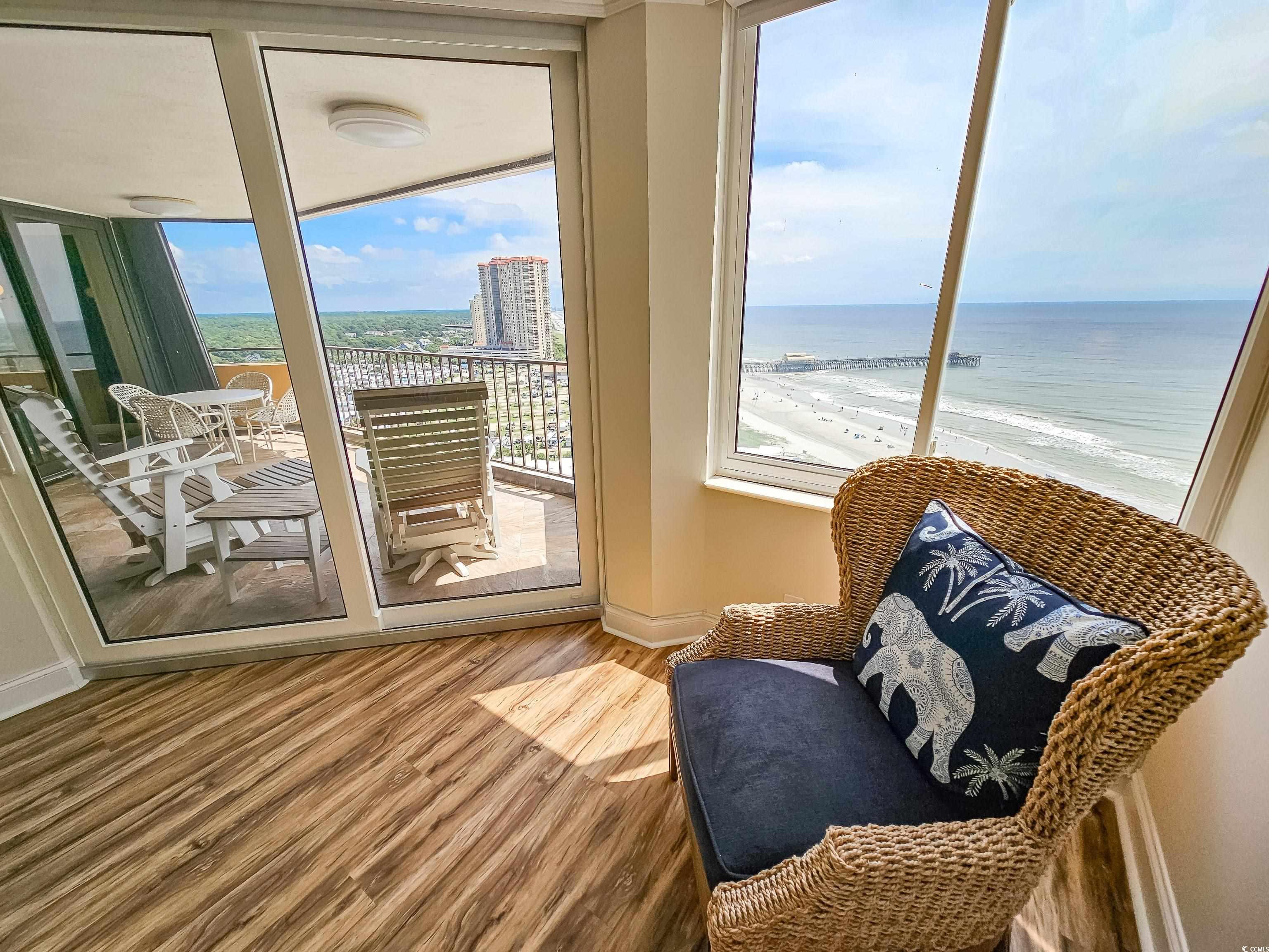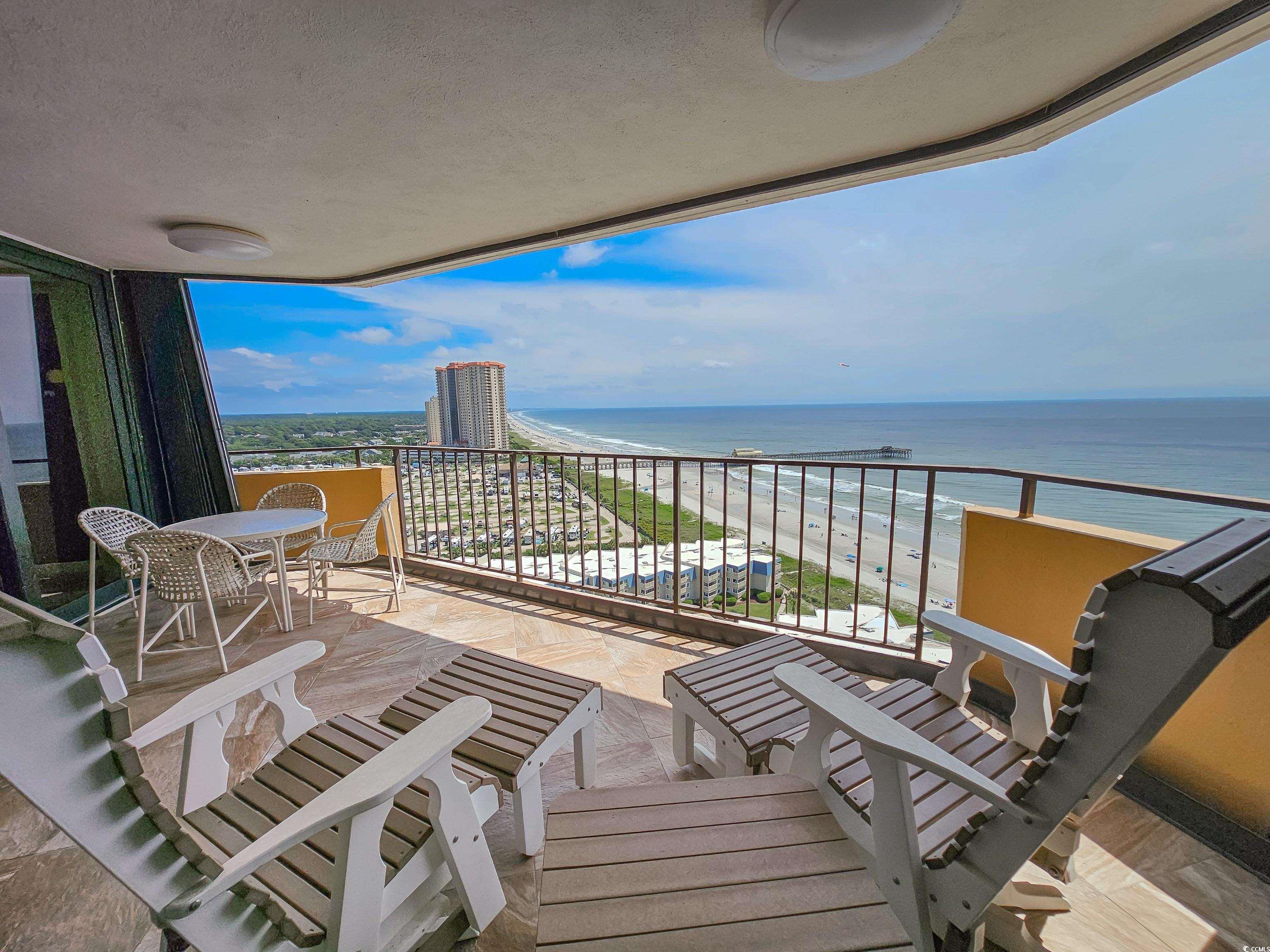 Indulge in unparalleled views down the Atlantic Coastline! Just step out onto one of the two large balconies and watch the sunrise. This furnished two bedroom, two bath residence is move-in ready with over 1,800 sq. ft. of open floor plan, great for entertaining. The kitchen has granite counter tops, a breakfast nook, pantry and beautiful LVP flooring. Split bedroom floor plan. Large primary suite with sitting area, two large walk-in closets. Baths have a shower and a tub/shower combination. New sliding glass doors and hurricane shutters. This is a perfect primary residence, second home or investment property. Located inside the prestigious Maisons sur Mer, this oceanfront tower has it all. The amenities include an Oceanfront lounge, pool, Tiki Bar, Bon Appetite restaurant, billiards and media room, separate dining area, card room, library, fitness center, men's & women's sauna, game room, outdoor grilling, basketball and tennis court, underground parking, 24-hour security, and the list goes on! Perfect primary residence, second home or rental option. A must see!