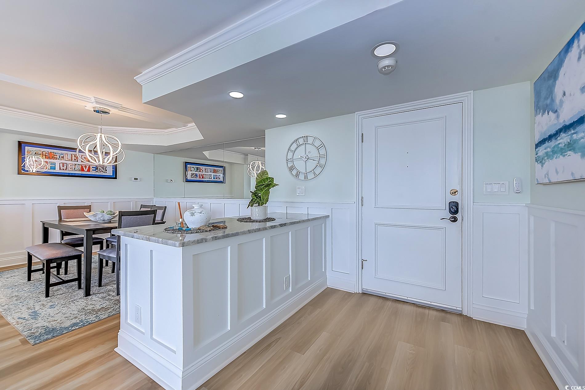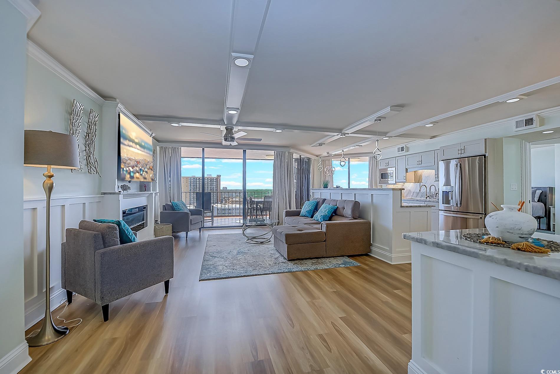 Welcome to this exquisitely renovated condo in the prestigious Maisons-sur-Mer in Myrtle Beach, offering breathtaking ocean and sunset views! Completed in 2024, this condo boasts a full-scale renovation with luxury upgrades throughout and generates strong rental income, making it an excellent investment opportunity as well as a personal coastal retreat. Key Renovations: Open Concept Design: The interior kitchen wall was removed to create a spacious flow from the kitchen to the living area, perfect for entertaining. Updated Ceilings & Walls: Popcorn ceilings were removed, and slick ceilings now extend throughout the unit. The master suite wall was straightened to enhance the kitchen layout, and wainscoting and custom mirrors have been added in the dining area. Stunning Kitchen Remodel: Features all-new cabinetry, a large island with a stove/oven placement, LED-lit coffered ceilings, and granite countertops. A sleek kitchen backsplash adds a stylish touch. Elegant Bathroom Renovations: Both the master and guest bathrooms have been completely remodeled, including walk-in tiled showers with glass enclosures, new vanity cabinets with granite tops, double sinks, and linen cabinets. Masterful Closets & Laundry Room: Custom-built closets in the master and guest bedrooms, along with new cabinets in the laundry room, offer ample storage space. Stylish Interior Upgrades: Interior doors, electrical outlets, switches, and fixtures were replaced, and LED lighting was added in coffered ceilings and crown molding with LED rope lighting in the living room. Luxury Flooring & Fireplace: Durable LVP flooring flows throughout the unit, and an electric fireplace with a custom buildout and granite top creates a cozy ambiance. Additional Details: Crown molding, drapery pockets, dimmer switches, new baseboards, and shoe molding complete the modernized look of this Masions-sur-Mer condo. Maisons-sur-Mer Amenities: Maisons-sur-Mer is one of the most sought-after oceanfront high-rises in Myrtle Beach, offering a luxurious array of amenities: Oceanfront Pool & Sundeck: Enjoy a refreshing swim or relax with stunning ocean views. Private Beach Access: Direct access to the sandy shores of Myrtle Beach, just steps away. Tennis Courts & Fitness Center: Stay active with well-maintained tennis courts and a state-of-the-art fitness facility. On-Site Restaurant & Bar: Convenient dining options with a bar and restaurant on the premises. 24-Hour Security: Feel safe and secure with 24-hour security manned security. Game & Media Rooms: Perfect for entertainment and leisure, including a media room for movie nights and social gatherings. Parking Garage & Guest Parking: Covered parking for residents and plenty of parking options for guests. This beautifully renovated Maisons-sur-Mer condo is move-in ready, offering the perfect blend of luxury living, strong rental income potential, and the ultimate coastal lifestyle. Don’t miss your chance to own this oceanfront paradise!