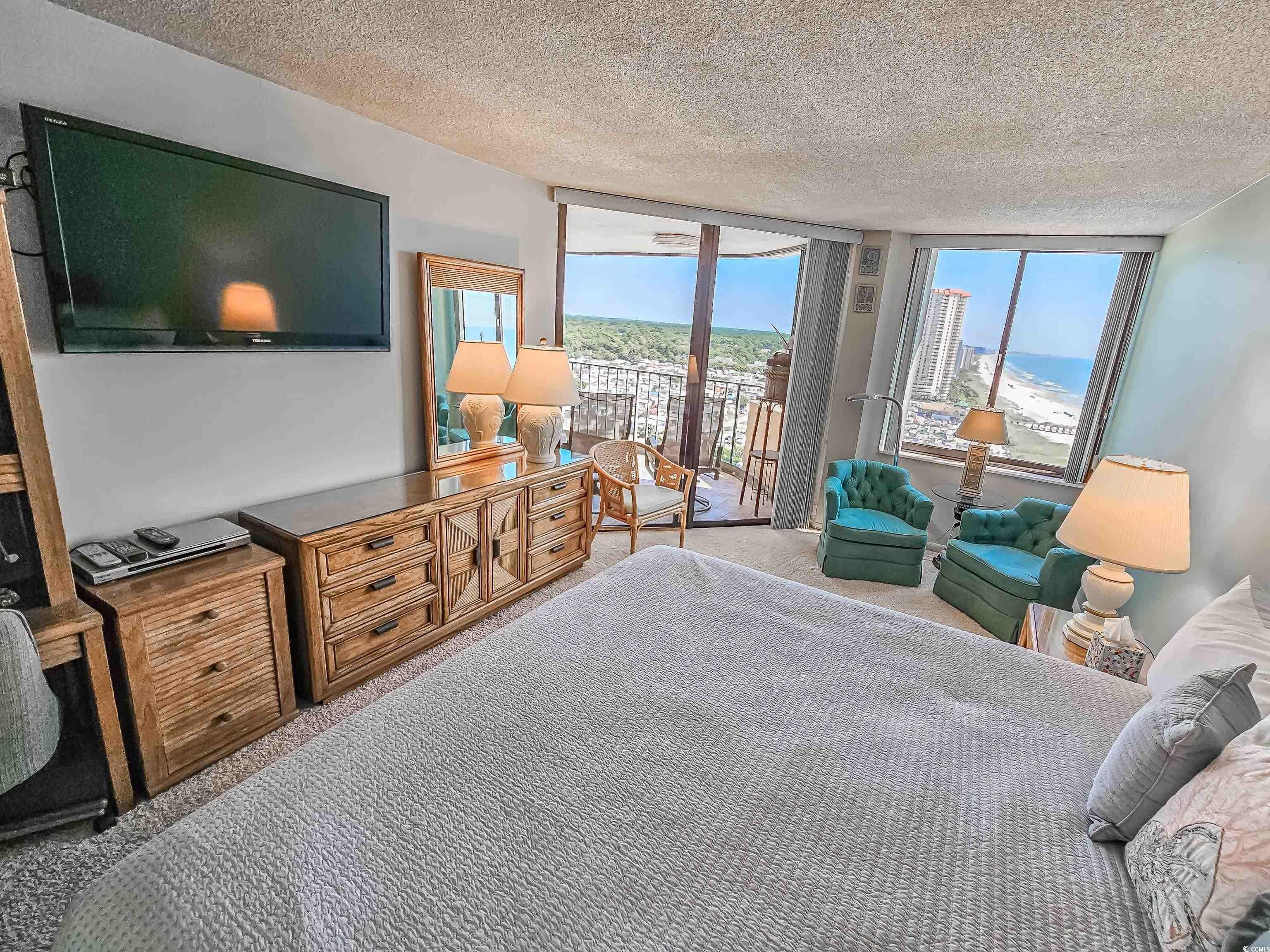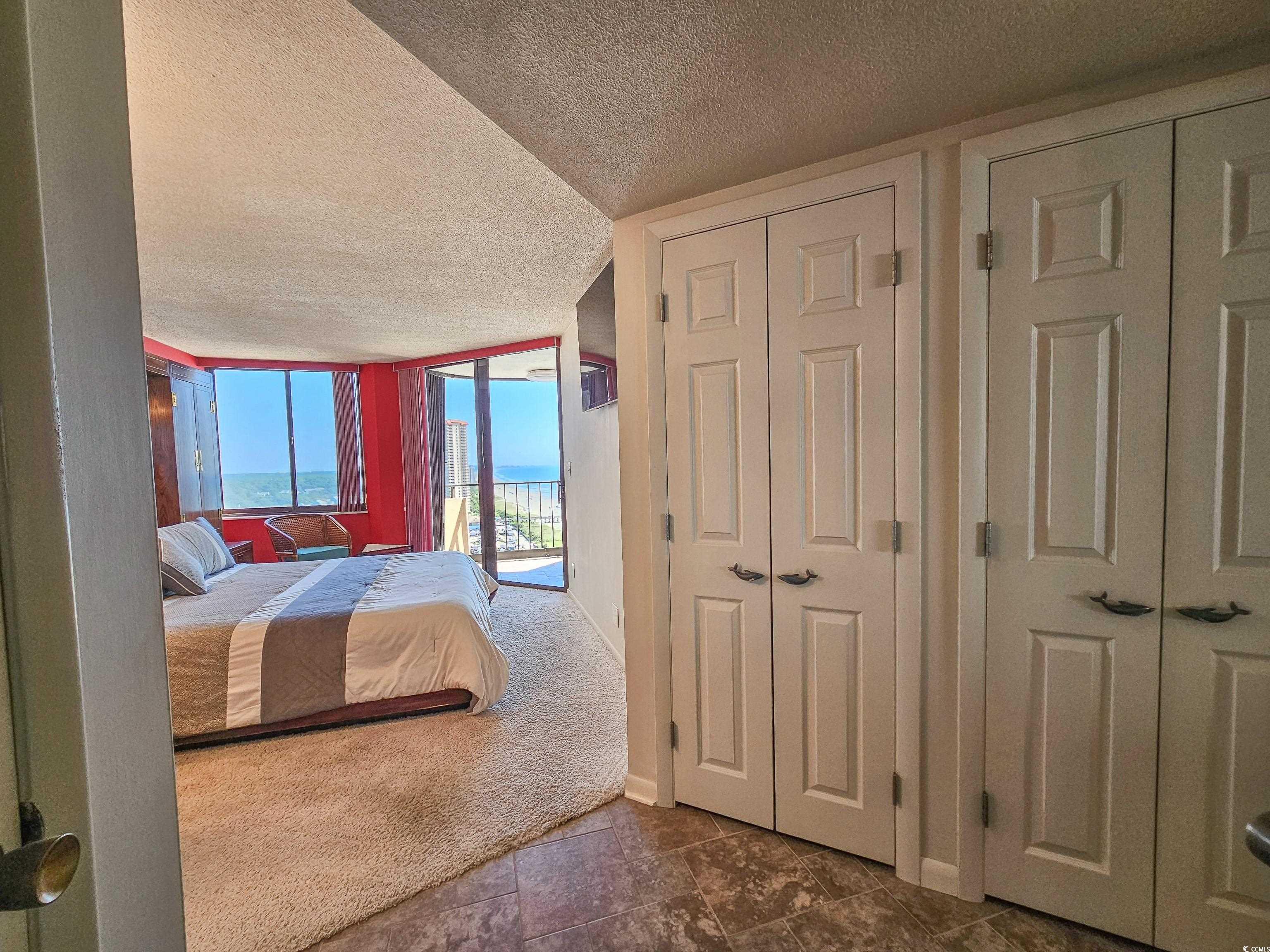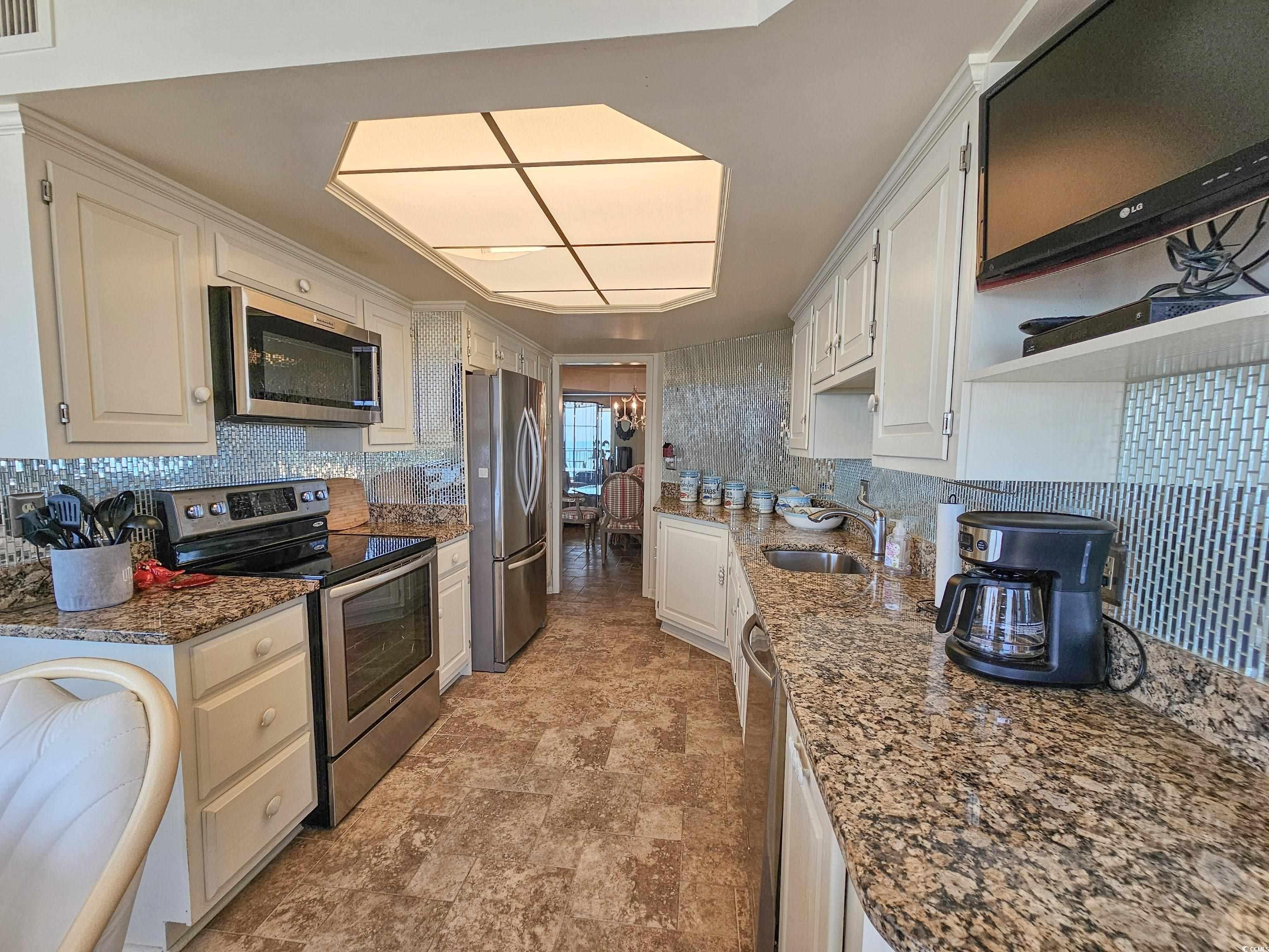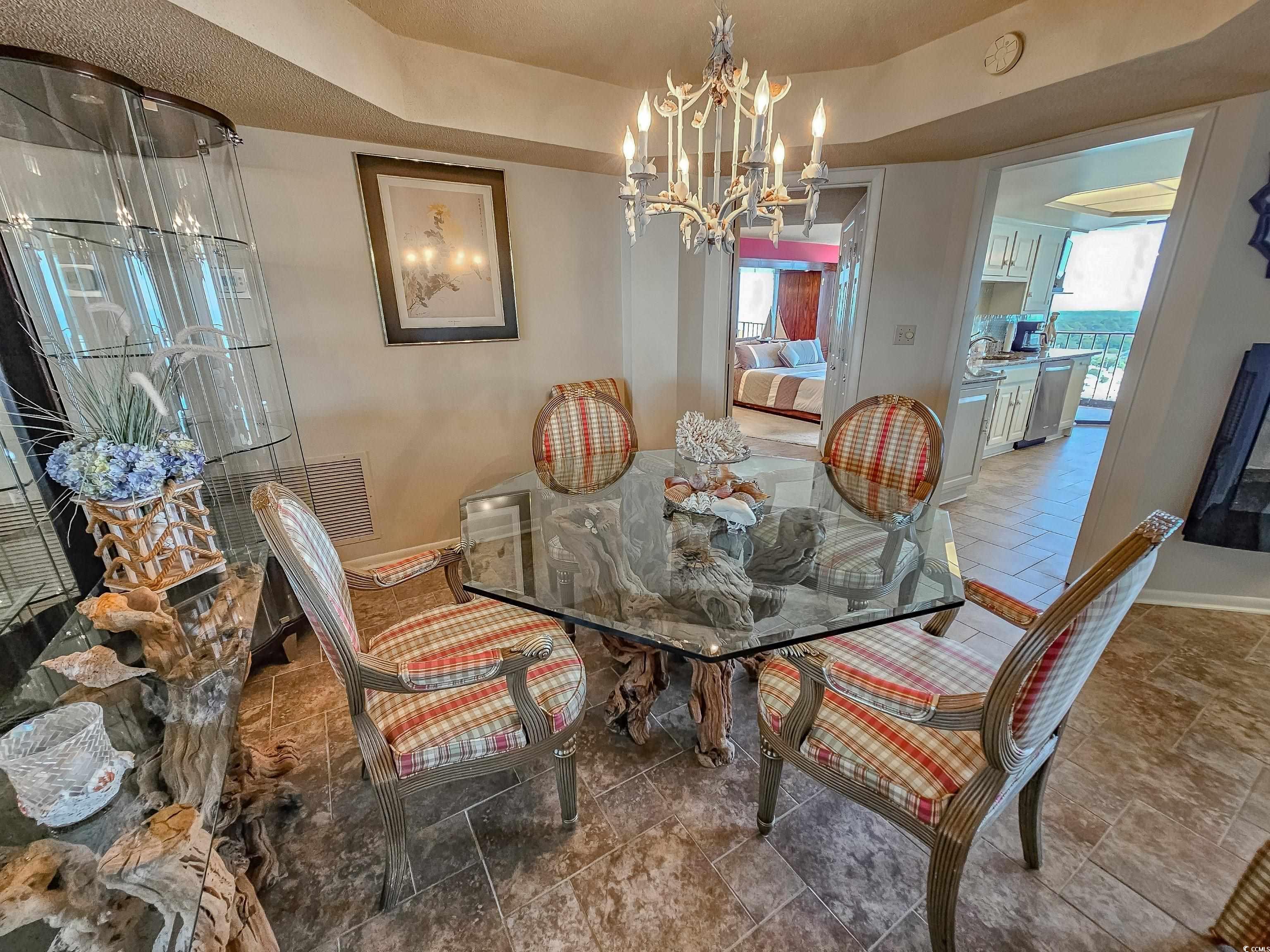 Experience breathtaking views every day, you will never want to leave your balcony! Step inside this two-bedroom, two-bath residence and enjoy the view from every room, and what a sunrise! The unit is furnished with a fireplace between the living and dining rooms and glass cases in the dining room, which are great for showcasing those special items. The kitchen has solid surface countertops, stainless steel appliances, a breakfast nook, and steps off to the balcony. Hurricane shutters on the balcony. The primary suite and the split bedroom floor plan have large walk-in closets. There is extra storage at the end of the hallway. This luxury oceanfront tower has amenities like no other tower on the beach. Beautiful lobby with 24-hour security at the front desk, oceanfront lounge, pool with Tiki bar, Bon Appétit restaurant and dining area, billiards and media room, fitness center, ladies' and men's sauna, game room, underground parking, basketball and tennis court, and much more! Great primary residence, second home or rental option. A must see!