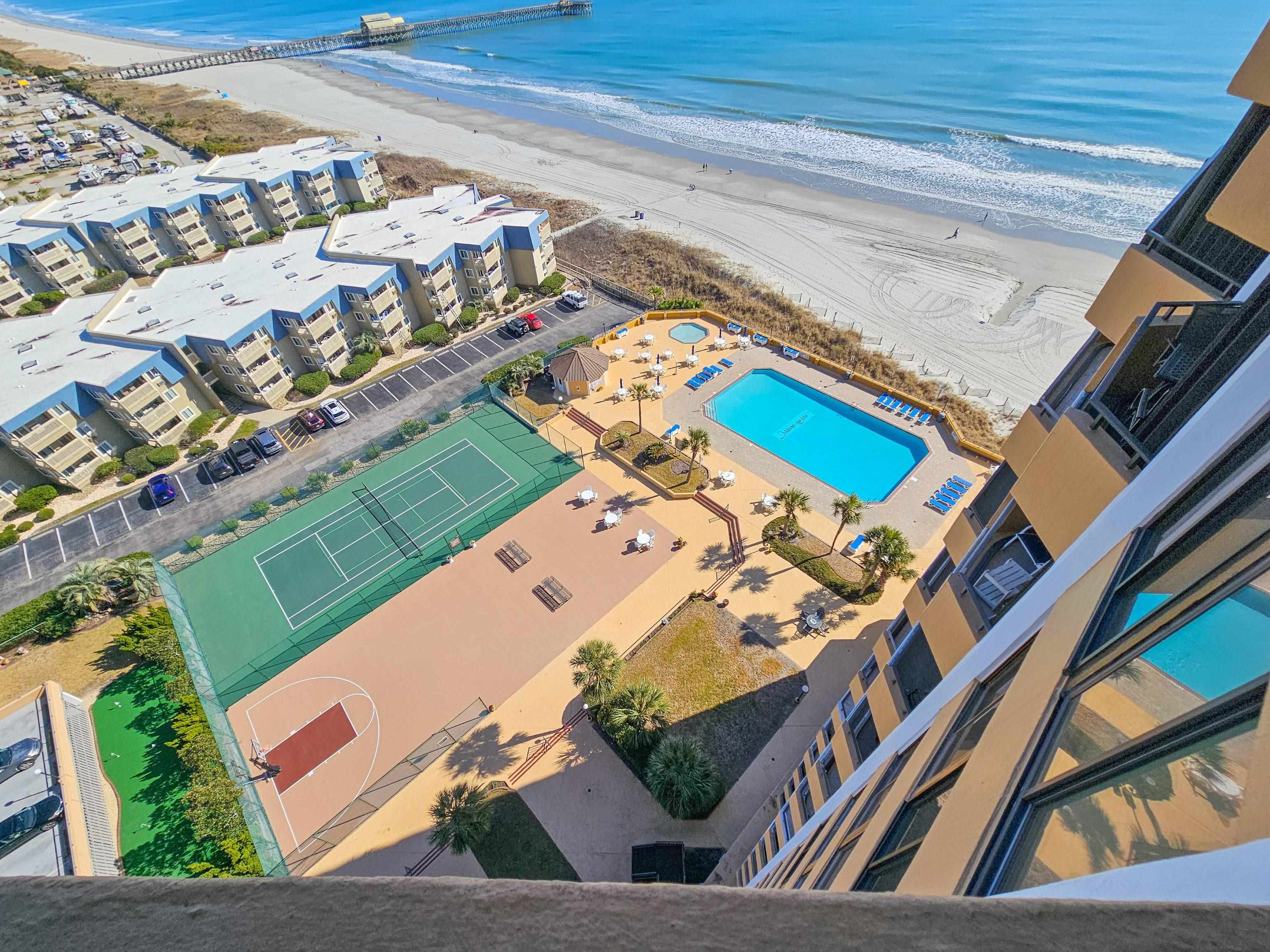Wake each day to panoramic ocean views and soothing waves from your large balcony. This residence features a spacious layout for comfort and relaxation. This two-bedroom, two-bath residence features LVP flooring in a beautiful herringbone pattern. Split bedroom floorplan with two large walk-in closets, a formal dining room, and stainless steel appliances in the kitchen. This luxury oceanfront tower has amenities like no other tower on the beach. Beautiful lobby with 24-hour security at the front desk, oceanfront lounge, pool with Tiki bar, Bon Appétit restaurant and dining area, billiards and media room, fitness center, ladies' and men's sauna, game room, underground parking, basketball and tennis court, and much more! Great primary residence, second home or rental option. A must see!