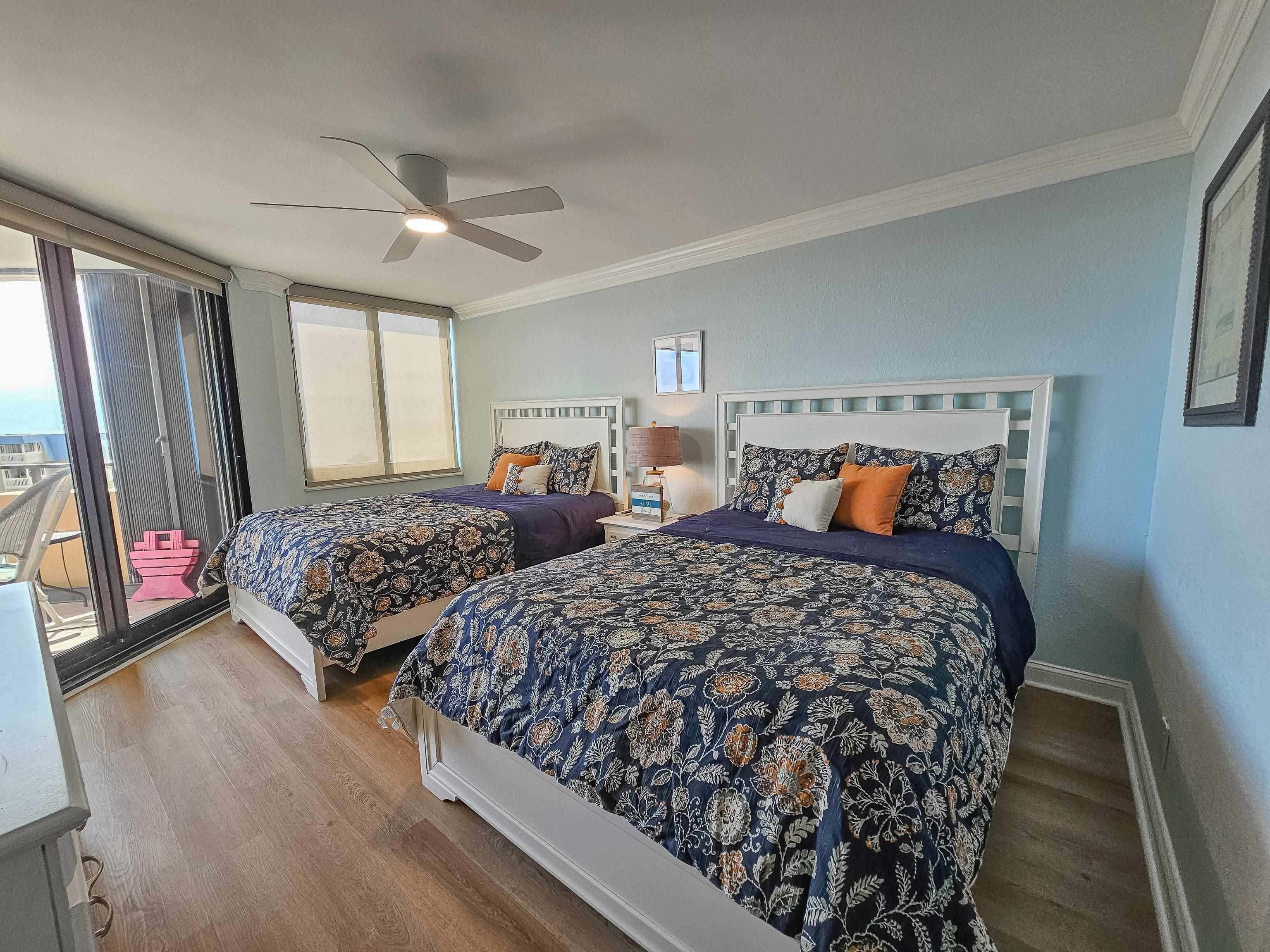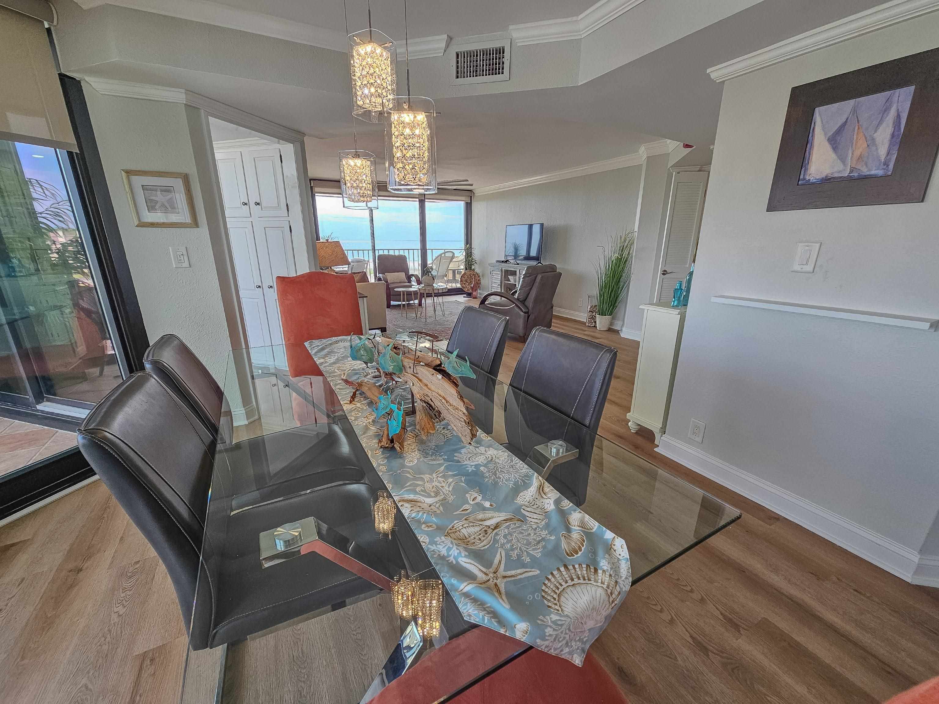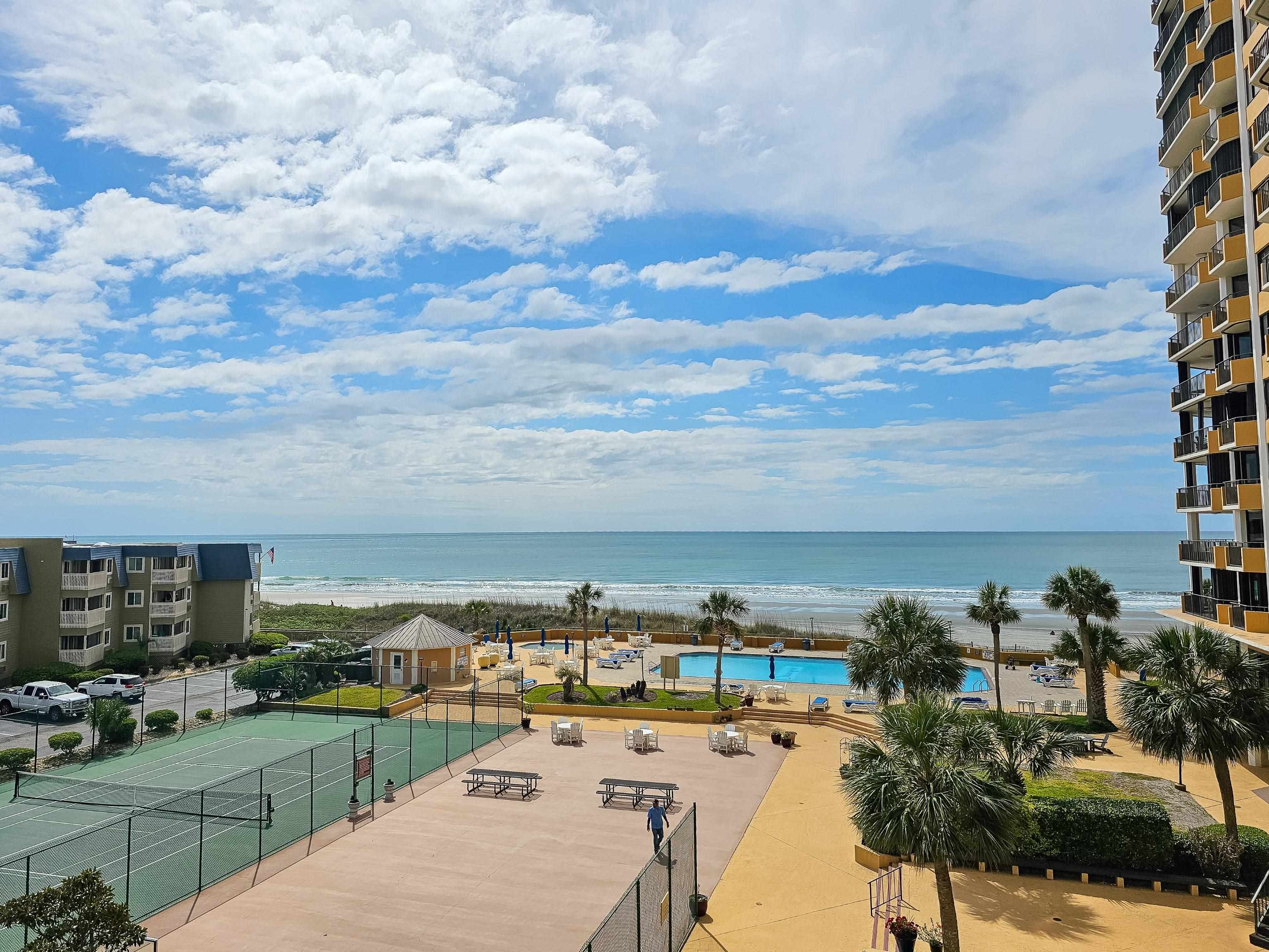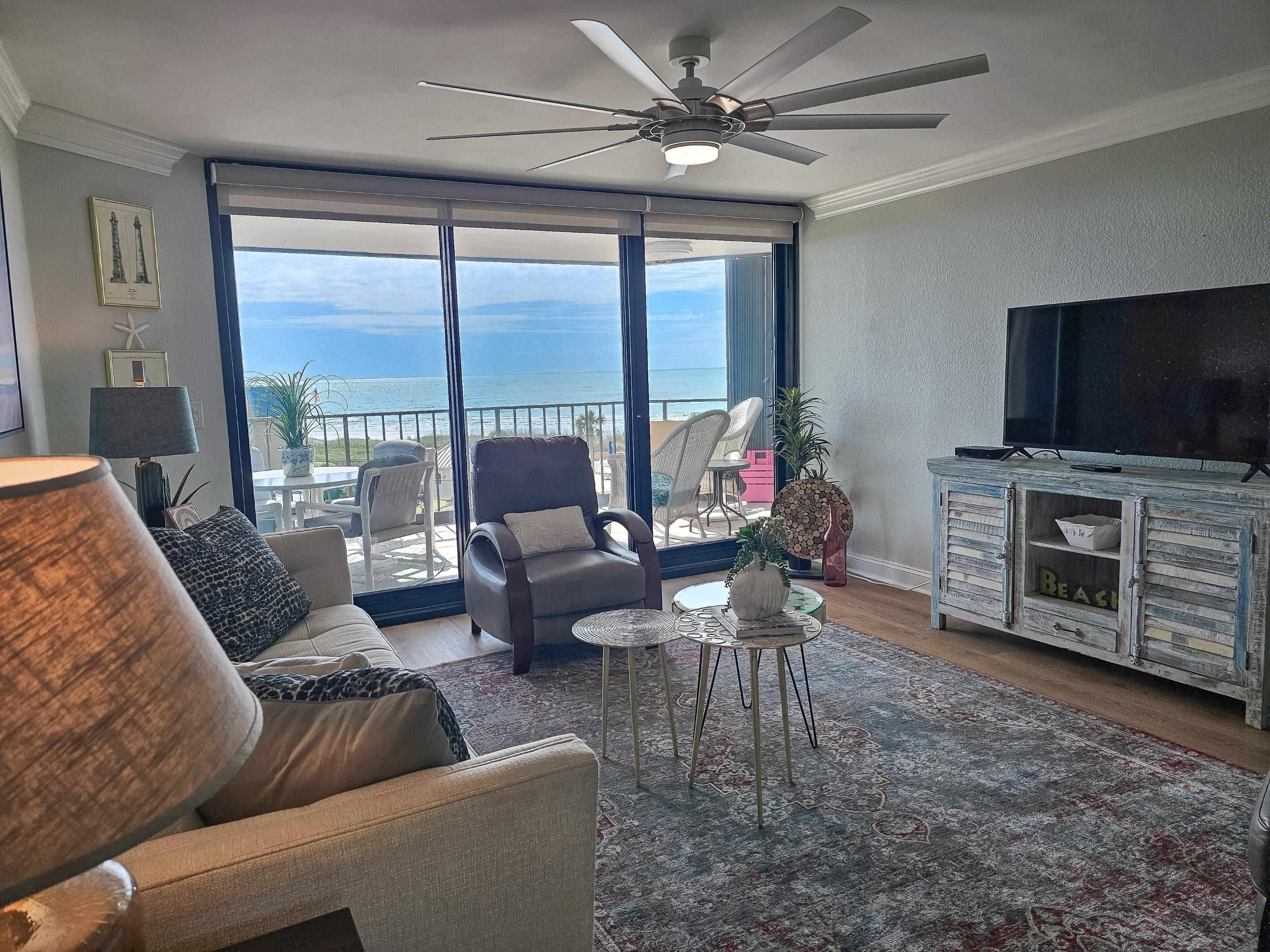 This stunning oceanfront residence offers the perfect blend of comfort, style, and breathtaking views. Featuring two spacious balconies, you’ll have the ideal setting for entertaining guests or simply relaxing while watching the waves roll in. Every room in the home enjoys a beautiful view, creating a true coastal retreat. This two-bedroom, two-bath condo is being sold fully furnished and has been thoughtfully updated throughout. Luxury vinyl plank flooring runs seamlessly across the entire space. The kitchen is equipped with solid surface countertops and stainless steel appliances, while both bathrooms have been upgraded—featuring a large tiled walk-in shower in one and a tub/shower combo in the other. The split-bedroom floor plan provides added privacy for residents and guests alike. Additional upgrades include updated sliding glass doors and hurricane shutters for peace of mind. From the moment you step into this oceanfront tower, you’ll be impressed by the exceptional amenities. Enjoy an oceanfront lounge, pool, tiki bar, on-site restaurant and dining room, billiards room, card and media rooms, fitness center, saunas, game room, outdoor grilling area, basketball and tennis courts, underground parking, and 24-hour security—just to name a few. This is truly a must-see property that delivers the ultimate beachfront lifestyle.