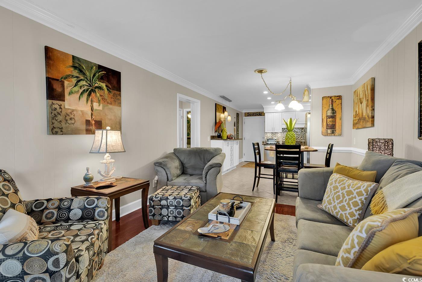 This amazing and extensively updated condo is looking for its new owners! Located in A Place at the Beach IV in the highly desired Shore Drive area, this 2 bedroom 2 bath is truly move in ready. The updated eat in kitchen has newer cabinets, granite counters, tile backsplash, stainless appliances and a separate bar/wine rack for extra cabinet space. The kitchen flows into the cozy and inviting living area with gorgeous hardwood flooring, a sleeper sofa for guests and access onto the balcony where you can relax and unwind. The primary bedroom is a true retreat with coastal hues and decor, a separate exit onto the balcony, and its own private bathroom that was completely redone, including a tiled step in shower, updated vanity, lighting, and tile flooring. The guest bath was also completely redone with classic and functional pieces to not only look beautiful, but offers storage in a room that typically offers little. The guest bedroom is spacious, separated a bit for privacy, with the same wood flooring. Both bedrooms have ceiling fans allowing owners and guests to have their own haven of relaxation after a day on the beach, at the pool or out shopping. The entire unit has had the popcorn ceiling removed and ceilings painted, the balcony doors were replaced with "in door" blinds, there is recessed lighting or new fixtures installed, crown molding, interior doors replaced, and a tiled balcony floor. Ask your agent for the full update list. To top it off, this unit also includes full size washer and dryer. This building is ocean front, and being a first floor unit, it is just a quick trip down the covered corridor and you are touching the sand! If you've had your fill of the Beach, head to the community pool and lounge around for a while. This community allows short and long term rentals which could make a great investment option. The location is so convenient to nightlife, dining, and shopping, as well as local hospitals and schools. If you are looking for a condo with no projects, this may be the one for you. Coming furnished minus items on do not convey list. Call your agent today to make an appointment. All measurements and hoa information to be confirmed by buyer.