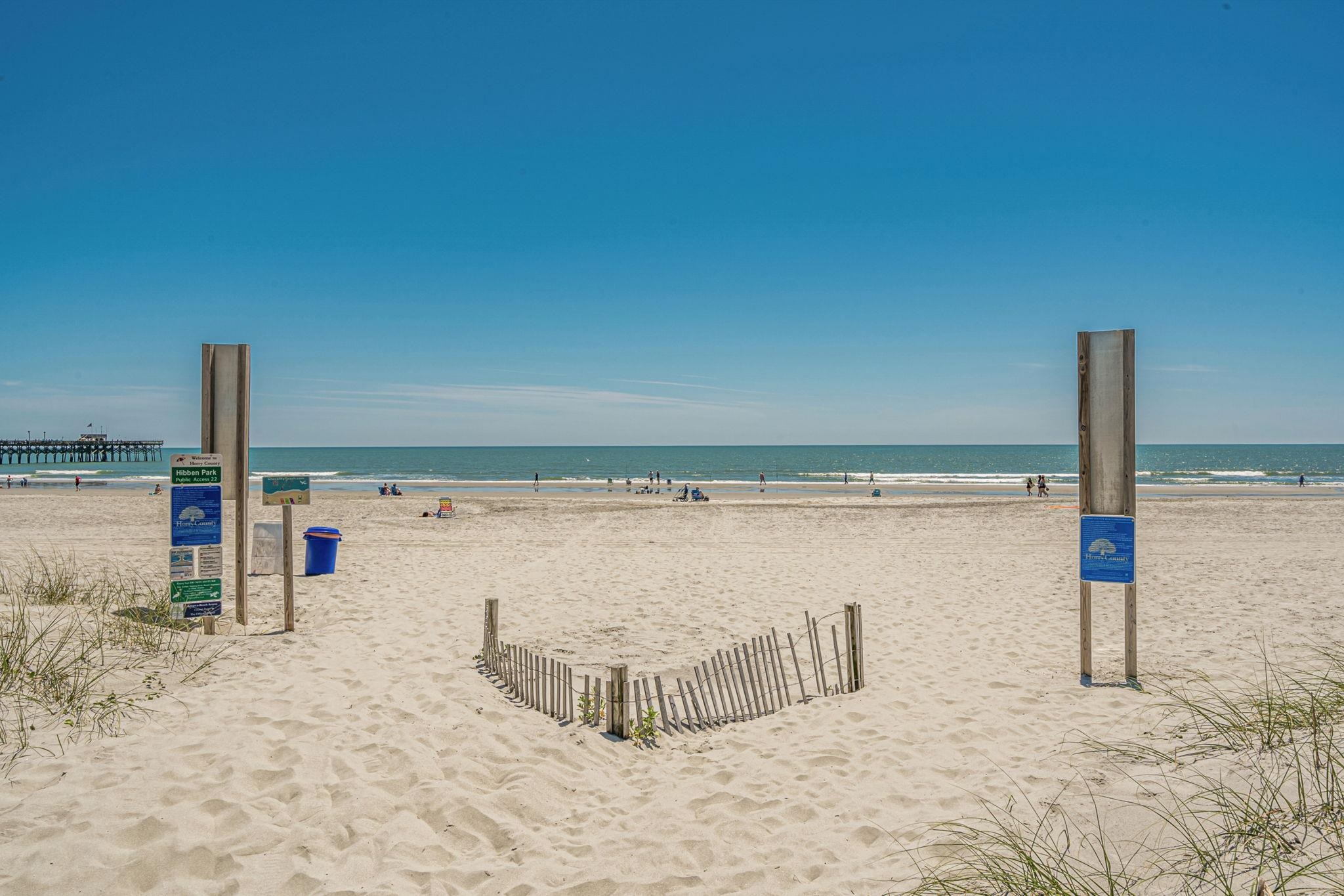 Perfect Beach Getaway – Updated First-Floor Corner Condo at Ocean Bridge. If easy access and coastal charm top your wish list, look no further. This beautifully updated 2-bedroom, 2-bath first-floor corner unit is one of the rare few in the Ocean Bridge community offering just one step to the front door—one stair, no hassle. Located just across the street from the beach in the highly desirable Shore Drive area—home to the iconic Ocean Annie’s—this fully furnished condo is a true coastal retreat. Enjoy stunning pool views and thoughtful updates throughout, including luxury vinyl plank flooring in the wet areas and upgraded bathroom vanities. The primary suite features a custom-tiled walk-in shower, while the guest bathroom offers a new fiberglass tub/shower combo. Both bedrooms come furnished with queen beds and boast generous closet space. Pocket doors create a sense of privacy, giving each bedroom the feel of a private suite—perfect for hosting guests or sharing with family. You will enjoy the flexibility to sleep up to 7 people thanks to the family room pull out Lazy Boy and Ashley couches. The efficient kitchen includes recently updated stainless steel and black appliances, making meal prep easy whether you're entertaining or enjoying a quiet night in. To top it off your covered balcony overlooking the pool is perfect for relaxing after a fun day at the beach. Ocean Bridge is ideally situated near the Apache Pier, top-rated restaurants, shopping, and entertainment. Whether you're searching for a full-time home, vacation escape, or smart rental investment, this low-maintenance condo offers the ultimate in convenience, comfort, and beachside living.