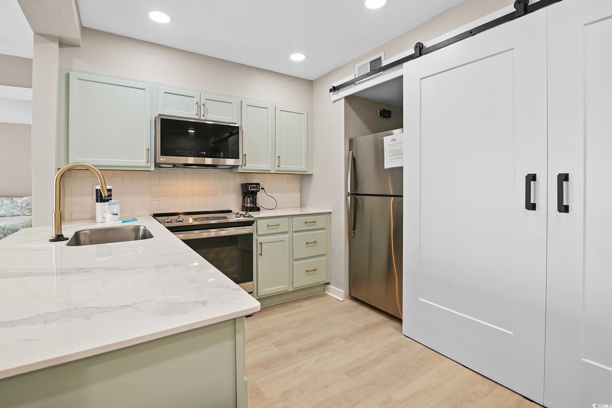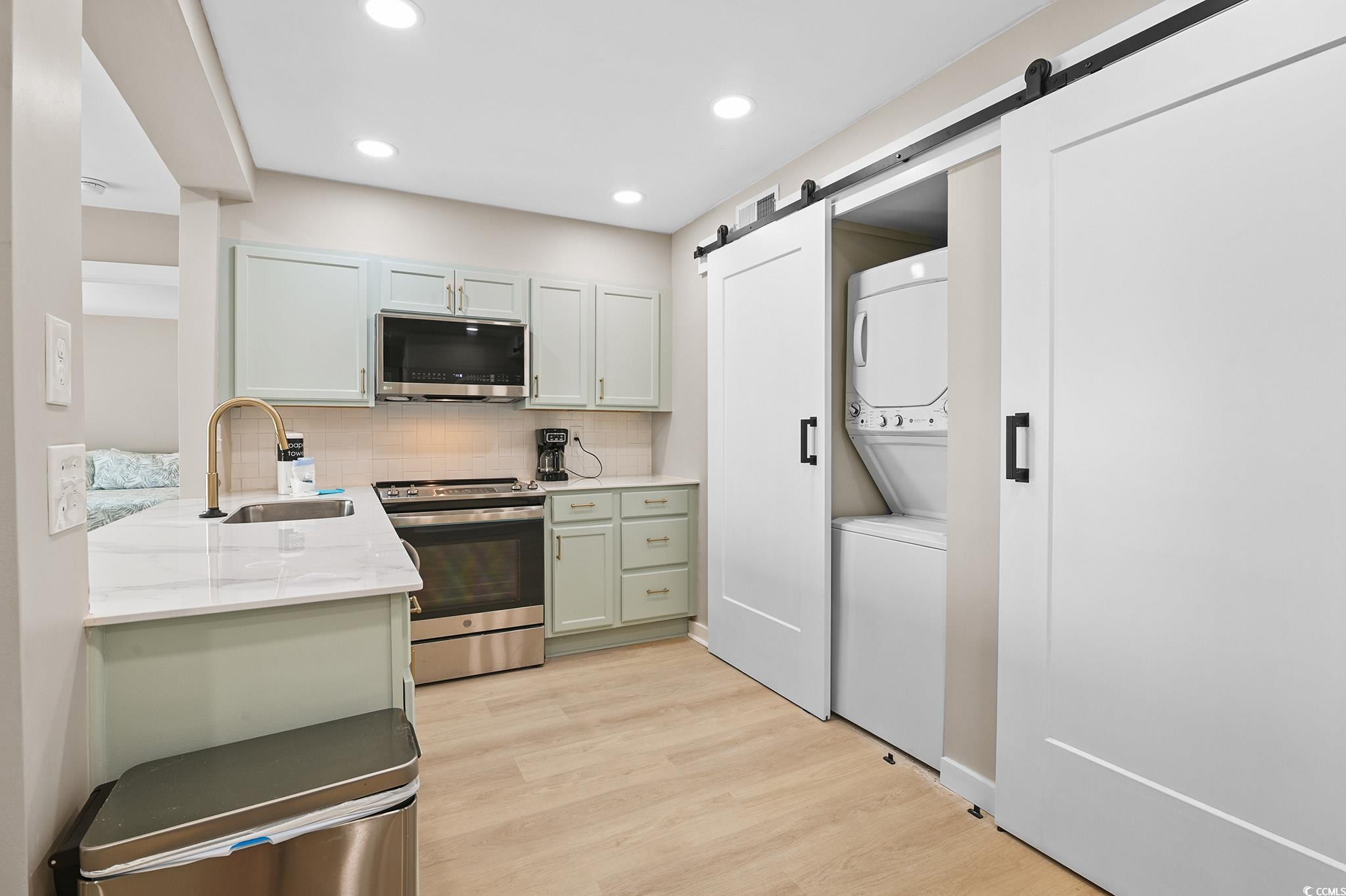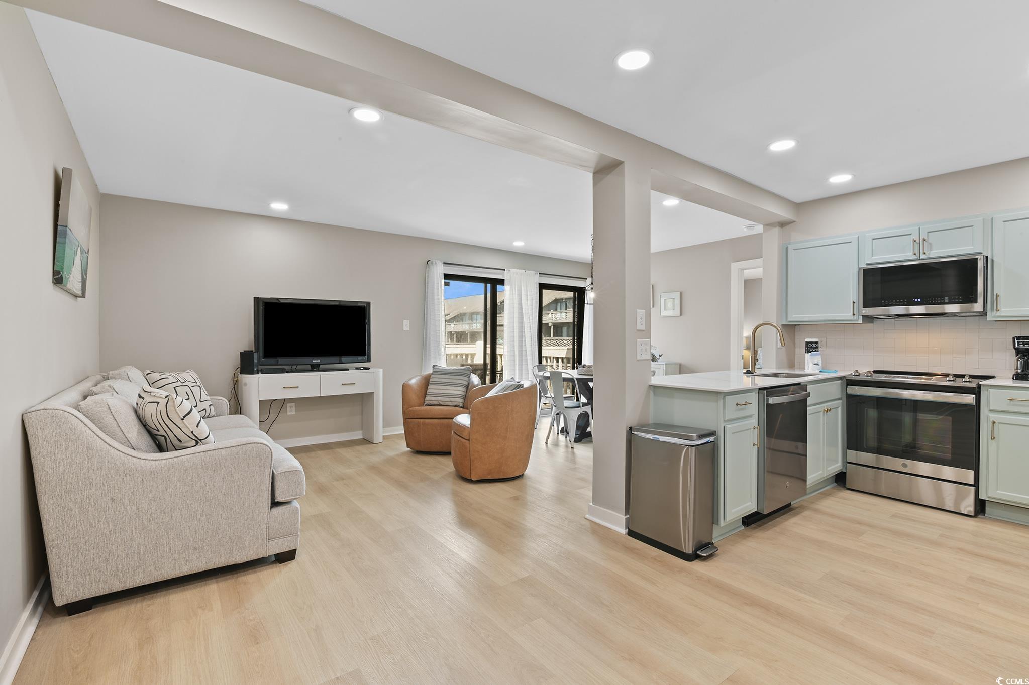 Welcome to your beautifully remodeled coastal retreat — just steps from the shores of Myrtle Beach. This 2-bedroom, 2-bath condo offers 924 sq. ft. of thoughtfully updated living space with modern finishes, stylish décor, and a relaxing seaside vibe. Being sold fully furnished and move-in ready. The open-concept living area features new flooring, fresh paint, updated lighting, and contemporary coastal furnishings. The living room opens to a private balcony overlooking the community pool. The remodeled kitchen includes sleek countertops, stainless steel appliances, ample storage, and a new 2024 water heater. The primary suite offers a king bed, private en-suite bath, and updated finishes. The second bedroom includes two full beds and comfortably accommodates up to four guests. Additional features include an in-unit washer and dryer, free Wi-Fi, and convenient on-site parking. New roof in 2025 - PAID IN FULL. Painted the exterior stairs and railing - PAID IN FULL. Located in a quiet, well-kept community just minutes from the beach. Close to Apache Pier, Barefoot Landing (10 minutes), Tanger Outlets (5 minutes), top golf courses, restaurants, entertainment, and Myrtle Beach International Airport (22 minutes). Looking for a second home, investment property or rental don't look any further!!