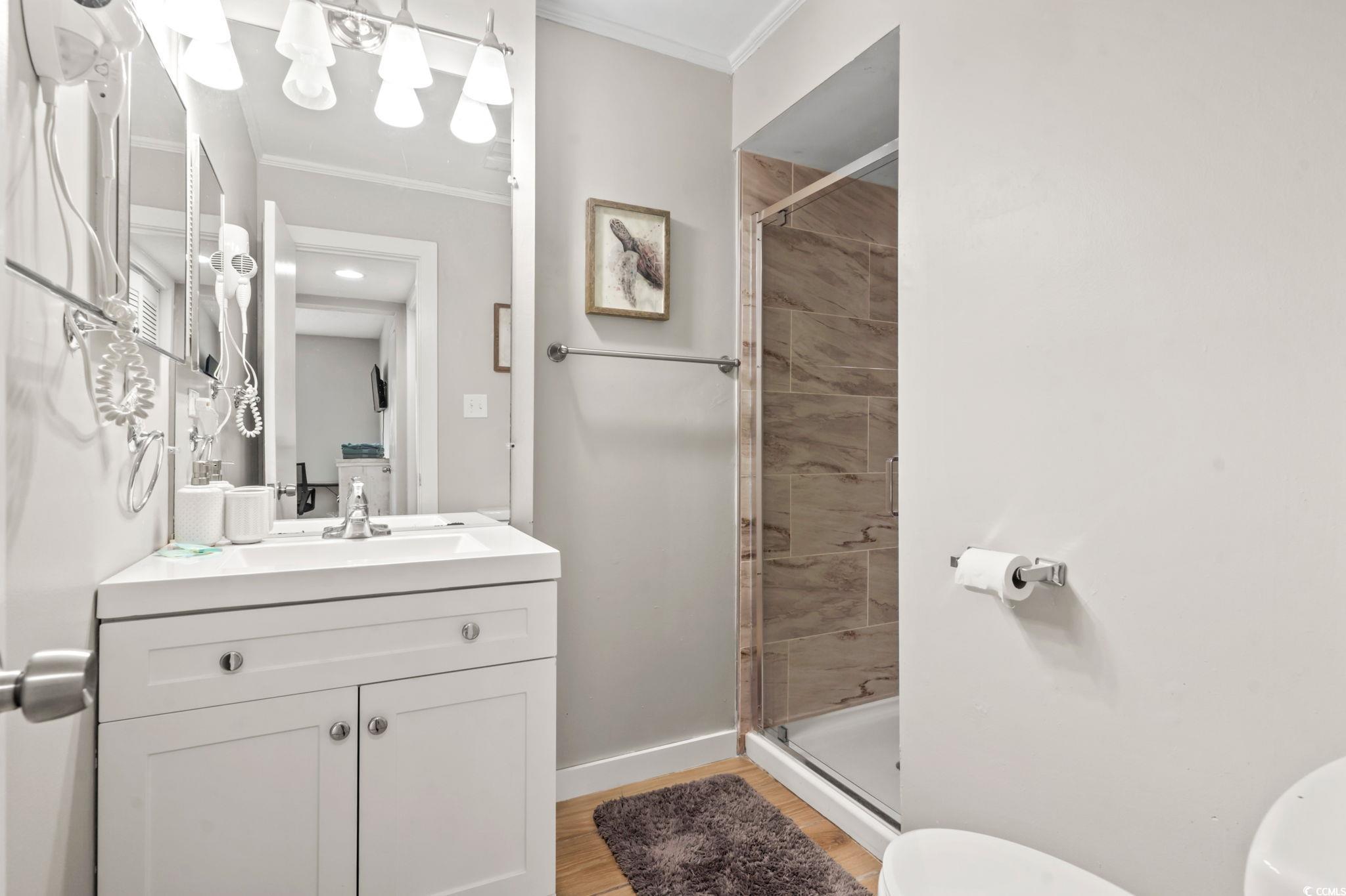 Experience the best of coastal living in this beautifully updated and fully furnished two-bedroom, two-bath end-unit condo, perfectly positioned in the desirable Shore Drive area of Myrtle Beach. Enjoy stunning ocean views and the relaxed beachside lifestyle this sought-after location offers. The open-concept layout welcomes you with elegant crown molding and new luxury vinyl plank flooring that flows throughout the home. The modern kitchen has been fully renovated and features solid-surface countertops, a stylish backsplash, stainless steel appliances, and a full-size washer and dryer for added convenience. Both bathrooms have been tastefully updated, with the primary suite showcasing a sleek, contemporary shower and vanity. Every detail has been designed for comfort and style, making this condo completely move-in ready. Spend your days lounging by one of the two sparkling community pools or take a short stroll to the beach to soak up the sun. With short-term rentals permitted, this property is perfect as a primary residence, a vacation retreat, or a proven investment opportunity. Discover your slice of paradise and make this ocean-view condo your own.