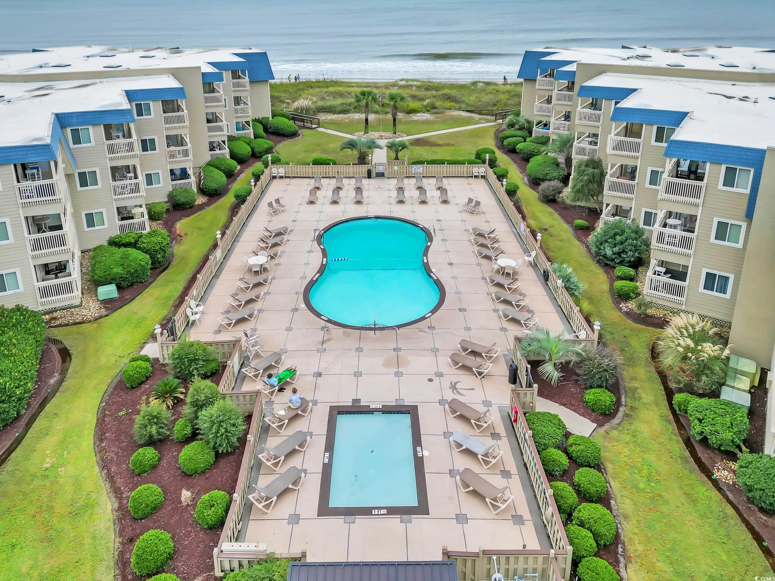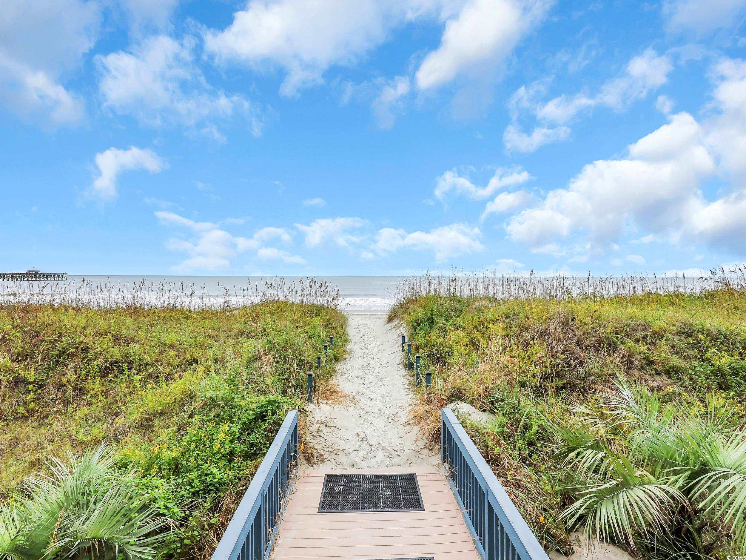 Welcome to this amazing oceanfront, furnished, first floor 2 bedroom 2 bath condo at A Place at the Beach IV in the coveted Shore Drive area of Myrtle Beach. This community is a true gem, with a mix of full time residents, second homes and rental investments. Families have owned here or vacationed here year after year for good reason. Short and long term rental are allowed making this an excellent investment opportunity. Fully furnished and ready to welcome you or your guests. Getting this close to the Ocean for this price point is rare. The HOA fees are comparatively low for an oceanfront community and include most utilities and building Insurance. Just inside the front door is the beautifully renovated kitchen. New high end slow close cabinets, beautiful granite counters, and updated stainless appliances. The new cabinets also include a custom unit for the in unit washer and dryer. A rare find for oceanfront condos! There is also a utility closet with storage just inside your front door and hooks for hanging your sandy beach chairs just outside. The primary bedroom is spacious enough for a king size bed and has an ensuite bathroom with updated vanity and a corner shower This bedroom also has its own door to the balcony where you can sit outside, enjoy the sounds of the ocean, watch the dunes grass sway in the breeze and relax and rewind. The guest bedroom includes 2 twin beds and has access to the full hall bath with tub/shower combo and upgraded vanity. Both bedrooms have ceiling fans and full size closets for storage. This unit has been upgraded with a mini split HVAC, not the standard wall units. Each room has the ability to control their own temperature and is much quieter to run. The real showstopper is the Ocean and Pier views right out your windows. Just step out the sliding glass doors onto the balcony where you can watch amazing sunrises while listening to the waves. If you'd rather watch the sunrise from the beach, you are less than 30 steps from your doorway to the sand. No lugging chairs up and down multiple flights of stairs, and its just a quick trip back to your condo for a sand free lunch or a quick nap. If the Ocean isn't on your agenda, there is a large pool, kiddie pool, and grilling areas right around the corner. Great place to meet the neighbors and catch some rays. There is a multitude of shopping and dining options available to the Shore Drive area. Flip Flops, Ocean Annies, and Finn McCools are a few of the locals favorites within walking distance, or hop in the car and be at Barefoot Landing, Tanger Outlets or Broadway at the Beach in just a few minutes.