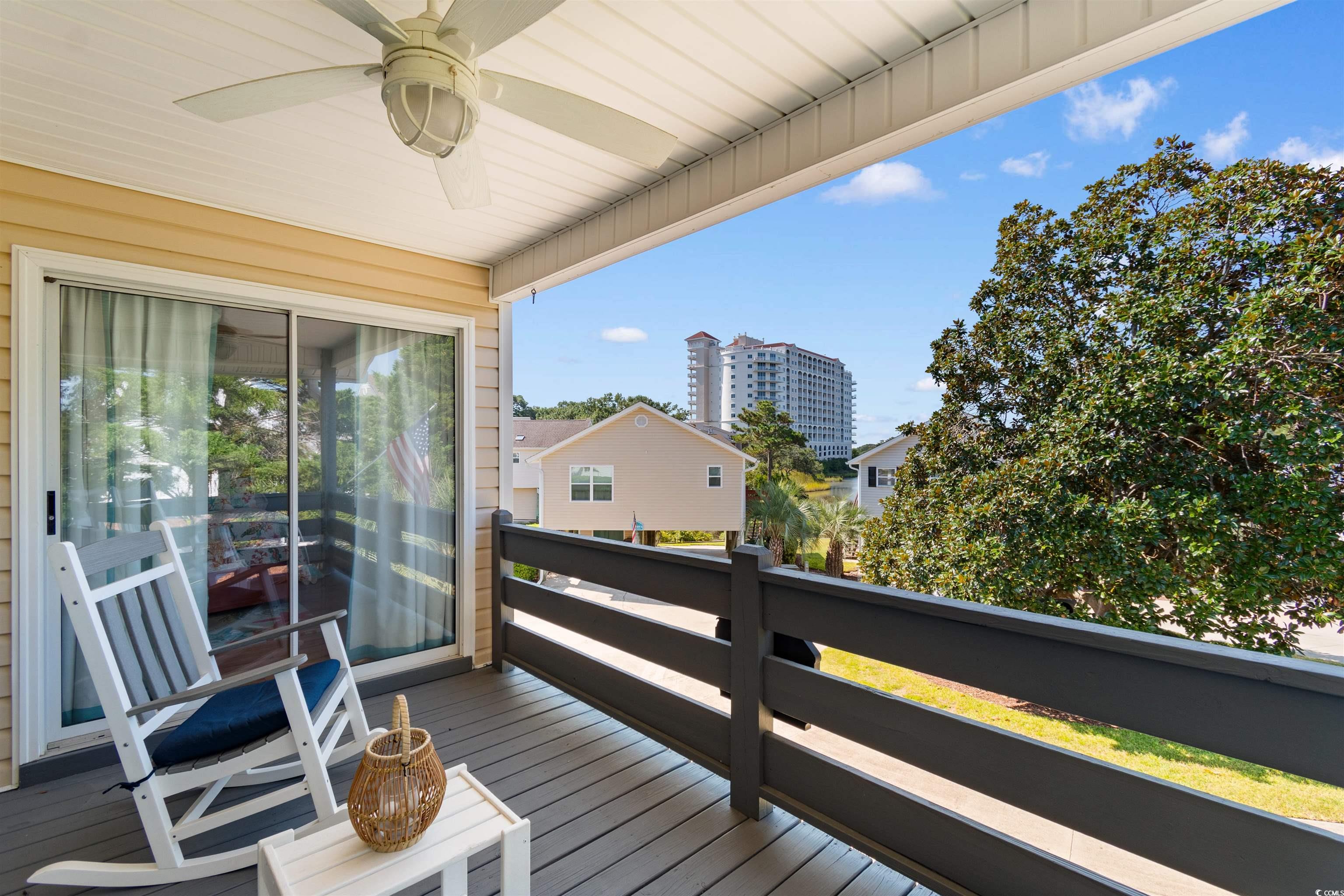Beach Cottage – Fully Furnished & Move-In Ready! Located just a short golf cart drive from the beach and steps to the community pool, this 3-bedroom, 2-bath stilted beach house offers the perfect blend of comfort, convenience, and coastal charm. Inside, the bright and open great room features a vaulted ceiling, views of the lake and direct access to the front deck—ideal for enjoying lake breezes. The conveniently located, galley-style, kitchen is equipped with stainless steel appliances, quartz countertops, a tiled backsplash, and plenty of cabinet space. Wood flooring flows throughout the living areas and bedrooms, while vinyl plank flooring adds durability in all wet areas and charleston shutters on all windows. The spacious primary suite includes an ensuite bath, while the two guest bedrooms share a Jack-and-Jill bathroom for added functionality. Ceiling fans throughout the home, including the front porch, enhance comfort year-round. Outdoor living shines here with multiple spaces to relax or entertain: a welcoming front deck, plus a large side deck , enhanced with new composite decking and lighting—perfect for morning coffee, evening gatherings, or soaking in the beautiful sunsets. Parking and storage are easy with a golf cart garage and ample space under the home. The community pool is just a short walk away, and you’ll love being close to the beach, local restaurants, shopping, entertainment, and Barefoot Landing. Whether you’re searching for a primary residence, vacation getaway, or investment property, this fully furnished, turnkey home is ready for you to enjoy!