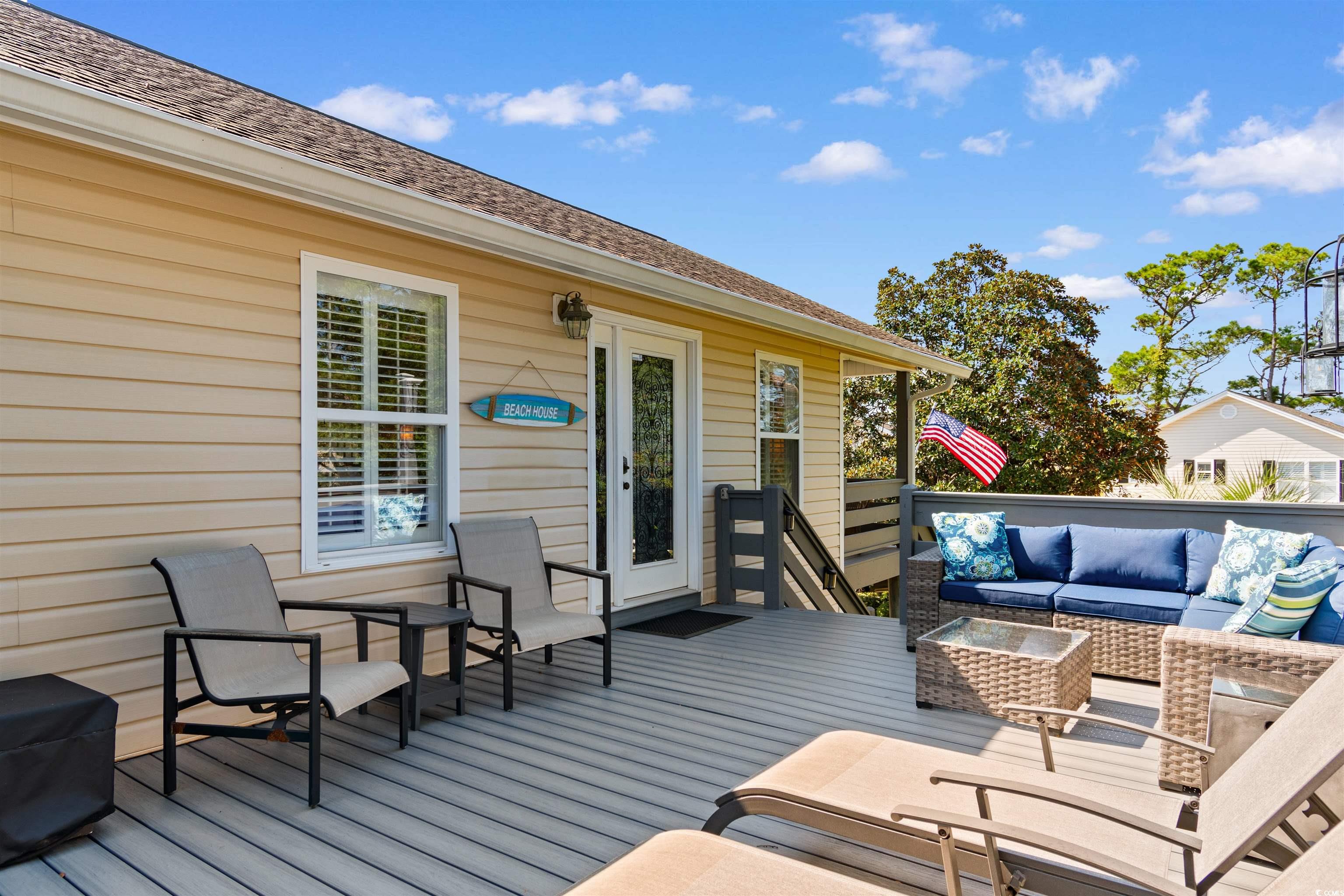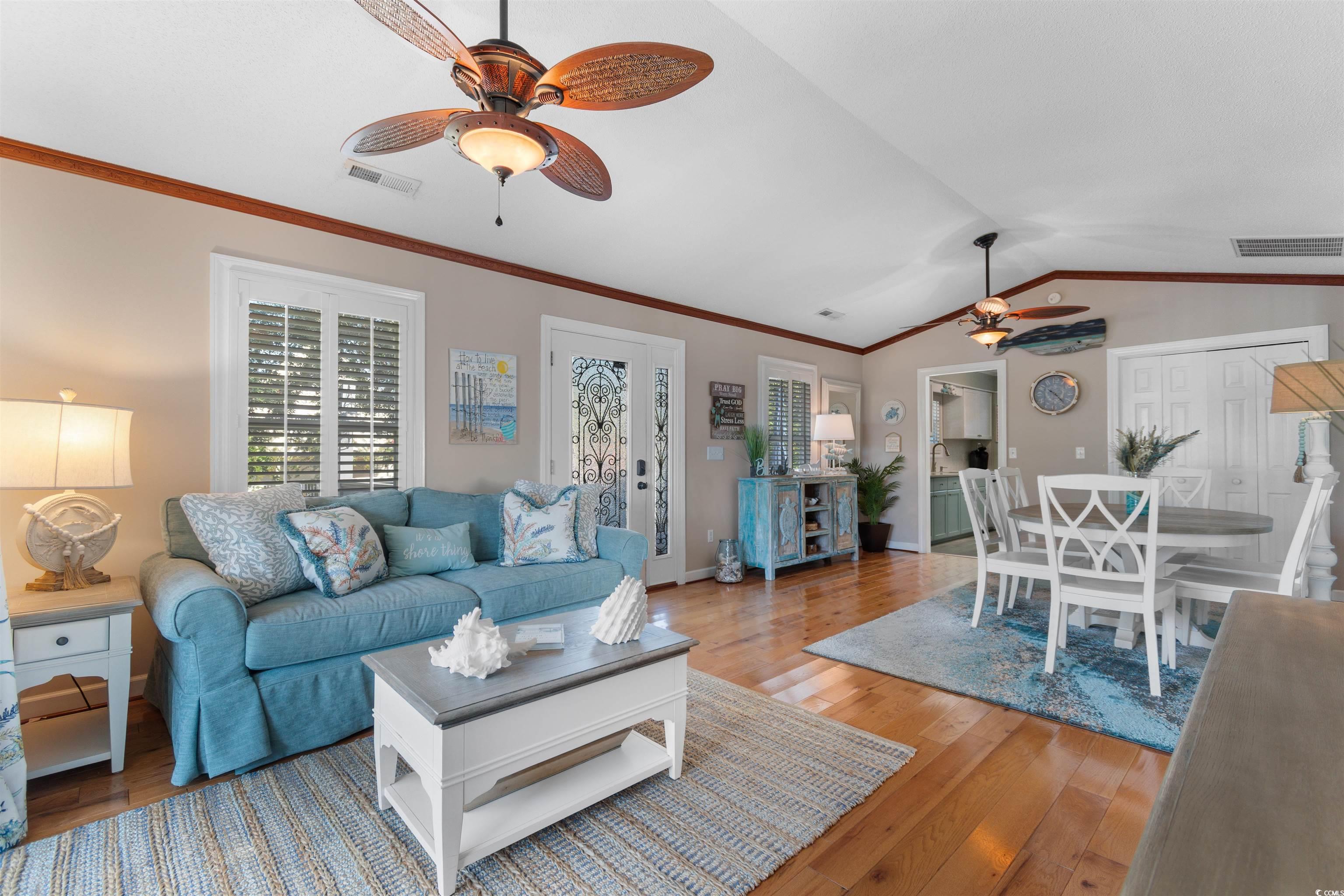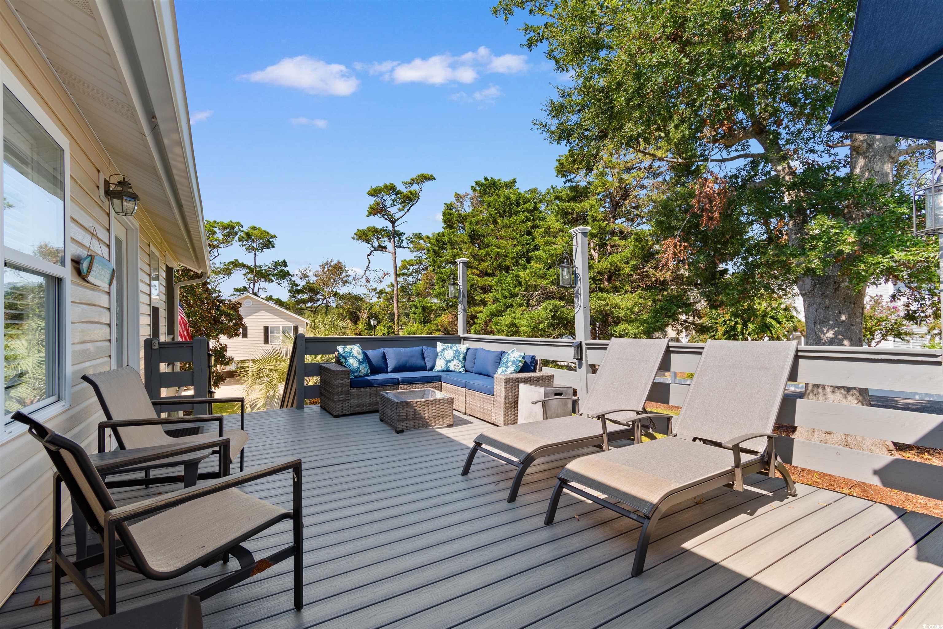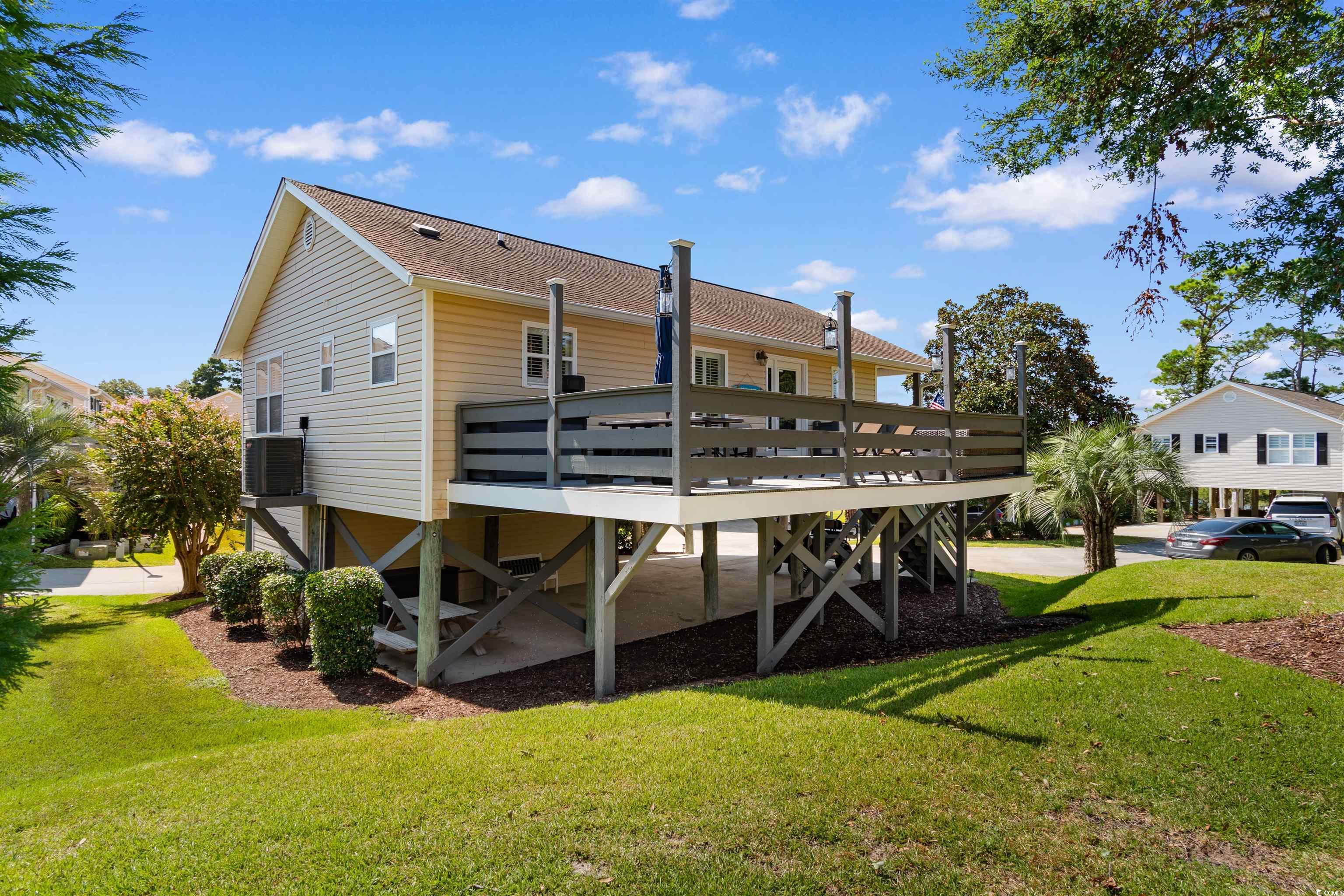 YOUR TURNKEY COASTAL ESCAPE: Fully Furnished Beach Cottage with Lake Views and minutes to the Beach! Start living the relaxed beach life immediately! This beautiful, fully furnished 3-bedroom, 2-bath stilted beach cottage is more than a home; it's your ready-made coastal retreat. Imagine hopping in your golf cart for a short drive to the sand or taking just a few steps to the community pool. Inside, the home radiates charm and ease. The bright, open great room is centered by a soaring vaulted ceiling and features tranquil lake views from the front deck. The chef in you will appreciate the galley-style kitchen, boasting stainless steel appliances, quartz countertops, and a subway tiled backsplash. Thoughtful details abound, including rich wood flooring throughout the main areas, durable vinyl plank in wet areas, and classic Charleston shutters on every window for that quintessential coastal feel. Outdoor living is a dream with multiple decks, including a large side deck with upgraded new composite decking and lighting—the perfect spot for evening cocktails or sunset dinners. With a golf cart garage and storage underneath, convenience is built in. Whether you're seeking a primary residence, a rental investment, or a family vacation haven, this turnkey, move-in-ready home puts you moments from Barefoot Landing, shopping, dining, and all the best the coast has to offer. Just bring your suitcase and your sunscreen!