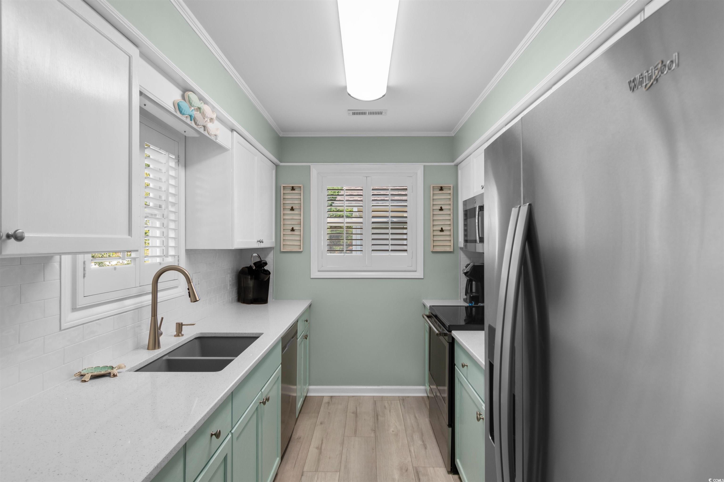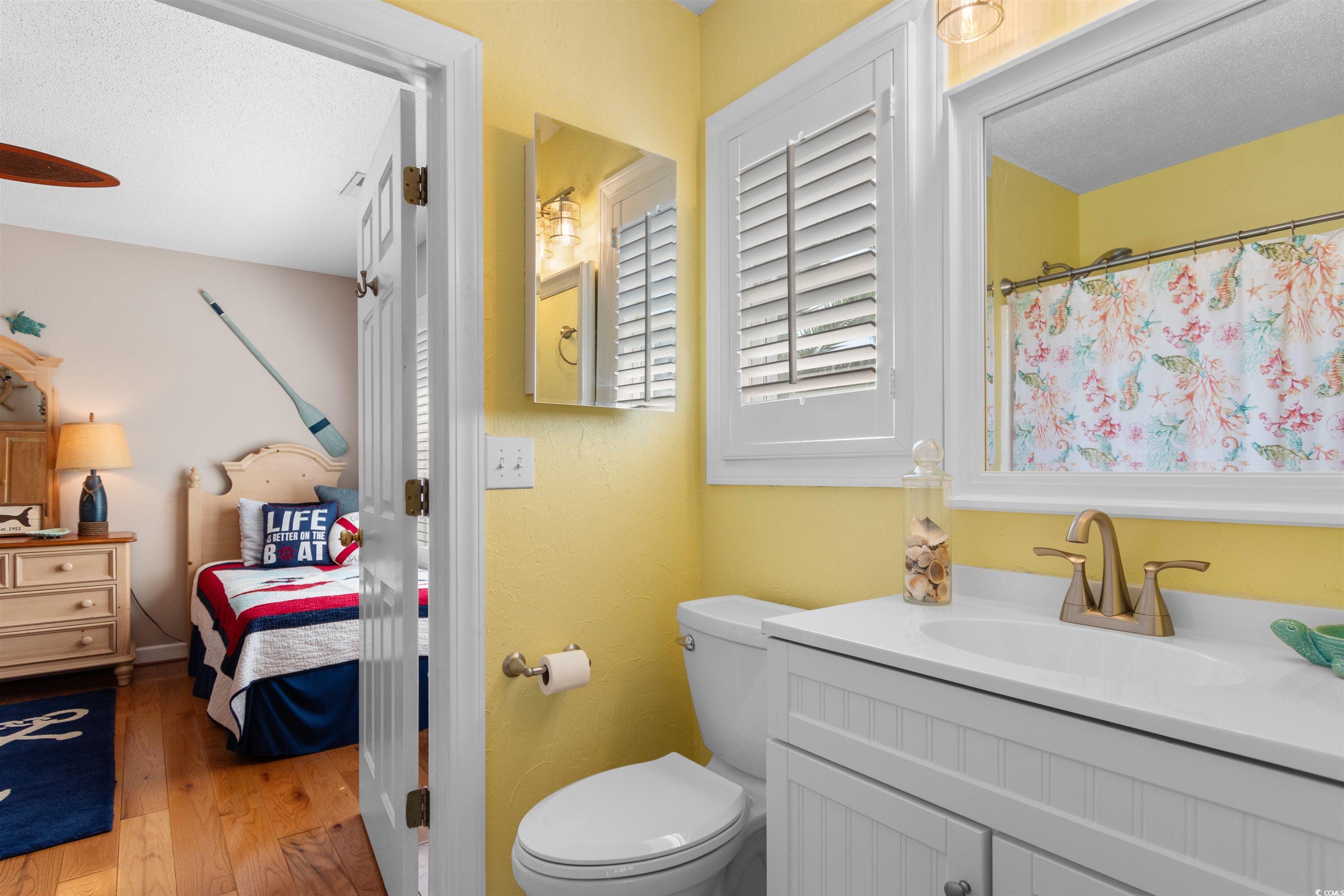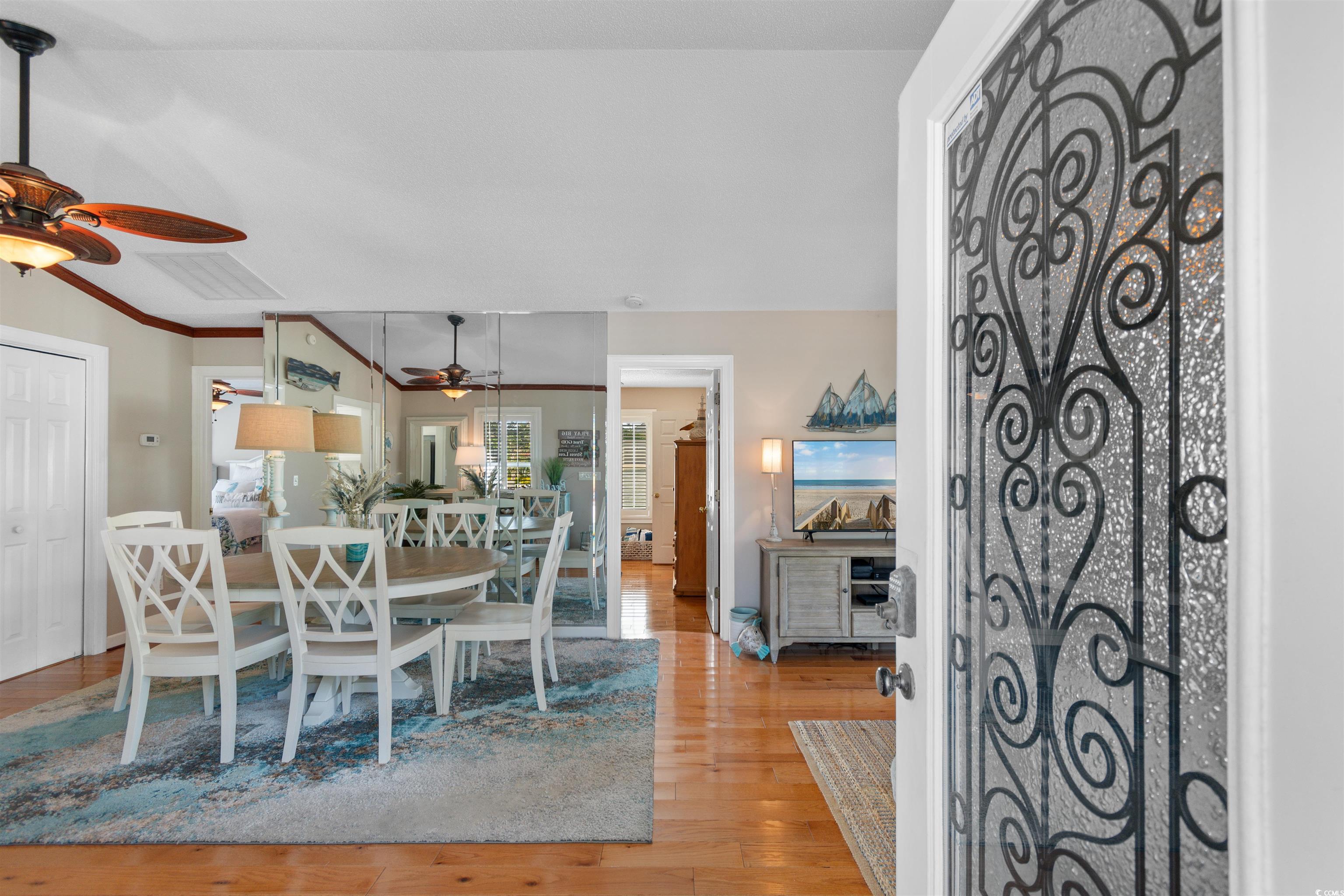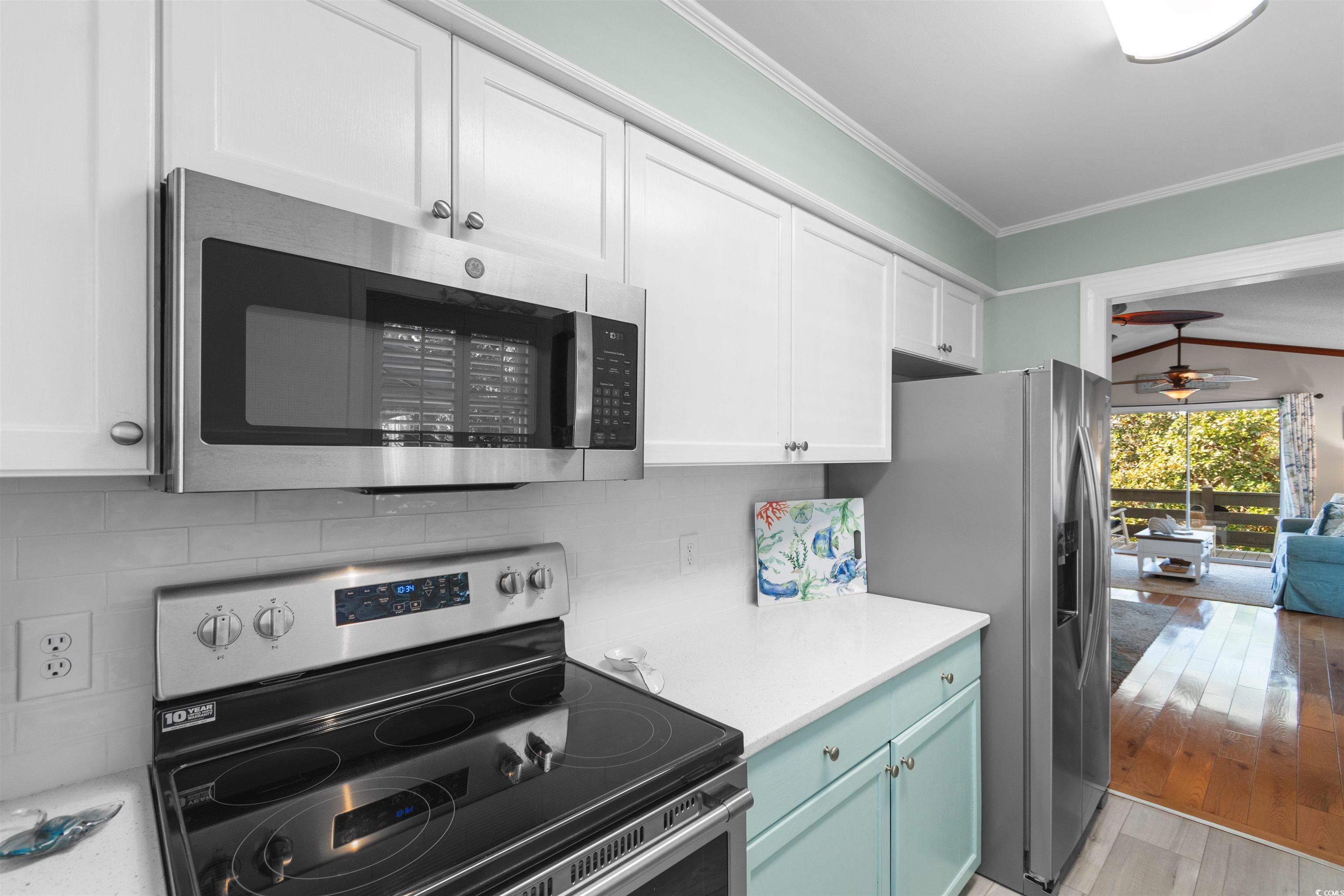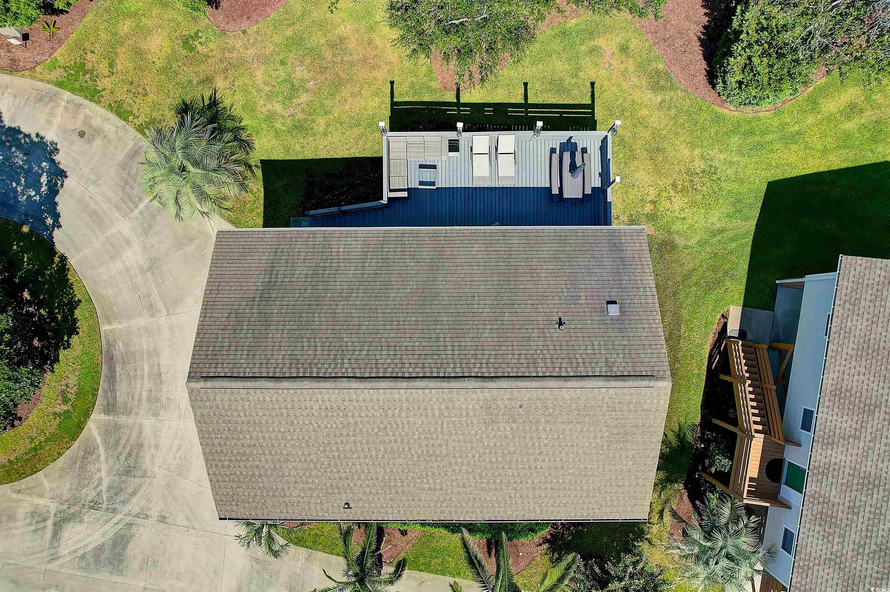 YOUR TURNKEY COASTAL ESCAPE: Fully Furnished Beach Cottage with Lake Views and minutes to the Beach! Start living the relaxed beach life immediately! This beautiful, fully furnished 3-bedroom, 2-bath stilted beach cottage is more than a home; it's your ready-made coastal retreat. Imagine hopping in your golf cart for a short drive to the sand or taking just a few steps to the community pool. Inside, the home radiates charm and ease. The bright, open great room is centered by a soaring vaulted ceiling and features tranquil lake views from the front deck. The chef in you will appreciate the galley-style kitchen, boasting stainless steel appliances, quartz countertops, and a subway tiled backsplash. Thoughtful details abound, including rich wood flooring throughout the main areas, durable vinyl plank in wet areas, and classic Charleston shutters on every window for that quintessential coastal feel. Outdoor living is a dream with multiple decks, including a large side deck with upgraded new composite decking and lighting—the perfect spot for evening cocktails or sunset dinners. With a golf cart garage and storage underneath, convenience is built in. Whether you're seeking a primary residence, a rental investment, or a family vacation haven, this turnkey, move-in-ready home puts you moments from Barefoot Landing, shopping, dining, and all the best the coast has to offer. Just bring your suitcase and your sunscreen!