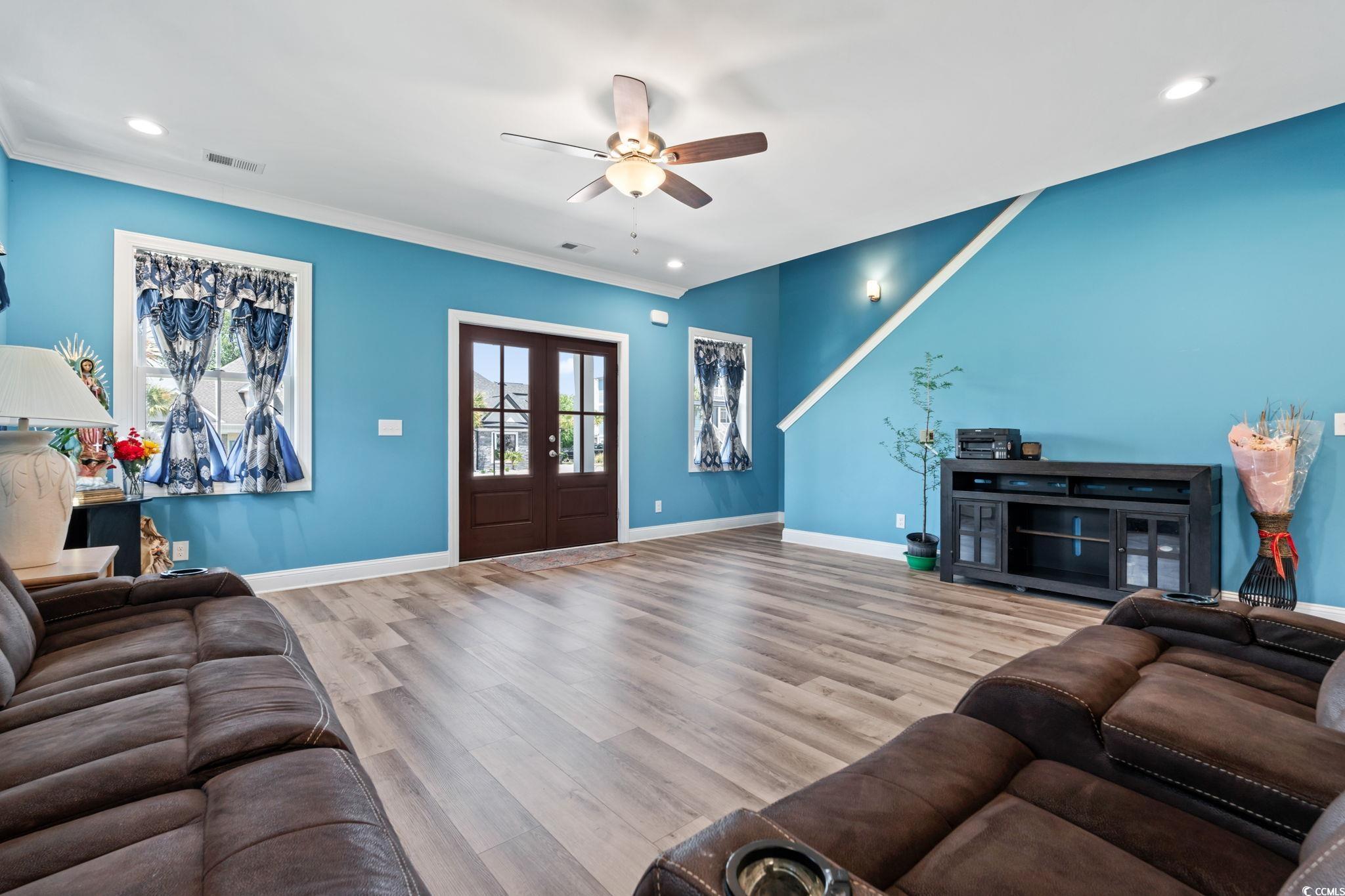 Welcome to this very spacious 5-bedroom, 4.5-bath home in the sought-after gated community of Carolina Waterway, right along the Intracoastal Waterway. From the moment you walk in, you'll love the open layout, high ceilings, and the bright, airy feel throughout the main living spaces. The kitchen is a standout, boasting a large island, modern appliances, and ample cabinet space. It flows right into the dining and living areas, making it perfect for everyday life and entertaining friends and family. You'll also notice the crown molding throughout the first floor, adding a touch of charm and style. The primary bedroom, on the main level, offers ample space, with a large bathroom featuring dual vanities and a spacious shower, plus a generous walk-in closet. Upstairs, you'll find four more spacious bedrooms, great for kids, guests, or even a home office or two. This home also includes an irrigation system to keep your yard looking great with less effort. Carolina Waterway offers excellent amenities, including tennis and pickleball courts, a large community pool, a clubhouse, and secure boat storage with easy access to the water. Whether you are into boating, staying active, or want a quiet, upscale neighborhood to come home to, this place has something for everyone.