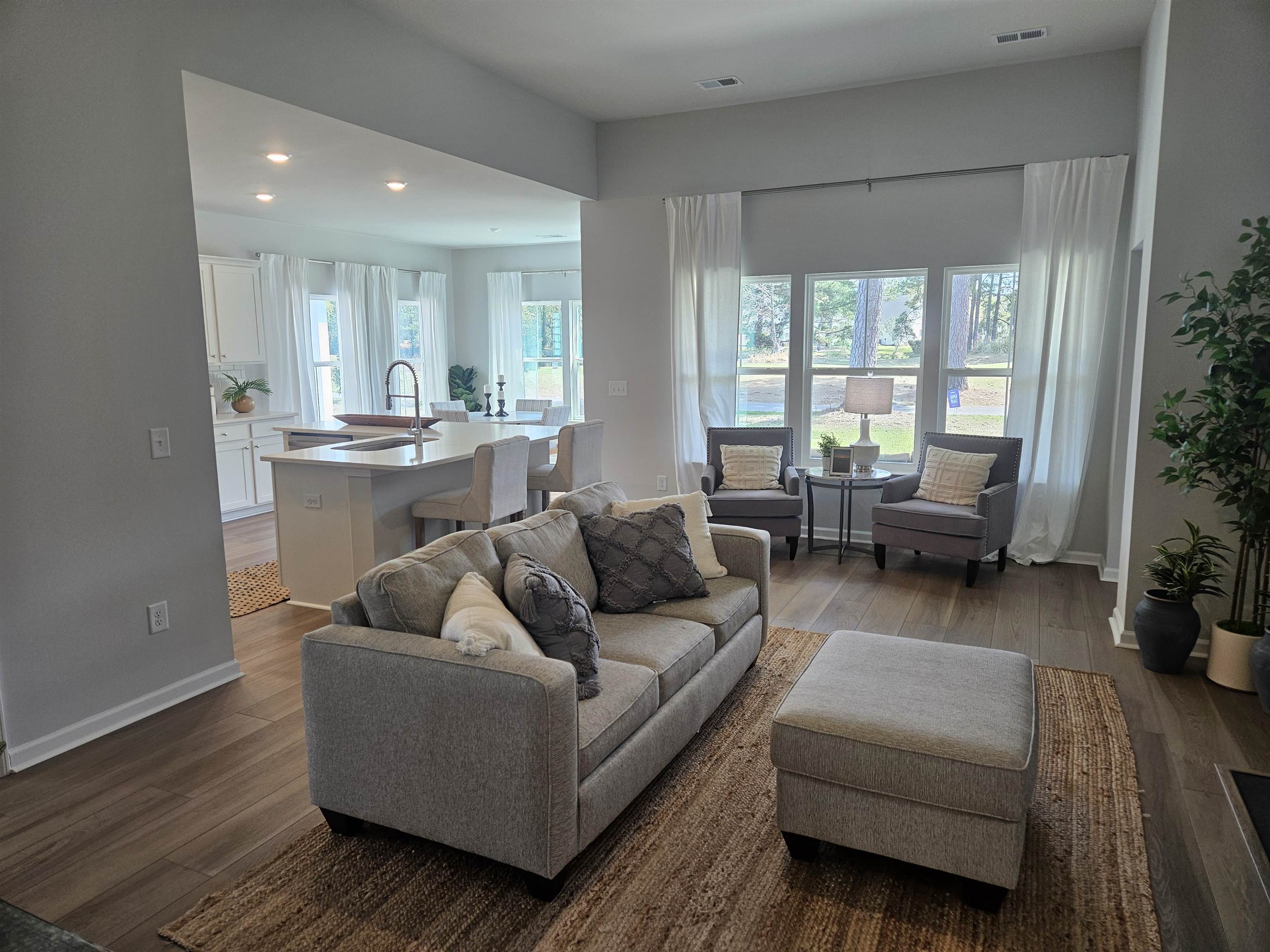 Welcome to your dream home in the heart of Murrells Inlet! Nestled within the established and scenic golf community of Indigo Creek, this brand-new Litchfield floorplan offers the perfect blend of modern luxury and coastal charm. Step inside this thoughtfully designed 3-bedroom, 2-bathroom ranch-style home. The open-concept layout is an entertainer’s delight, featuring a seamless flow between the spacious family room, a bright breakfast nook, and a gourmet kitchen featuring Quartz countertops and a large center island with an undermount stainless steel sink. Stainless steel appliance package, including a gas range and built-in microwave. Upgraded white cabinetry (36" and 42" staggered) with elegant crown molding and a classic subway tile backsplash. Durable and stylish LVP flooring throughout the main living areas. The Owner’s Suite is tucked away at the rear of the home for ultimate privacy. It features a massive walk-in closet, tiled walk-in shower and dual-sink vanity with cultured marble tops. Enjoy your morning coffee on the covered patio overlooking the golf course and lush surroundings of the community. Residents enjoy access to a private community pool, clubhouse, and bocce ball courts, all set among grand oak trees and rolling greens. You are just minutes from the world-famous Murrells Inlet Marsh Walk, pristine Garden City beaches, and top-rated St. James schools.