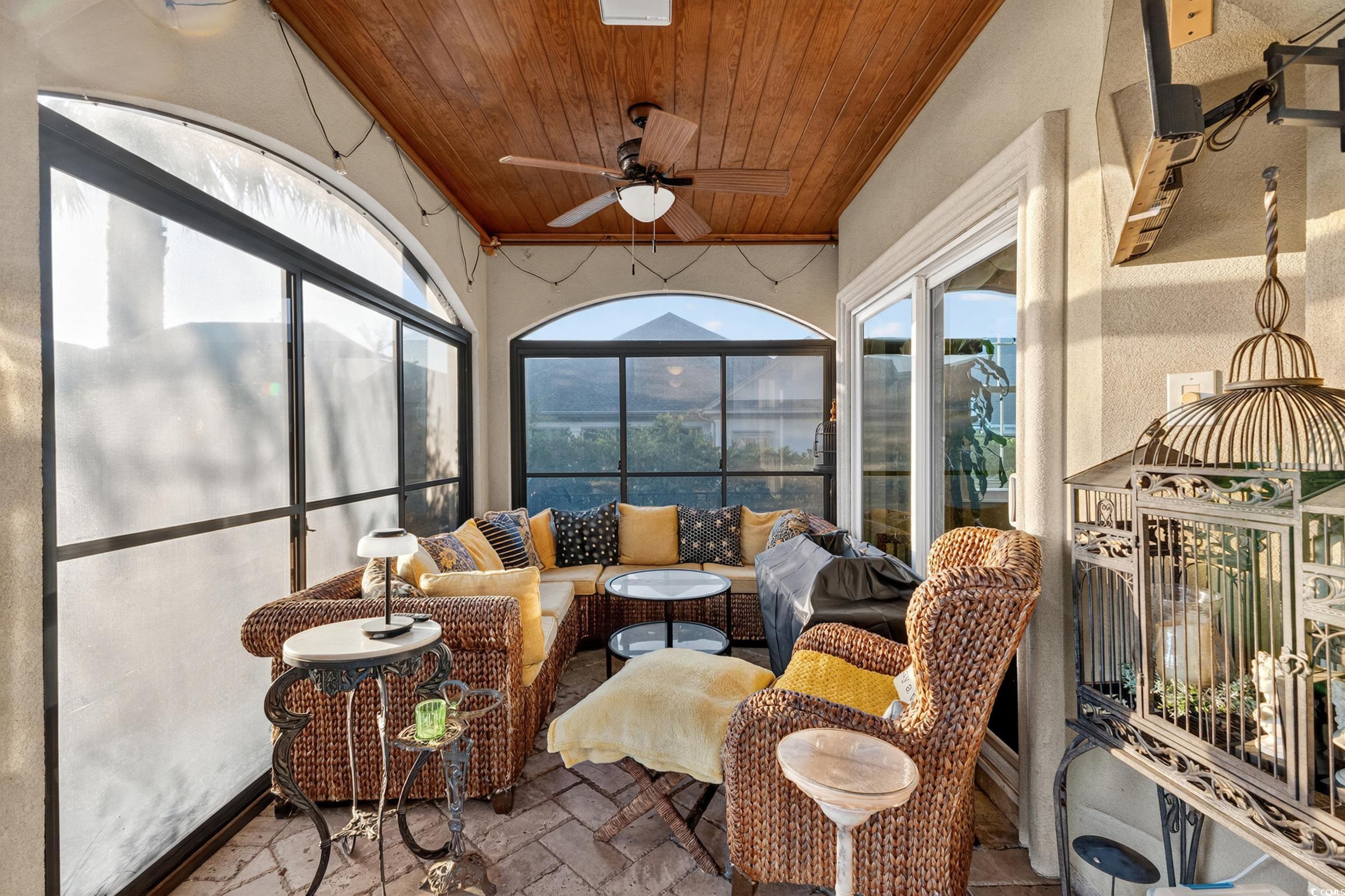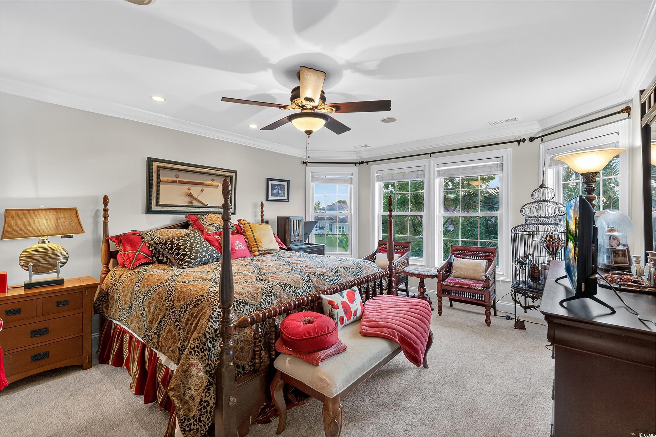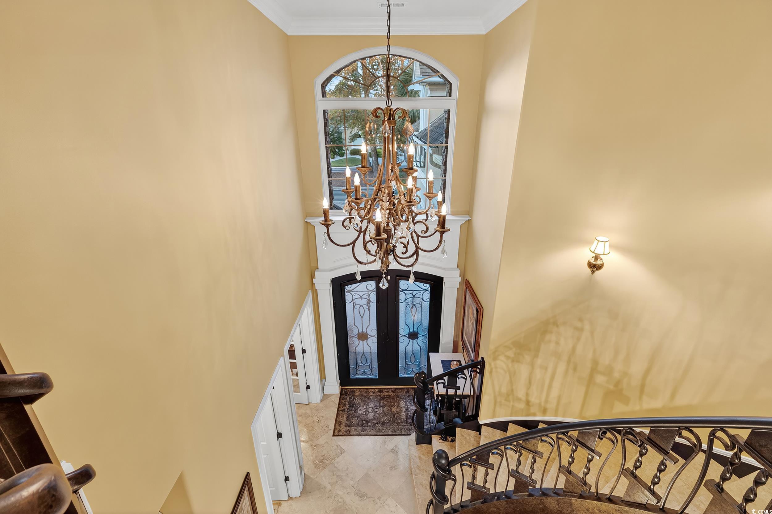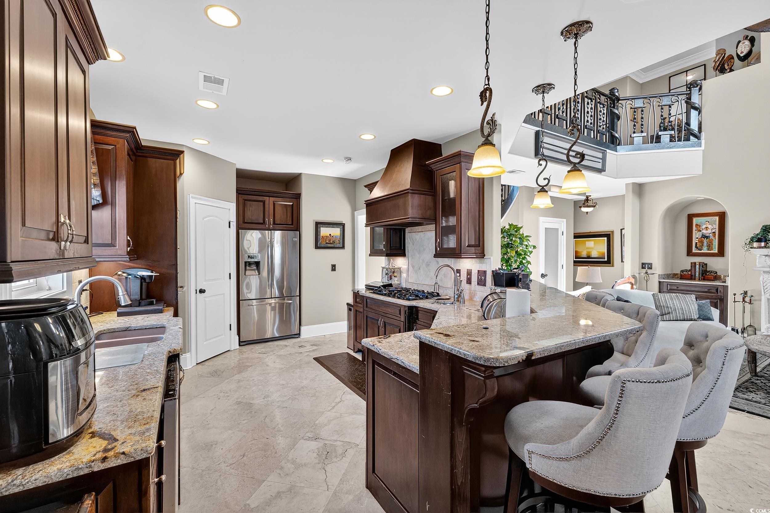 Exquisite Coastal Retreat in Bluffs on the Waterway! Luxury, Comfort, and Convenience in a Prestigious Gated Community Welcome to your dream home in the prestigious gated community of Bluffs on the Waterway—where luxury, comfort, and convenience meet the serene beauty of coastal living. This remarkable 5-bedroom, 3.5-bath residence was extensively updated in 2023 and features stunning upgrades and one-of-a-kind details throughout. Step into a grand interior with a breathtaking custom-designed metal and stone staircase and matching foyer table, both handcrafted by renowned artist Robert Sadlemire. The living room exudes elegance with soaring coffered ceilings and a beautiful stone fireplace, while the formal dining room impresses with its own coffered ceiling and built-in storage. Just off the foyer, a stylish powder room adds function and flair. For those who love to cook and entertain, the gourmet kitchen is a chef’s delight, featuring dual sinks, double ovens, a gas cooktop, granite countertops, and high-end stainless steel appliances. The open layout connects seamlessly to the living area, perfect for gatherings with family and friends. Retreat to your private master suite on the main floor, complete with a cozy fireplace and a custom walk-in closet designed like a boutique—complete with floor-to-ceiling shelving, a center island with seating, and a chandelier overhead. Indulge in the spa-inspired master bath, which boasts a stand-alone copper soaking tub, copper tile inlays, and luxurious copper sinks and faucets. Quartzite countertops are featured throughout the master closet and bath. Enjoy peaceful mornings or relaxing evenings on the screened-in porch overlooking a tranquil pond and fountain. Additional highlights include an ice maker, dedicated wine closet, fully insulated interior walls for enhanced privacy and efficiency, and an oversized 2+ car garage with space for three vehicles and two tankless water heaters. The spacious laundry room features custom floor-to-ceiling cabinetry for maximum organization. Upstairs, you’ll find four generous bedrooms—two sharing a Jack-and-Jill bath, and two with access to a full bathroom. The walkway between two separate wings overlooks the magnificent living room below. A versatile bonus room offers the ideal space for games, entertaining, or family movie nights. Recent replacement of carpeting throughout the 2nd floor. As a resident of The Bluffs, you’ll enjoy amenities including a resort-style clubhouse, swimming pool, tennis courts, playground, private boat ramp, and secure boat storage along the scenic Intracoastal Waterway. Located in the coveted Carolina Forest school district, you’ll benefit from easy access to International Drive, Highway 31, and be just seven minutes from Myrtle Beach International Airport. This extraordinary home is the perfect blend of sophistication and comfort—ready to welcome its next owner. Don’t miss your chance to own a piece of paradise in Bluffs on the Waterway. Contact your Realtor today to schedule a private showing. Check out the virtual tour!