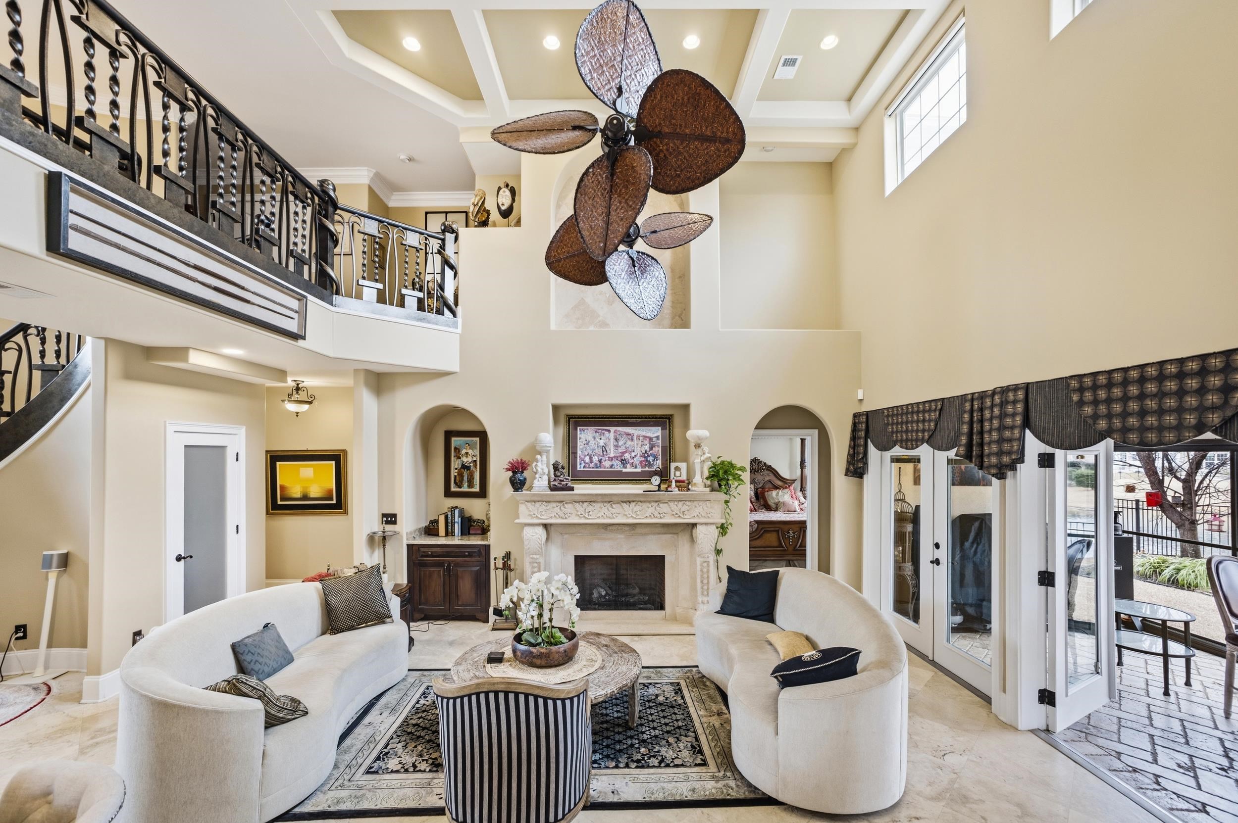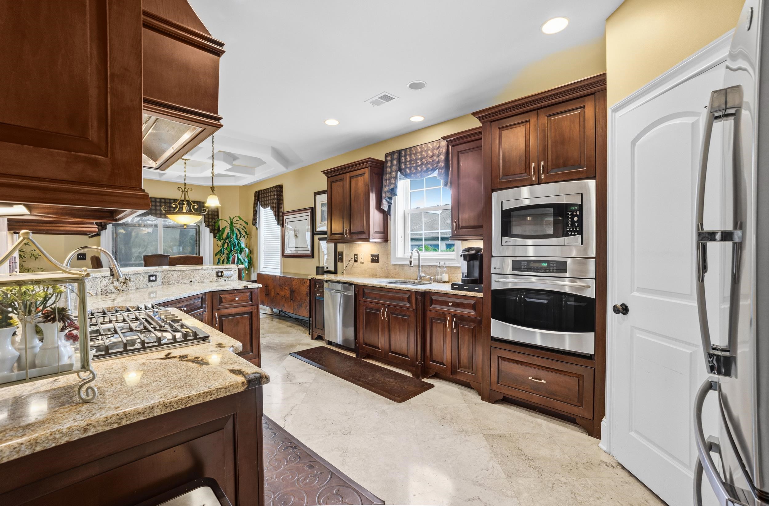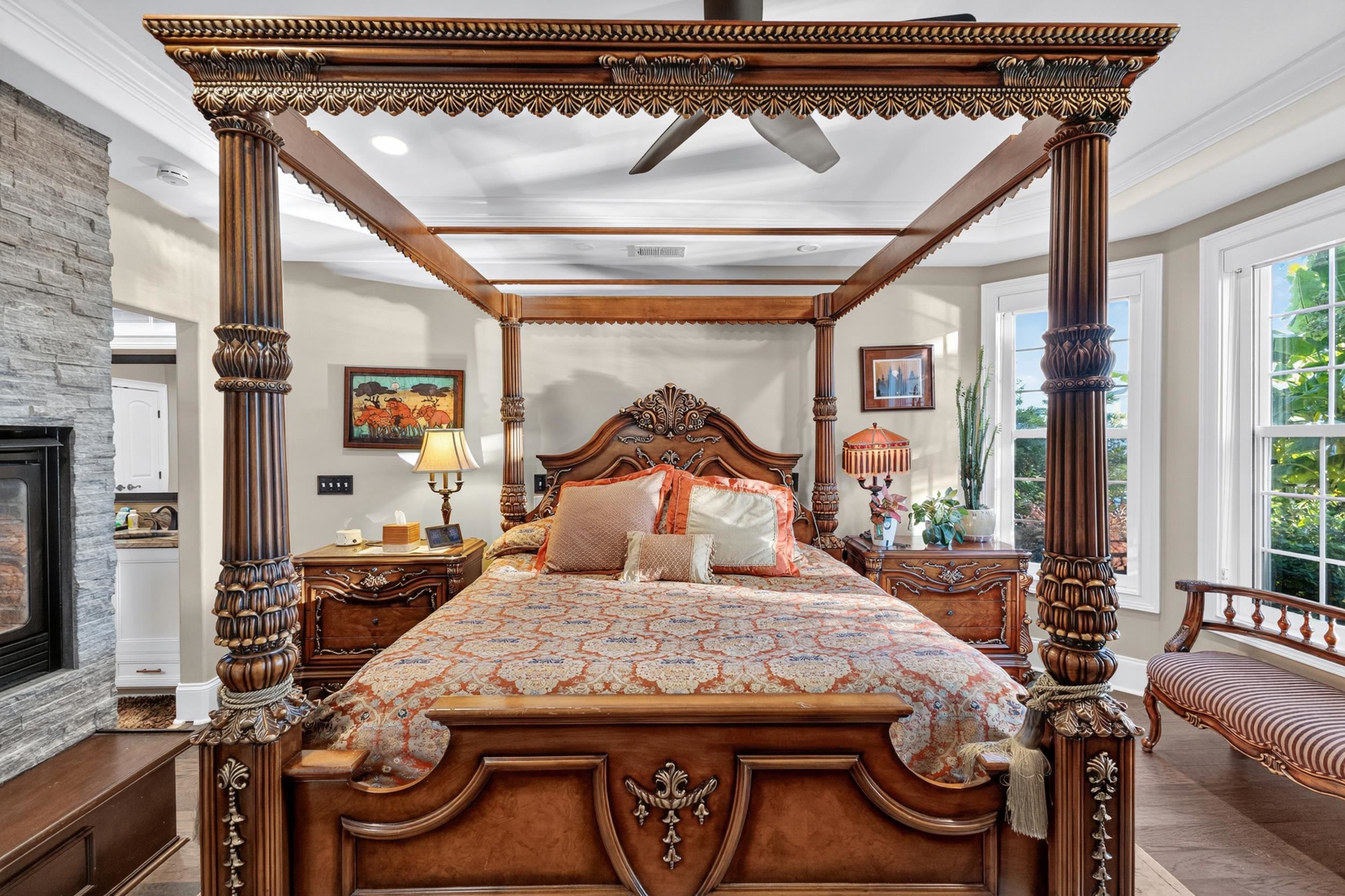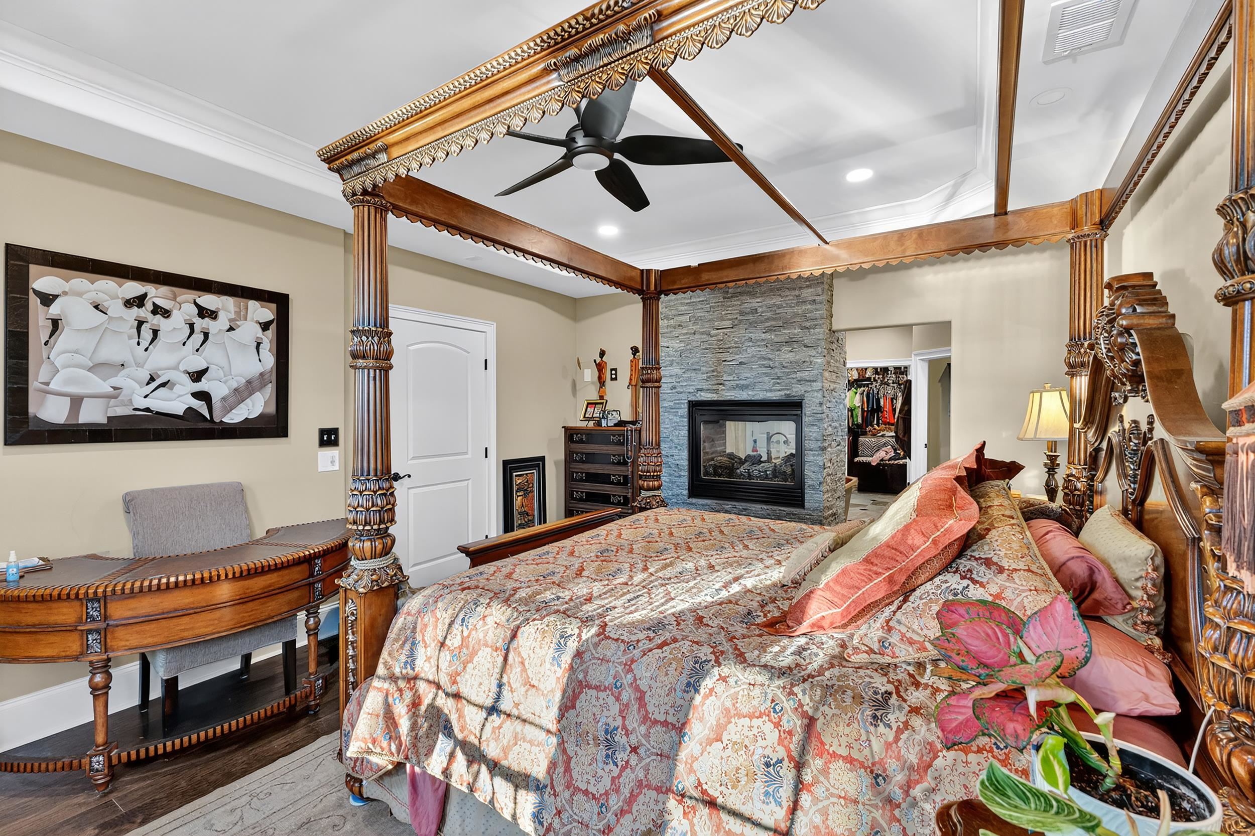 Beautiful 5BR Home located in the highly desirable gated community of Bluffs on the Waterway. This 5-bedroom, 3.5-bath home was extensively updated in 2023 and offers a spacious, functional layout with quality finishes throughout. The home features a custom metal and stone staircase in the foyer, coffered ceilings in the living and dining rooms, a stone fireplace in the main living area, and a double glass-pane fireplace in the master bedroom. The gourmet kitchen includes dual sinks, double ovens, granite countertops, new stainless steel appliances (dishwasher, refrigerator/freezer, garbage disposal and gas cooktop), and is open to the living space which is ideal for entertaining. The main-floor primary suite offers a large custom walk-in closet with built-ins, a center island, and a spa-style bath with a freestanding copper bathtub, copper fixtures, copper sinks/faucets, quartzite countertops, and custom tile details. Enjoy views of the pond and fountain from the screened-in porch. Additional features include a wine closet, ice maker, fully insulated interior walls, spacious laundry room with custom cabinetry and new washer/dryer on the exterior are two new tankless hot water heaters, and to top it off an oversized 2+ car garage with room for up to three vehicles. Upstairs includes four bedrooms, a Jack-and-Jill bath, an additional full bath, a large bonus room above the garage, and new carpet throughout the entire second floor. The upper-level walkway overlooks the living room and foyer below. Community amenities include a clubhouse, pool, tennis and pickleball courts, playground, private boat ramp, and boat storage on the Intracoastal Waterway. Conveniently located in the Carolina Forest school district with easy access to International Drive, Highway 31, and Myrtle Beach International Airport