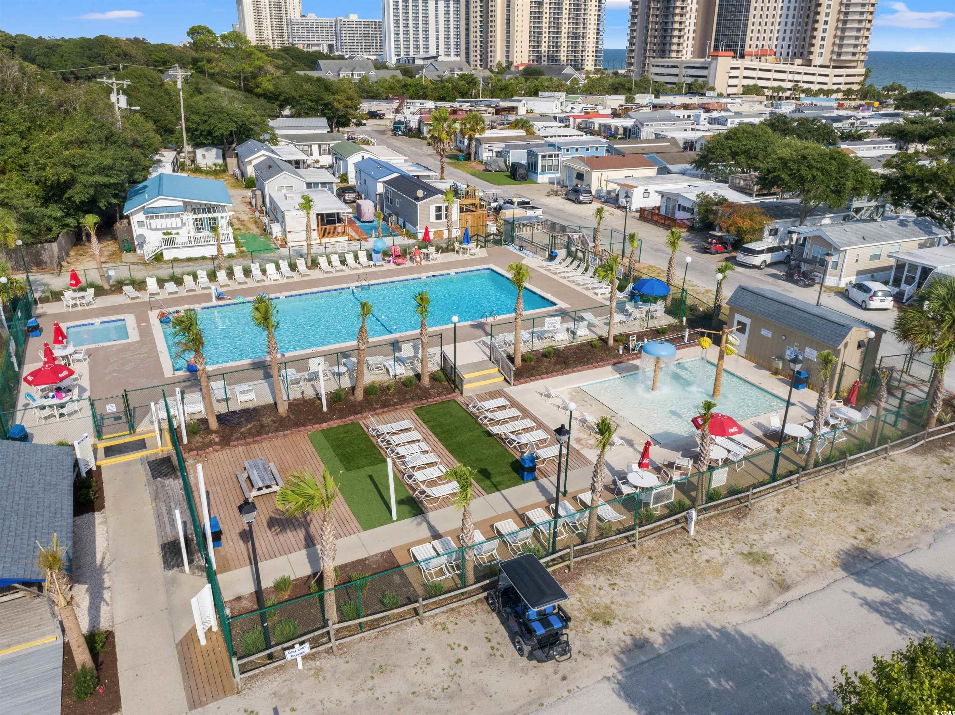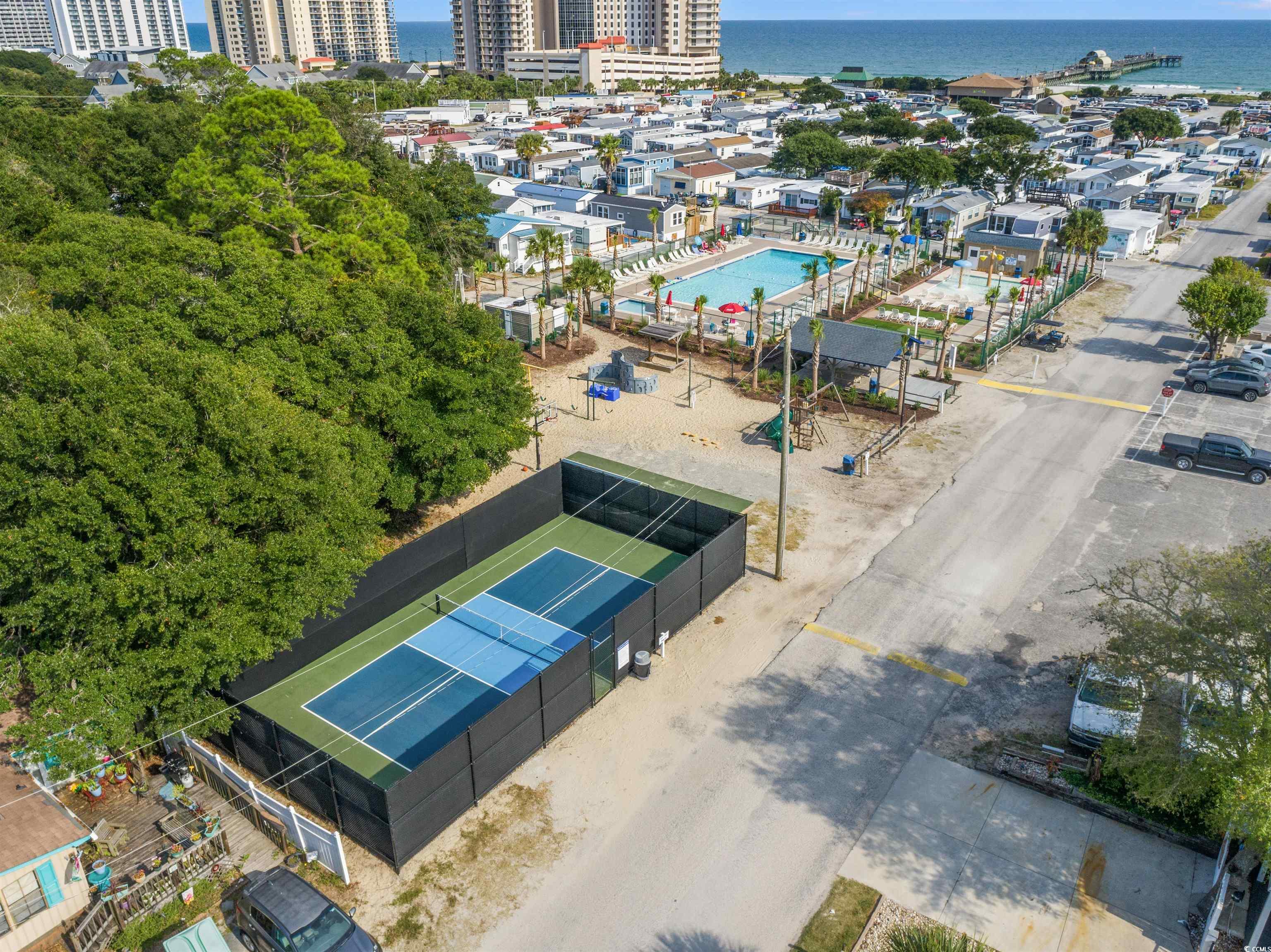 Wake up to ocean views and salty breezes! This coastal gem in Apache Campground offers the perfect mix of beachy charm, prime location, and everyday comfort. With 2 bedrooms and 1 bath, this home is filled with natural light and coastal vibes throughout. You’ll love the LVP flooring, quartz countertops, spacious kitchen with a center island and flat-top range, stainless steel appliances, and beautiful backsplash. All centered around an open kitchen and dining area complete with an electric fireplace and built-in stereo system. The primary bedroom is spacious and inviting, with a beautiful bathroom featuring a walk-in shower. The secondary bedroom includes built in storage and closet space. Plantation shutters add an extra touch of charm, and the large front porch is ideal for relaxing after a day in the sun. Location is everything and this home has it all. Enjoy ocean views right from your window along with the convenience of walking to beach access, the pier, fishing, local restaurant, a convenience store and much more. You'll also have access to amazing amenities an outdoor pool, game room, pickleball and basketball courts, playground, and fun events for the whole family. Whether you’re searching for a primary residence, a secondary beach escape, or an investment property, this one checks all the boxes. Don’t miss your chance to own a piece of the beach life!