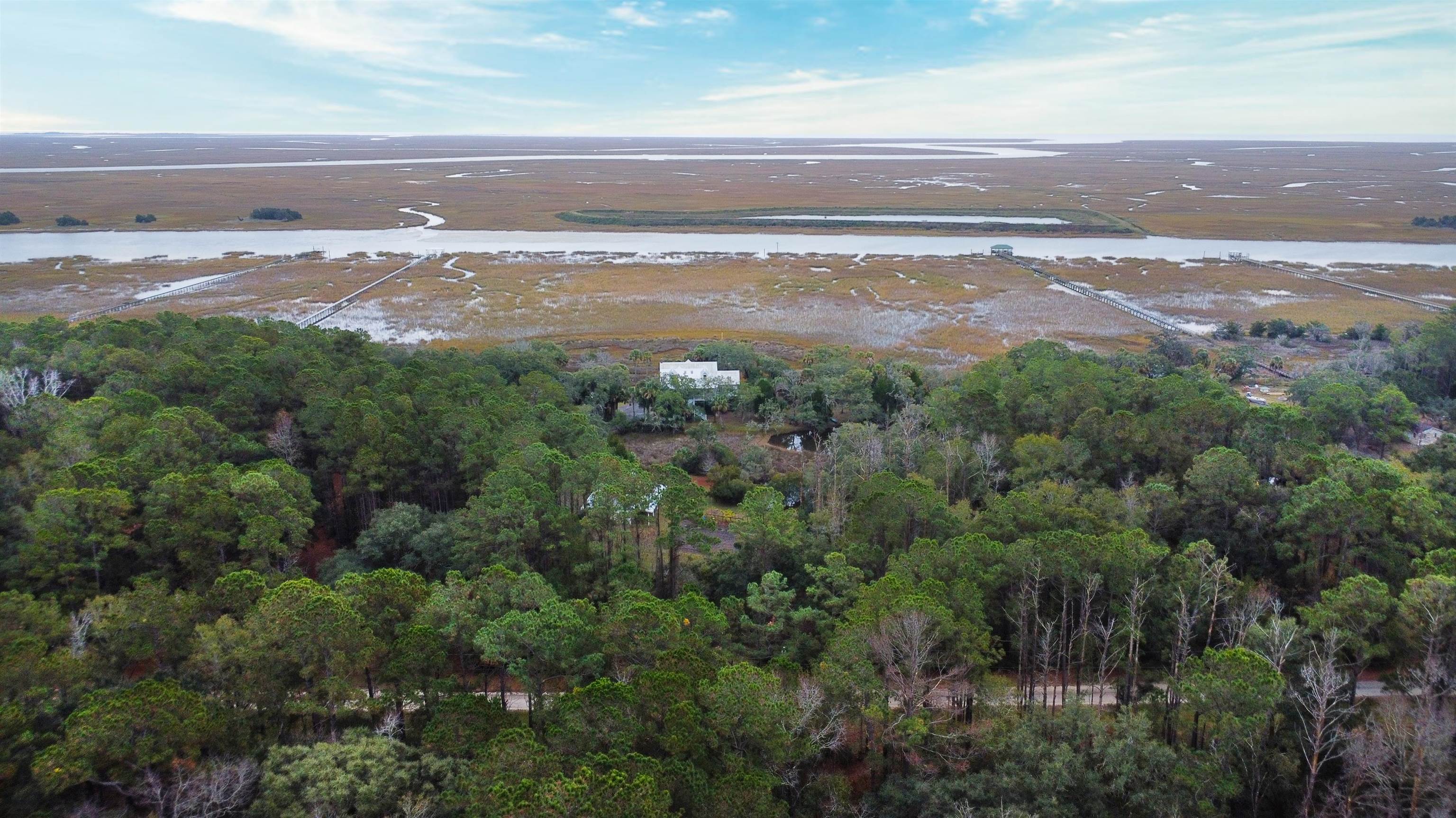 McCLELLANVILLE - Discover an extraordinary seaside country estate in the exclusive waterfront community of Tibwin Farms, where miles of breathtaking, uninterrupted vistas stretch across the protected beauty of the Cape Romain National Wildlife Refuge. From most every room in the home—and from the inviting screened porch—you'll enjoy ever-changing panoramic views that include expansive salt marshes, tidal creeks, distant barrier islands, and the iconic Cape Romain Lighthouse glowing on the horizon just two miles away. This charming three-bedroom, two-and-a-half-bath cottage captures the very essence of refined Lowcountry living. Set on an impressive 22 serene acres, the property is surrounded by majestic moss-draped live oaks, shimmering salt ponds, palmettos, and lush green lawns. Built by one of the area's premier restoration builders as his personal residence, the home reflects exceptional craftsmanship, thoughtful design, and timeless coastal elegance. A full-length Southern-style front porch welcomes you with peaceful pond views and offers a classic spot to relax with family and friends, sweet tea in hand. Inside, the front foyer opens to rich heart-pine floors that flow throughout the home, setting a warm, inviting tone. Just off the hall is a convenient powder room. The cozy family room, anchored by a masonry wood-burning fireplace, is perfectly positioned to take in the surrounding landscape and water views. Adjacent, the spacious screened porch becomes a favorite gathering place, ideal for morning coffee as the sun rises over the marsh or evening conversations as shrimp boats return at dusk. The well-appointed galley kitchen is a chef's delight, featuring custom cypress cabinetry, generous counter space, and stainless steel appliances. A wide hallway leads to a large laundry room with ample workspace, and beyond, a sun-filled primary suite offering sweeping views, generous proportions, and a beautifully appointed private bath, an ideal retreat at day's end. Upstairs, two additional spacious bedrooms, a central full bath, and a private study provide comfortable accommodations for guests or family, all thoughtfully designed to capture natural light and tranquil scenery. The outdoor living experience is equally exceptional. Wander shaded paths beneath centuries-old live oaks, enjoy nature walks through your own private acreage, or gather in the ground-level sitting area, perfect for oyster roasts, Lowcountry boils, and evenings under the stars. A potting area with running water and work surfaces complements the vegetable garden, grape arbor, and assorted fruit trees, offering the pleasures of a true coastal homestead. Completing this remarkable estate is a custom barn with ample space for boats, equipment, and hobbies, featuring water and power, plus a dedicated workshop area. If you've been searching for a rare Lowcountry retreat offering privacy, protected views, iconic coastal scenery, and unmatched natural beauty, without sacrificing proximity to the historic village of McClellanville, this property stands alone. Schedule your private showing today and experience coastal Carolina living at its finest!