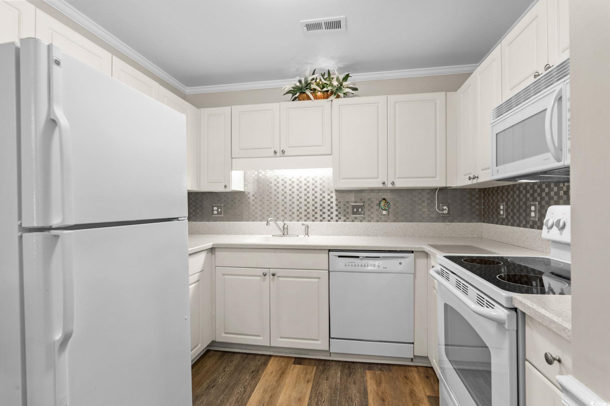 Welcome to resort-style living in the gated community of Savannah Shores — just east of Highway 17 and tucked away so you feel like you’re always on vacation, yet right at home. This well-maintained, first-floor condo offers the perfect blend of comfort and coastal charm. With 2 bedrooms and 2 full baths plus an inviting Carolina room that could easily serve as a third bedroom, you’ve got flexibility for family, guests, or a home office. Inside, you’ll find spacious bedrooms, LVP flooring throughout, and crown molding that elevates every room. The primary suite is a retreat of its own, featuring wide interior doors, a large walk-in closet, and an updated bathroom with double sinks, a tiled walk-in shower with glass door, and tasteful finishes. Guests will appreciate the privacy and convenience of the guest bath, complete with an added pocket door for improved flow and functionality that leads directly into the oversized guest bedroom that can fit 2 queen beds (currently 2 full beds). The kitchen features Corian counters and a separate pantry. The living areas blend seamlessly, offering a comfortable space for everyday living or entertaining. The washer and dryer is even included so you will be ready to wash your sandy towels! No more popcorn...this unit has beautiful smooth ceilings throughout! HVAC system was replaced in August of 2023. Savannah Shores offers exceptional amenities, including a sparkling outdoor pool, tennis courts, pickleball, putting green, fitness room, and even on-site car wash and golf cart charging areas. It’s a community designed to enhance the coastal lifestyle in every way. Beyond the gates, you’re minutes from the best of Myrtle Beach—gorgeous sandy shores, world-class golf, top dining and shopping, and incredible local attractions. Barefoot Landing, with its entertainment, restaurants, and waterfront charm, is just around the corner. Whether you’re seeking a full-time residence, second home, or investment opportunity for short term rentals, this condo delivers the ideal combination of comfort, convenience, and coastal living. Here, every day feels like vacation!
