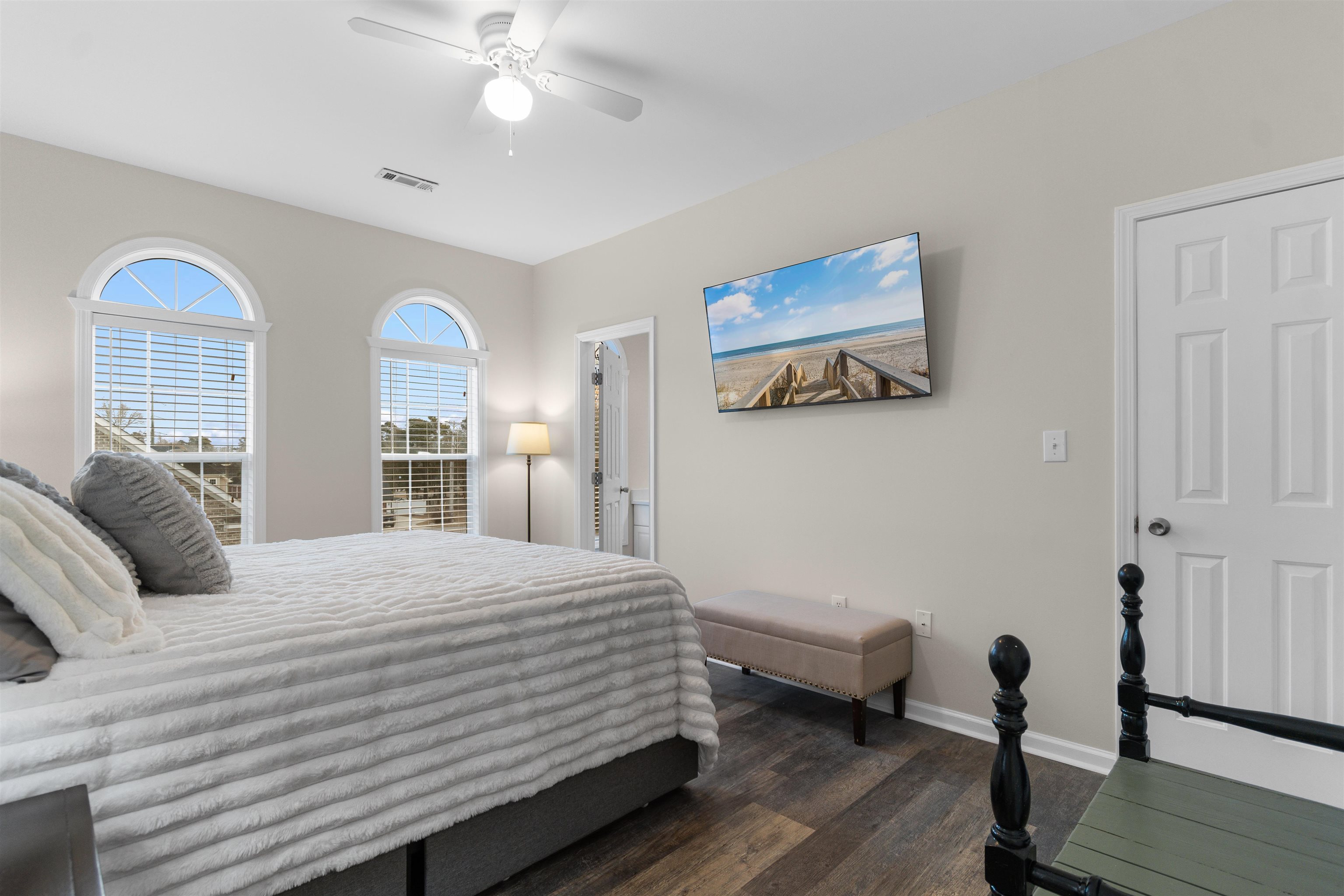 Beautifully updated and meticulously maintained 2BR/2BA condo in the gated Savannah Shores community, located east of Hwy 17 and less than 5 minutes to the beach—just off Restaurant Row. This turnkey unit is being sold fully furnished with newer furnishings, 3 Samsung Smart TVs, smart lock system, and even includes dishes, silverware, and linens—truly move-in or rental ready. Recent updates include fresh paint (including ceilings), new luxury vinyl plank flooring in bathrooms and utility room, replaced heat pump, updated faucets and light fixtures, added cabinet space, granite kitchen countertops, and newer stainless steel appliances. The spacious layout offers abundant natural light, a large living area with fireplace and mounted TV, and a bright Carolina Room/sunroom with storage closet. The primary suite features a walk-in closet and updated bath with new double sink vanity and mirror. The second bedroom also includes a walk-in closet, and the guest bath has an updated vanity and mirror. Savannah Shores amenities include a pool, fitness center, clubhouse, tennis courts, playground, and putting green. Ideal as a primary residence, vacation home, or investment property.
