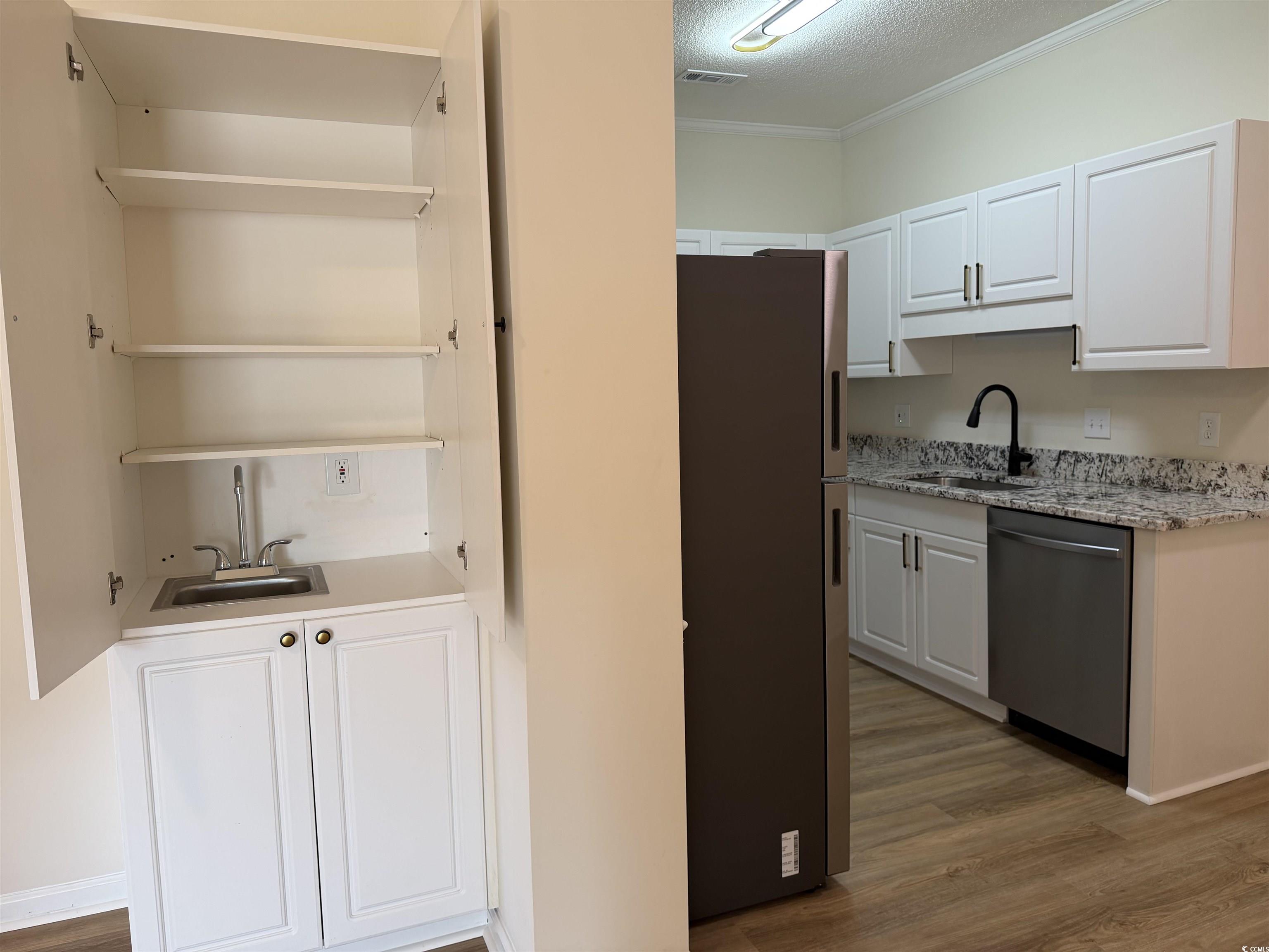 Prepare to be amazed by this stunning, completely remodeled 2-bedroom, 1-bath residence within the vibrant gated community of Savannah Shores. Brand new are all the Samsung kitchen appliances, new LVP flooring throughout, new granite counter tops & sinks in both kitchen and bath, new door hardware, new lighting & ceiling fans, with a soothing fresh coat of paint throughout the home. Both the Master and 2nd bedroom/sunroom have large walk-in closets for plenty of storage. Did I mention a completely separate laundry room with brand new, NEVER USED Samsung washer & dryer? This completely renovated contemporay kitchen with closet pantry and plenty of additional cabinet space, flows seamlessly into the spacious living area featuring cathedral ceilings, a wet bar, with a cozy and relaxing gas fireplace. Located just minutes from the beach, this active community boast a pool, pickle ball, tennis, club house, gym, and grilling station for family and friends. There's also a golf cart & car wash area with plenty of golf cart parking. Whether it's a permanent residence, a beach getaway, or a rental investment property, Savannah Shores with it's nearly all inclusive HOA makes enjoying "The Beach Life" a wonderful and fulfilling experience. Come see for yourself @ Savannah Shores, see ya soon!
