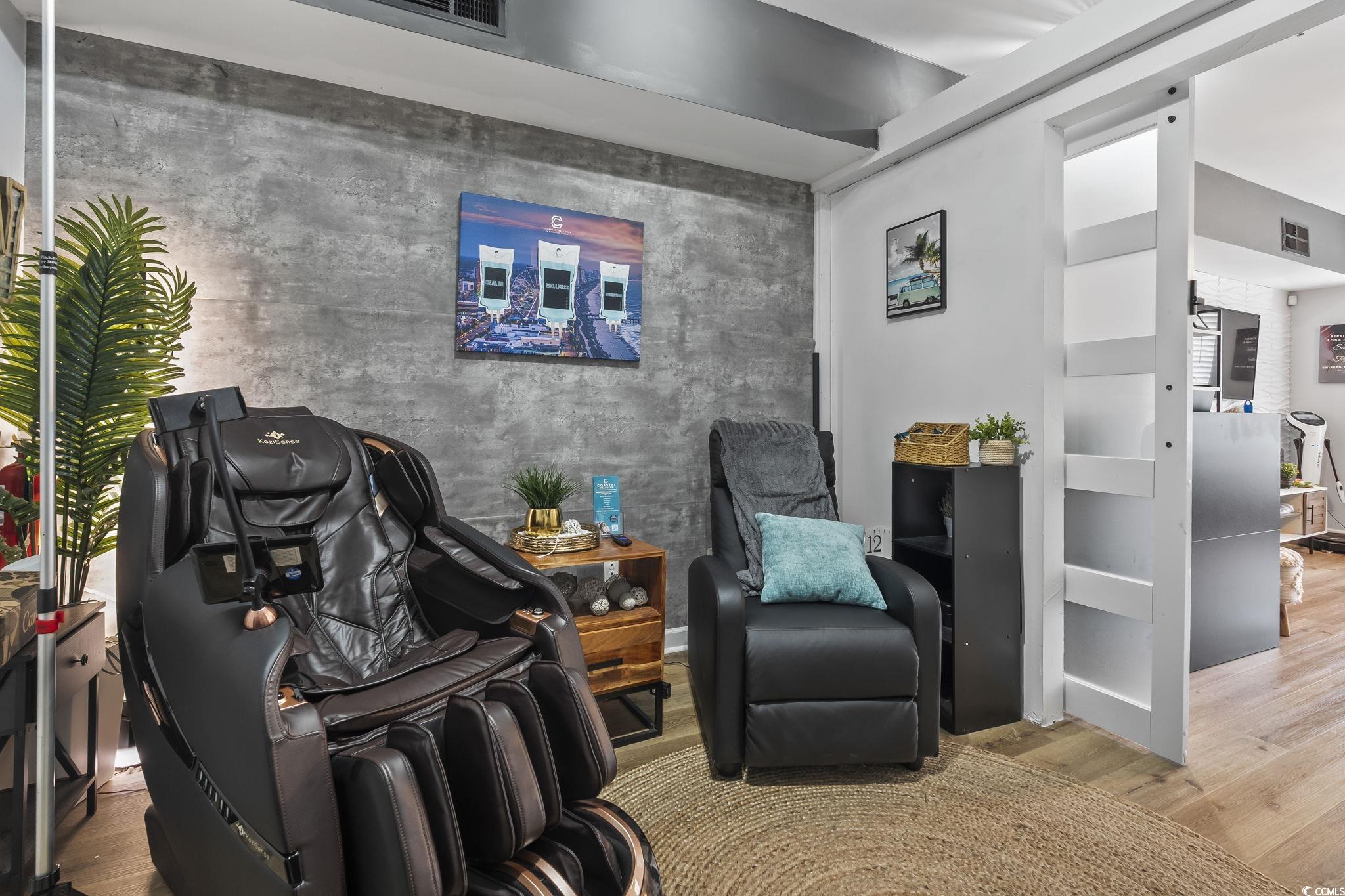 Welcome to the highly desirable community of Market Common-The ground level Commercial can be used for office or retail space, the second floor has a living room/ dining area, full kitchen with granite counters, stainless steel appliances, Washer /Dryer and a half bath. The third floor has two large bedrooms and two full baths. Located within a half mile to the beach - Market Commons is a unique community with plenty of boutiques to shop - the best restaurants -a gym-ball fields - Savannah's playground-cozy cafes - a movie theater - bowling alley - beautiful park and lakes in walking distance- Within 2 miles to the airport - This is Coastal living at its finest! Live upstairs and have an office downstairs