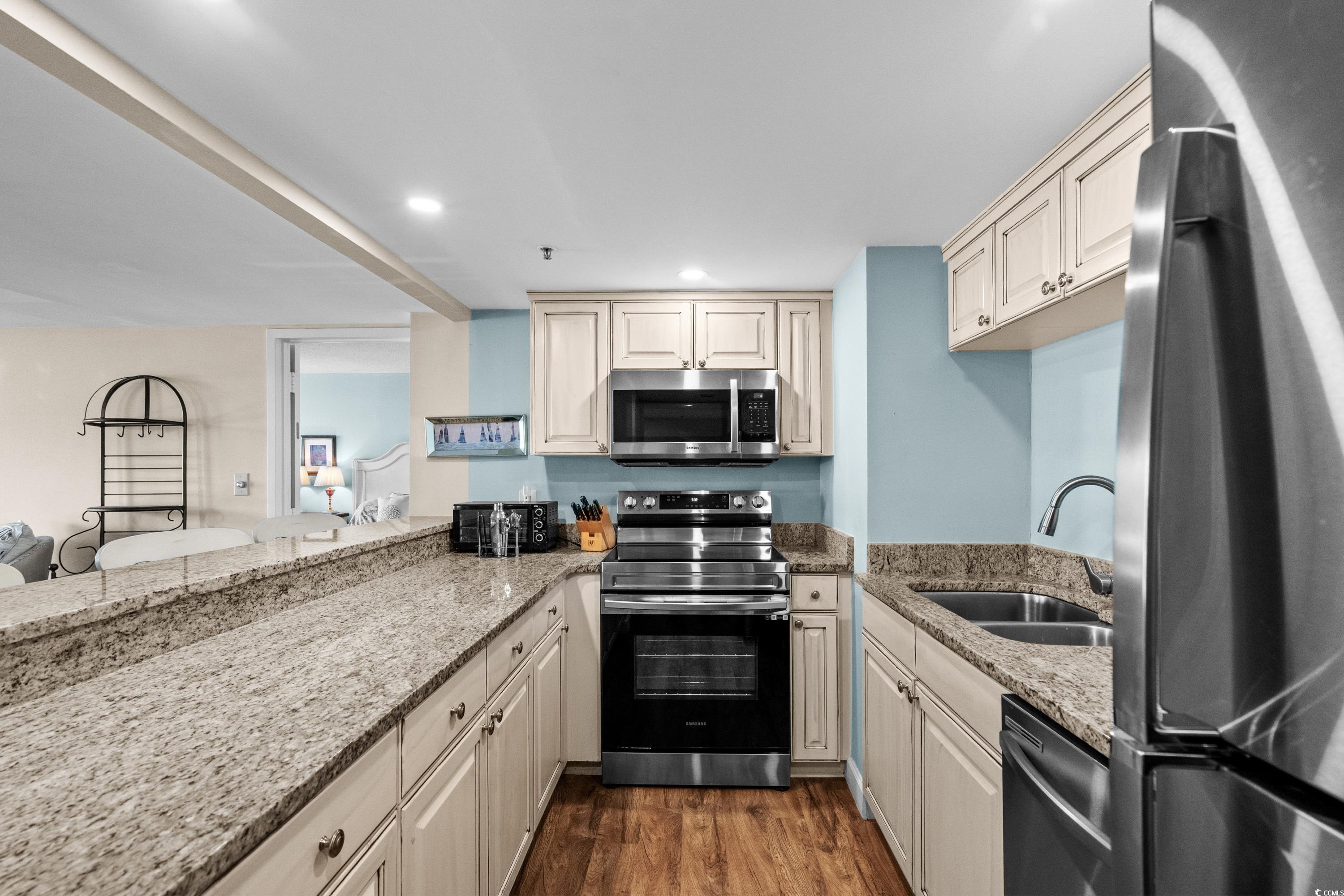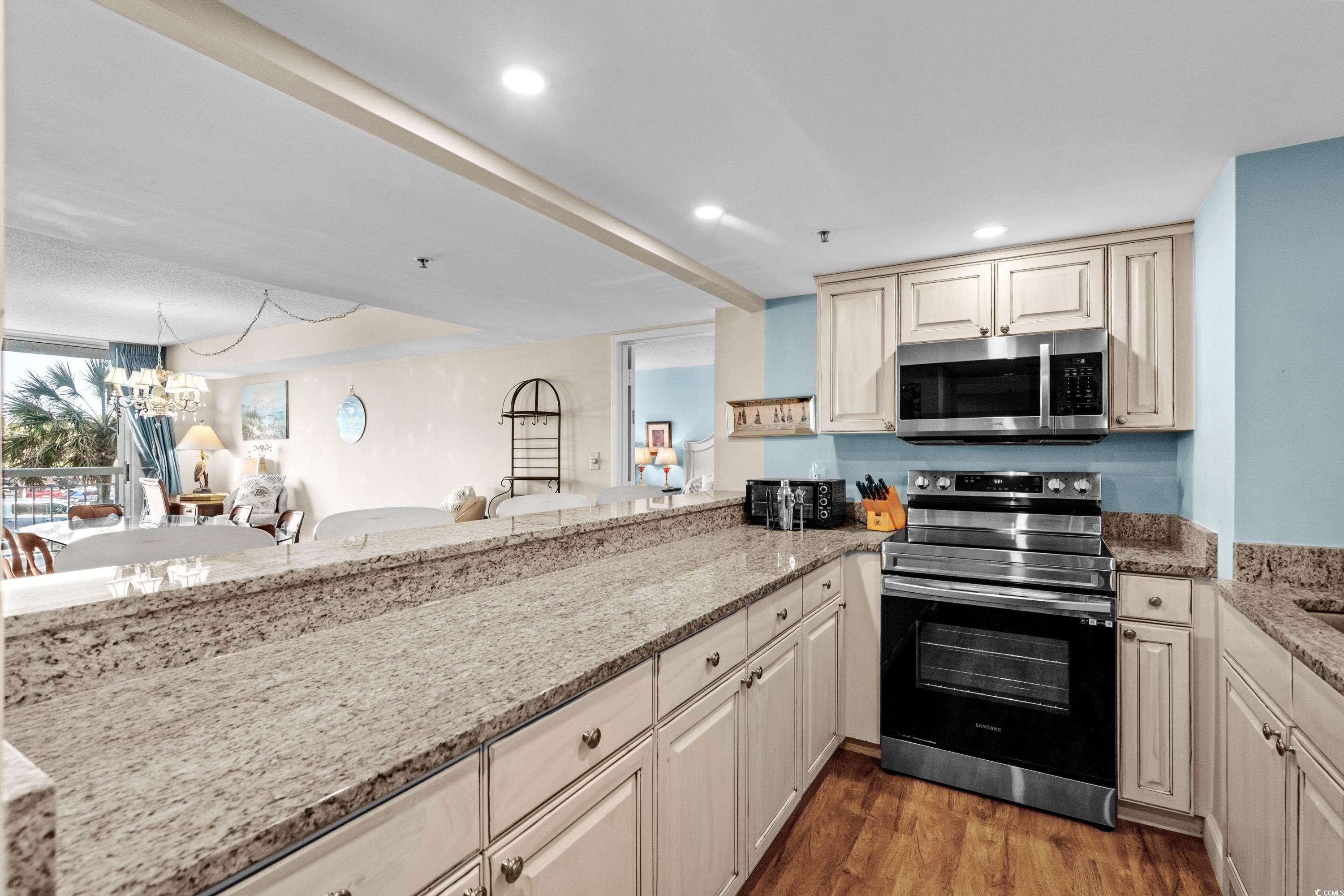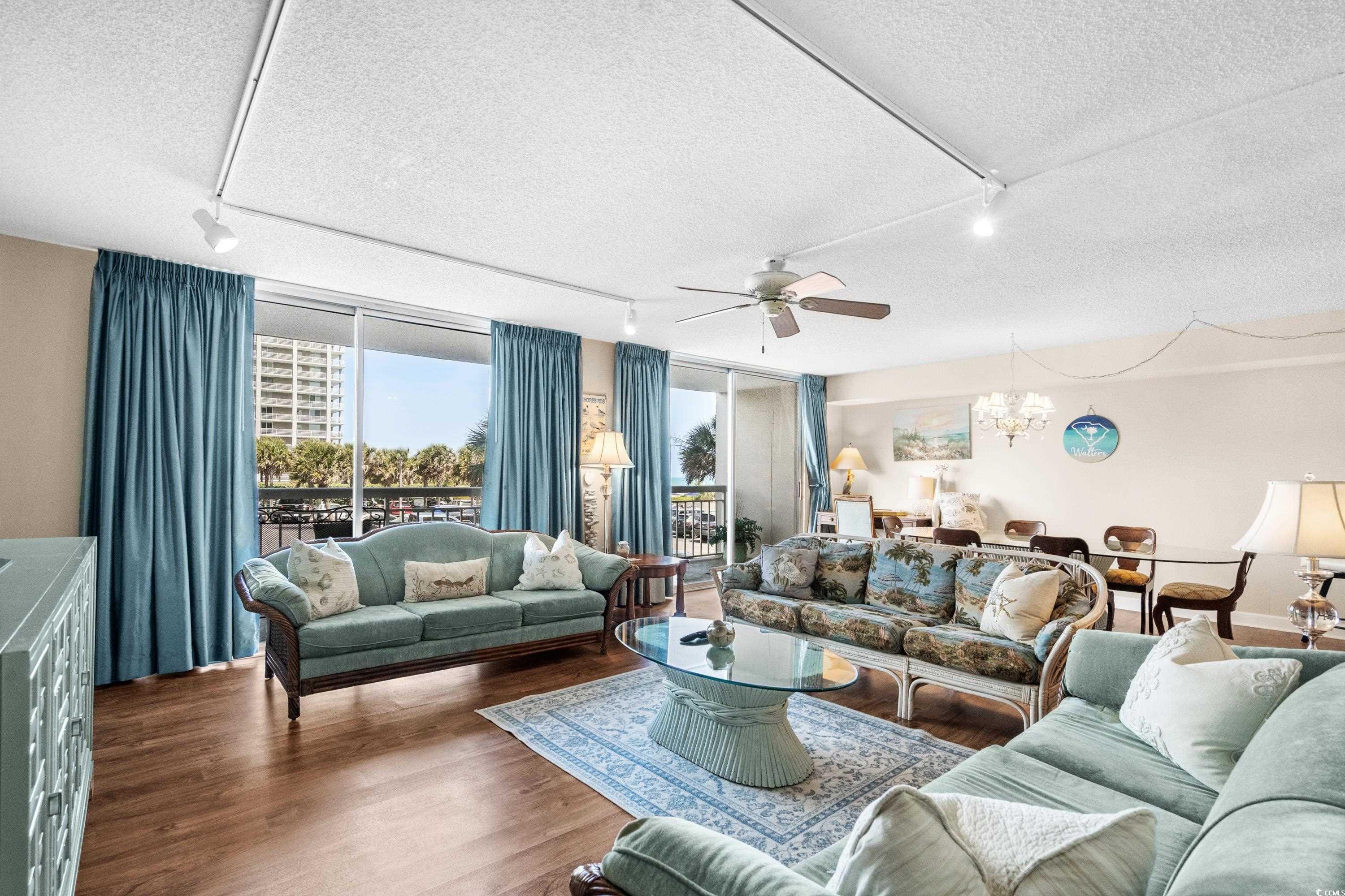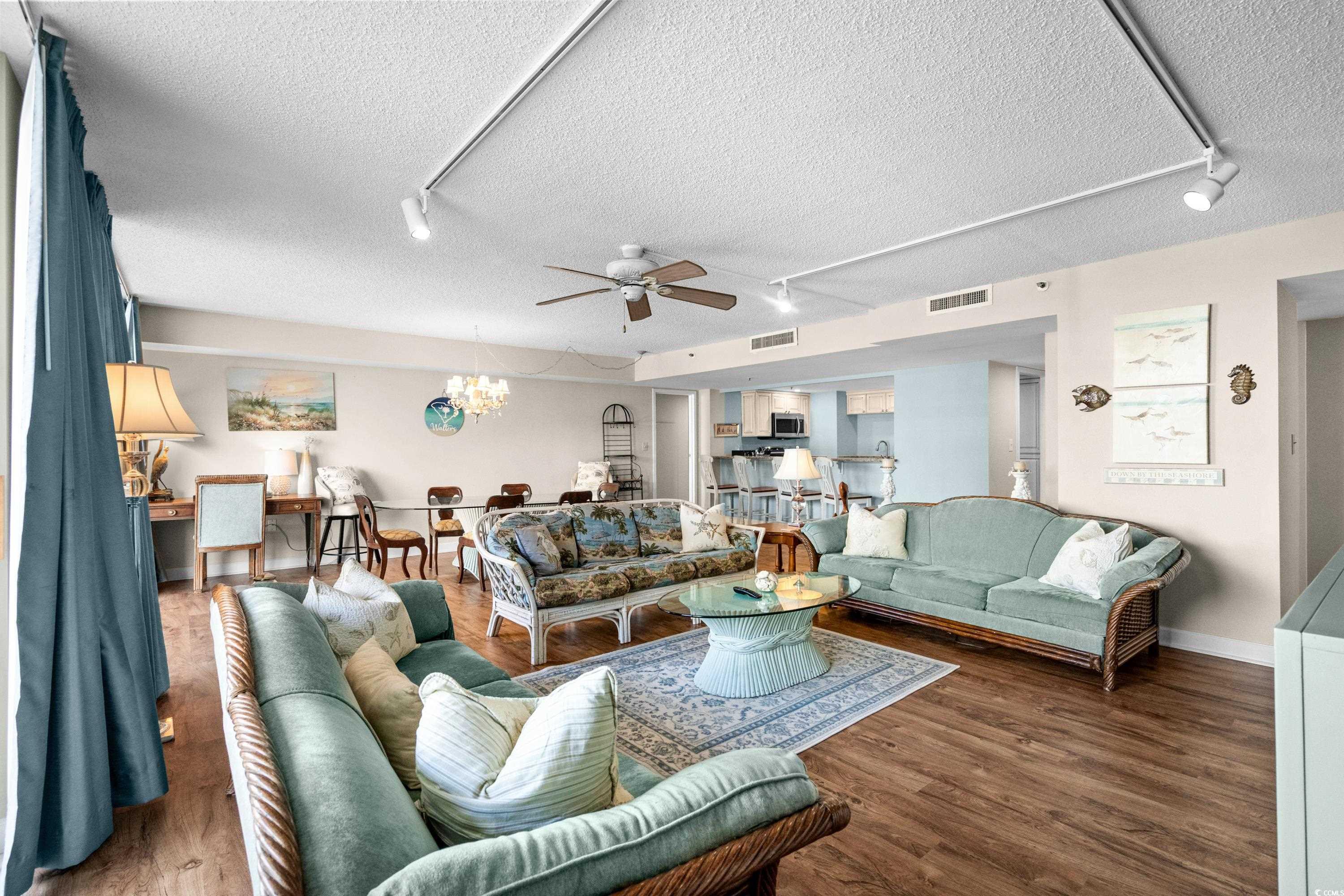 Very rare opportunity to come on the market in South Hampton @ Kingston Plantation! Unit 105 is only one of three units in the building that has this extra large floor plan of 1872hsqft, four separate balconies, and has a lockout feature that offers extra flexibility for rental purposes. Originally set up as a 4 bed 3bath unit, the 4th bedroom wall was removed to open up the living area. However, It can easily be converted back to a 4bd/3ba unit if desired (Main unit currently sits as a 2bd/2ba & Lockout unit is 1bd/1ba).The kitchen comes fully equipped with stainless steel appliances, updated cabinetry, granite countertops and breakfast bar. Additionally, there is a full-size laundry room with washer/dryer & ample storage space. The spacious primary suite features a double sink vanity, walk-in shower, and a huge ocean view balcony. Enjoy your morning coffee while watching the sun rise or an evening cocktail with incredible views of the Atlantic Ocean from four separate balconies in all bedrooms & the living area. South Hampton is located within Kingston Plantation, a stunning 145 acre gated, oceanfront resort! You're connected by a footbridge to the Embassy Suites hotel with on-site restaurants including the Blackdrum Brewery, multiple swimming pools, fitness center, pickleball courts, tennis courts, Spa33 on-site, a waterpark (for those on Hilton rental program), walking trails, 24hr security with a staffed guard gate, and much more! Kingston Plantation is close to all of the shopping, dining, entertainment, golf, Tanger Outlets, Barefoot Landing, and all the Grand Strand has to offer. Call the listing agent today for a showing!
