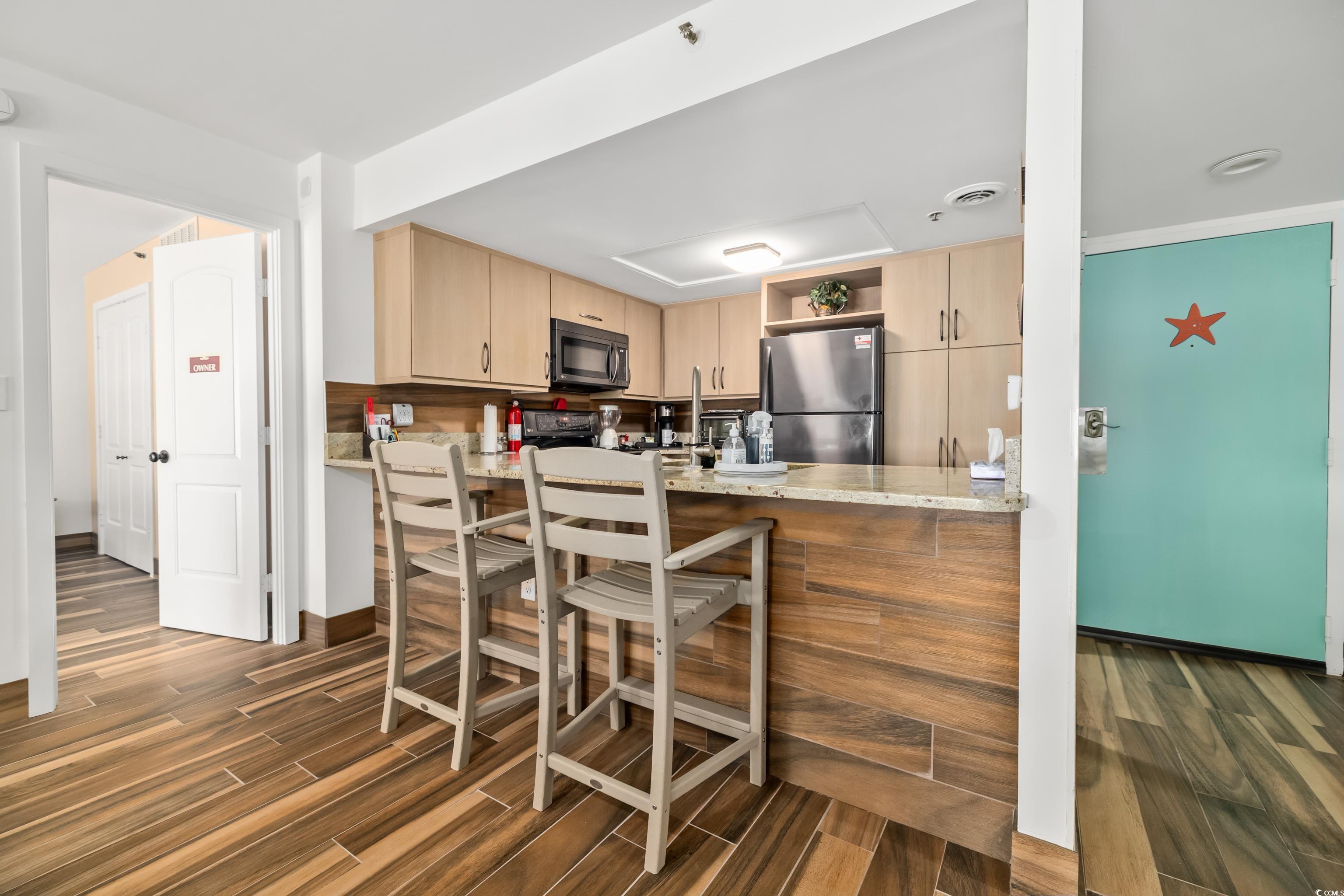 Oceanview, renovated, and rental-ready—this South Hampton condo has it all! Completely transformed in 2021, this 3-bedroom, 3-bathroom condo in Kingston Plantation’s South Hampton tower blends coastal comfort with smart investment potential. From the wood-look tile plank flooring to the fully remodeled kitchen with custom cabinetry and stainless steel appliances, every detail was thoughtfully upgraded—including new plumbing, electric, and new furnishings throughout. One of the bedrooms features a lockout option, giving you flexibility to rent it as a full 3-bedroom unit or split it into two separate income-producing spaces—or keep one side for yourself and generate income from the other. Each room of the condo has balcony access, offering plenty of private outdoor space and ocean breezes. Additional highlights include in-unit laundry, a 2021 HVAC system, a 2019 water heater, and updated bathrooms with a fresh, modern feel. Set within the gated, 145-acre Kingston Plantation, you’ll enjoy access to 12 acres of lakes, walking trails, multiple pools, oceanfront restaurants, a full-service spa, and 24/7 security. There’s also an optional fitness center with pickleball, tennis, an indoor pool, workout classes, and access to a waterpark for Hilton rental program participants. Whether you're looking for a beach escape, a smart rental property, or both—this turnkey unit is ready to deliver.