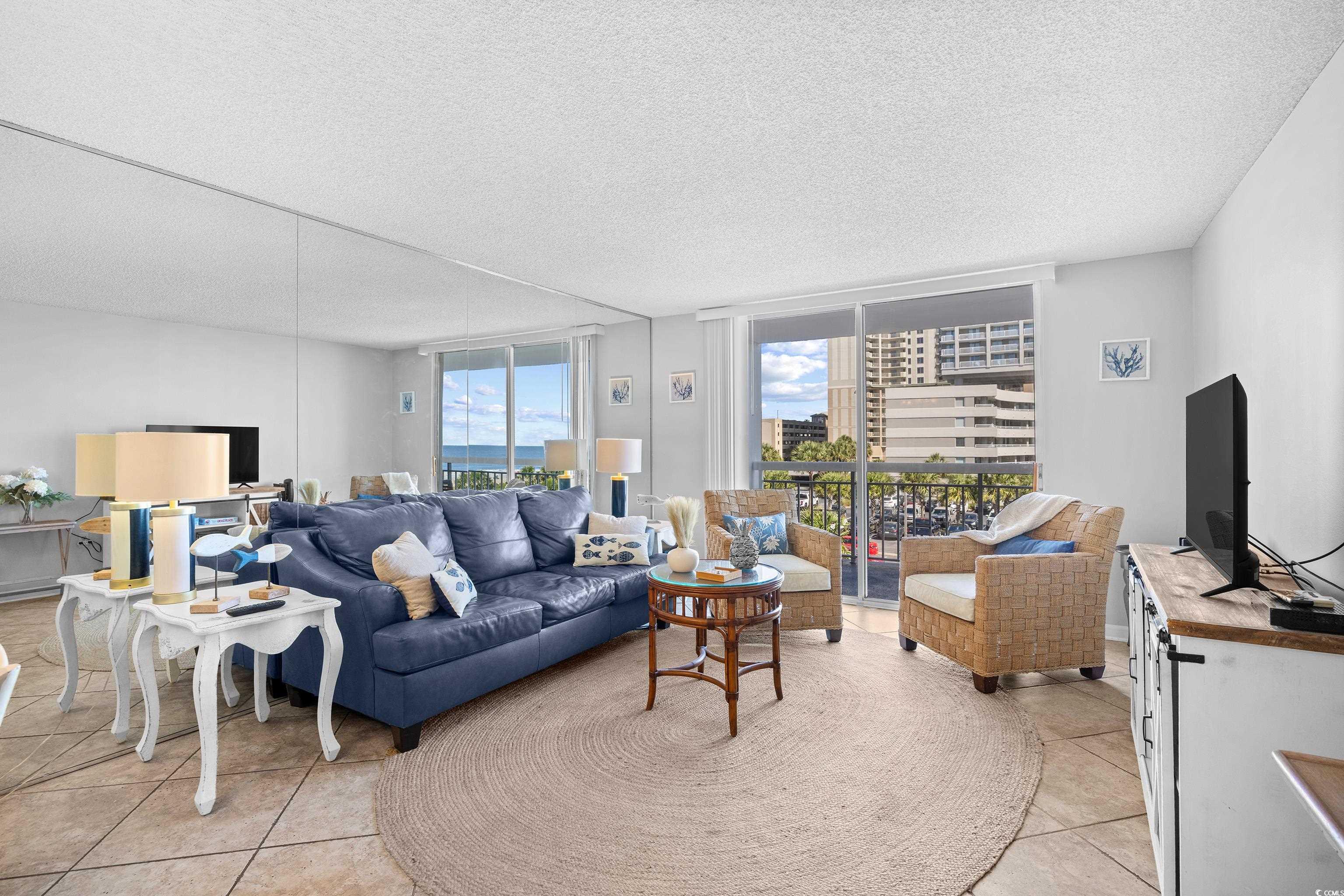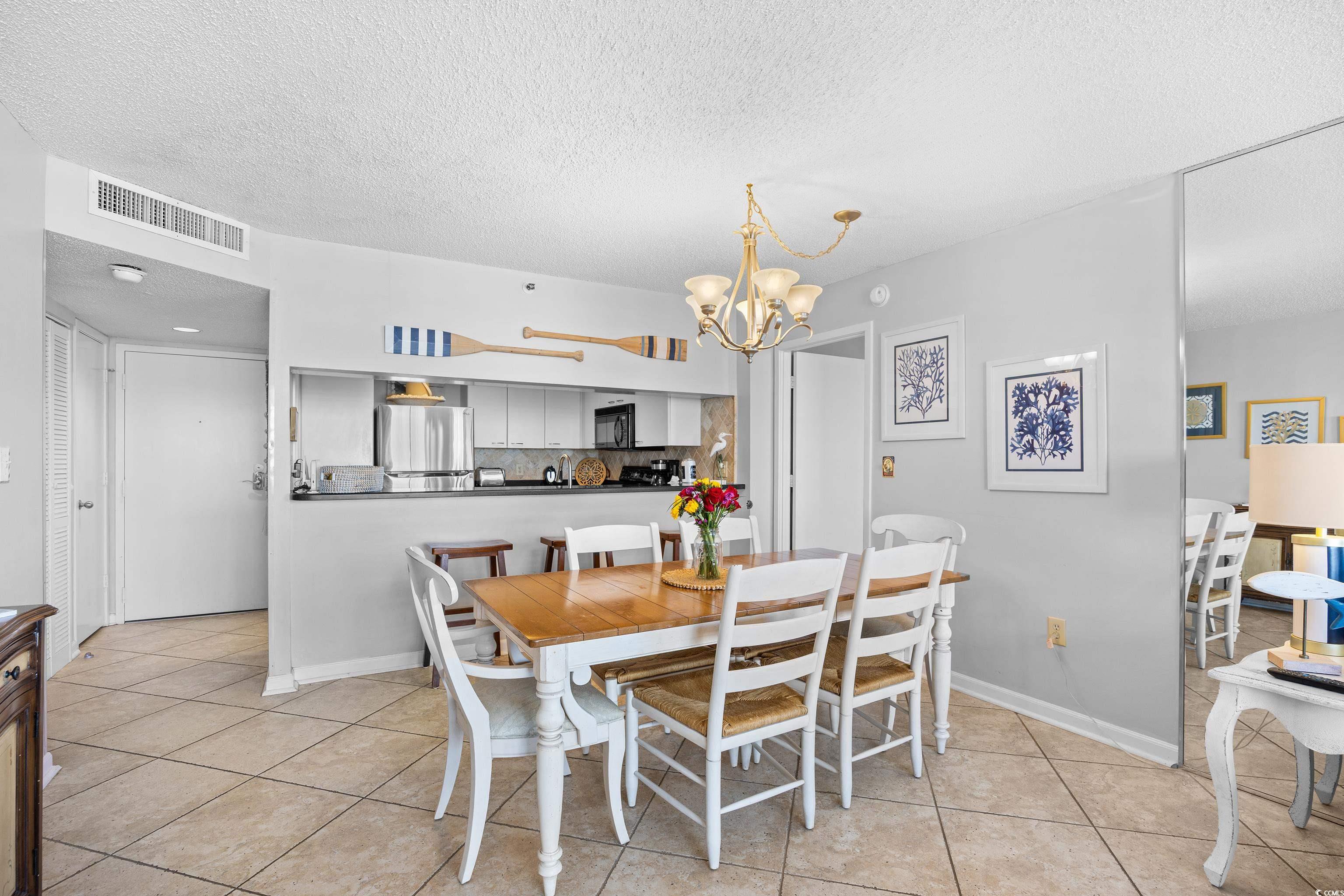 South Hampton Unit 301 at Kingston Plantation presents a prime opportunity for investors and second-home buyers seeking a turnkey ocean view property in Myrtle Beach. This fully furnished 2-bedroom, 2-bath condo is located on the third floor of a premier oceanfront tower and offers approximately 1,260 square feet of updated living space. The open-concept layout features tile and luxury vinyl plank flooring throughout, a fully equipped kitchen with granite countertops, breakfast bar, and stainless steel refrigerator complimented by black appliances. All living areas offer private balcony access to enjoy the sights and sounds of the beautiful Atlantic. The spacious bedrooms include a master suite that includes a walk-in tile shower and jetted tub. The guest bedroom has two queen beds, two private balconies and easy access to a full guest bath. Kingston Plantation is a gated resort community with strong rental potential and exceptional amenities, including indoor and outdoor pools, a kiddie pool, tennis courts, walking trails, picnic areas, and so much more. Owners may use golf carts within the community, and pet restrictions apply. Located minutes from shopping, dining, golf, and entertainment, this property offers both lifestyle and income-generating potential. HOA covers insurance, internet, pool access, and more, making ownership hassle-free and attractive for seasonal use or short-term rental strategies.