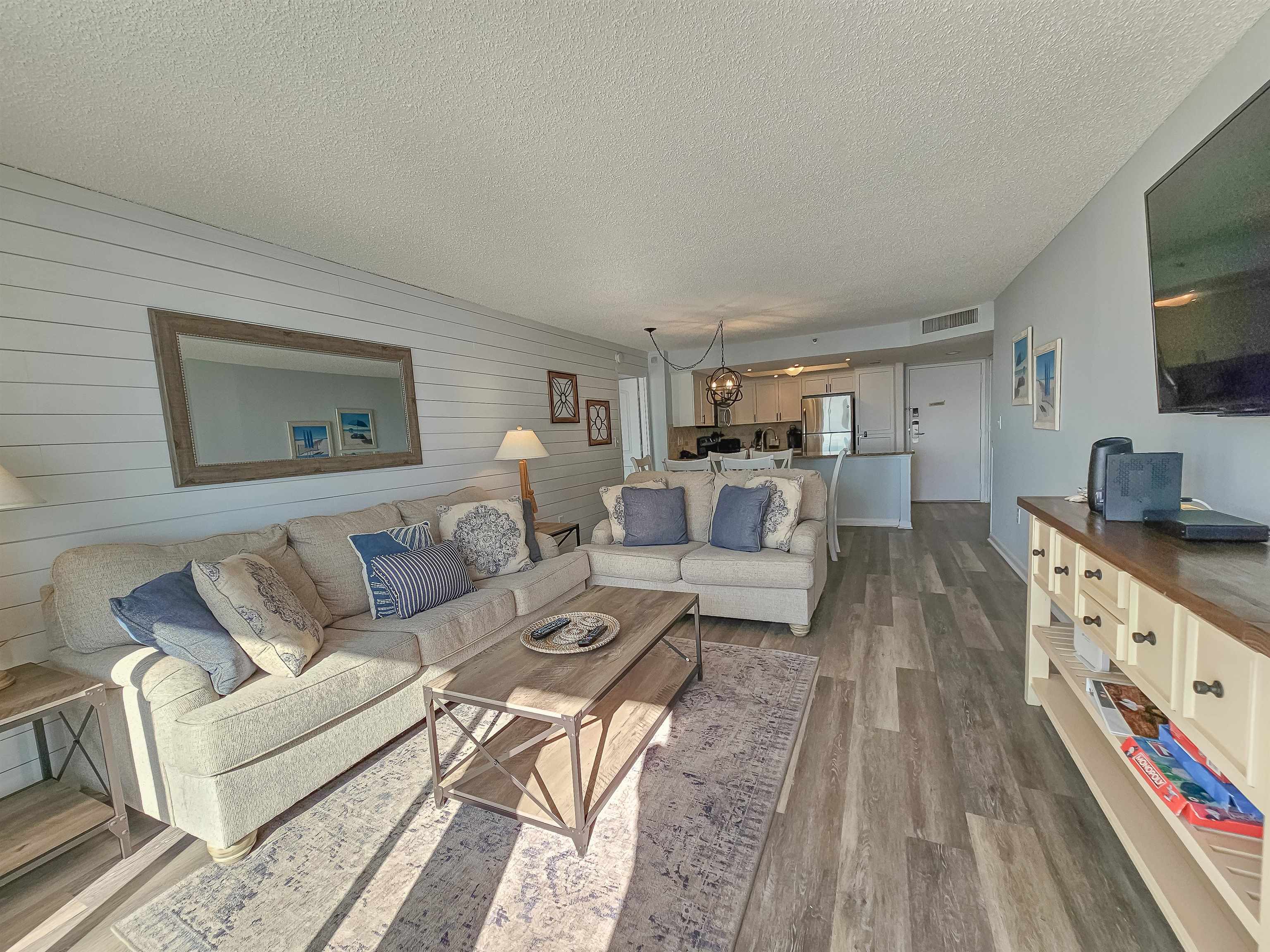 Enjoy the comfort and elegance of this expansive ocean-view residence offering nearly 1,850 square feet of total living space, including three separate decks. Each of the three bedrooms is exceptionally spacious—both guest bedrooms easily accommodate two queen beds, maximizing comfort and versatility. The home has been tastefully renovated and decorated throughout, featuring wood-like LVP flooring. The kitchen has been redesigned with an open-concept layout and showcases new granite countertops, custom cabinetry, a stylish backsplash, and stainless-steel appliances. The primary suite has also been opened up to create a spa-like retreat, complete with a large walk-in shower and stunning views overlooking Kingston. The unique lockout floor plan offers unmatched flexibility: use the residence as a full three-bedroom home or split it into a two-bedroom and a one-bedroom configuration—ideal for rental income or multi-use living. Ultimate flexibility meets coastal luxury. Kingston Plantation is a 145-acre, master planned community in the heart of Myrtle Beach. Kingston offers a combination of amenities and preserved natural environment that's unparalleled. One-half mile of white sand beach, twelve acres of freshwater lakes and mature trees, all surrounded by beautifully manicured grounds. The Plantation offers amenities such as a magnificent Spa and Fitness Center, four clay and hard surface tennis courts, four pickleball courts, multiple pools, badminton, croquet, beach volleyball and much more! Kingston offers a selection of one, two, three and four bedroom villas, townhomes, lakefront lodges and oceanfront high-rises through the community.