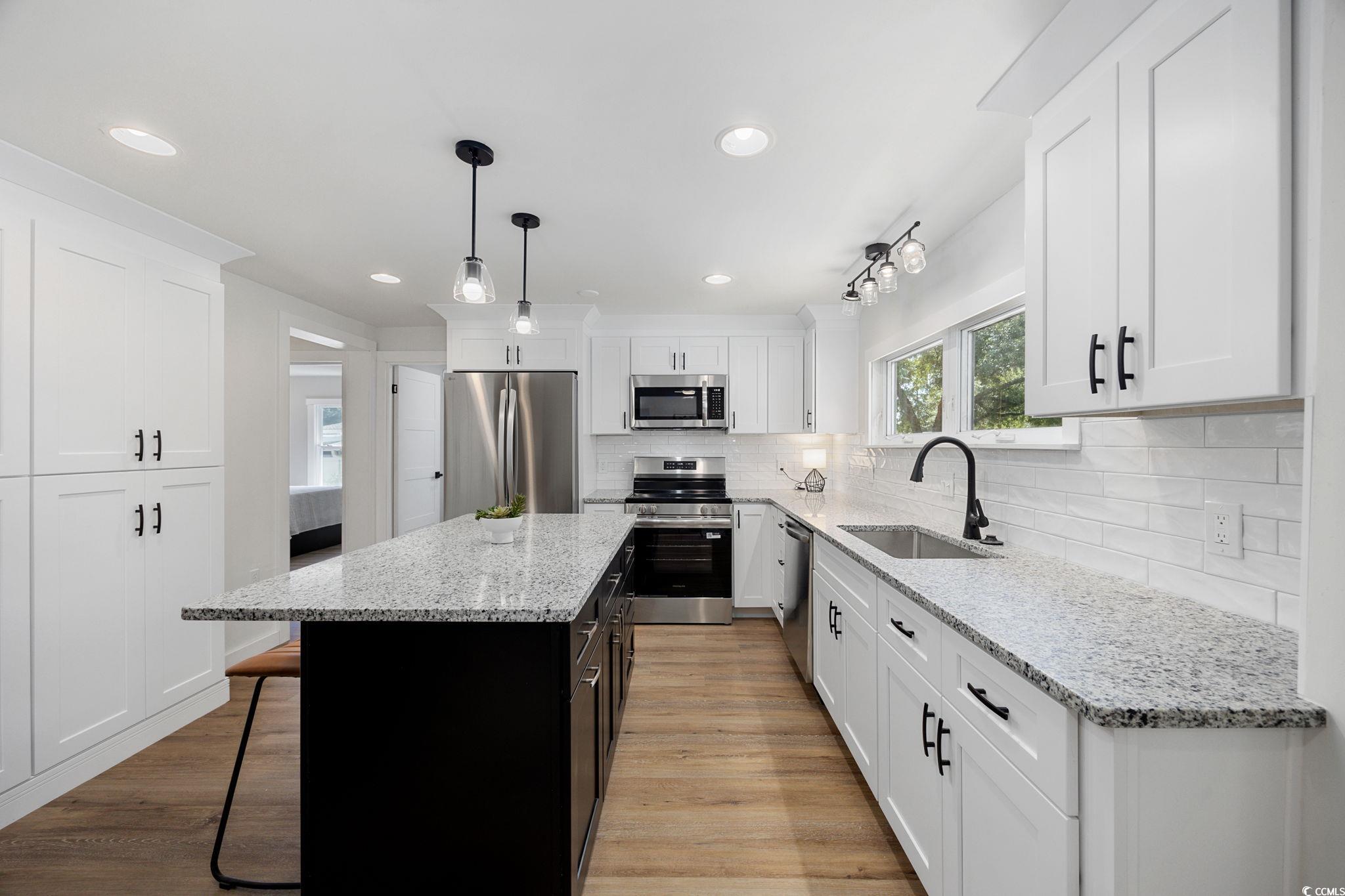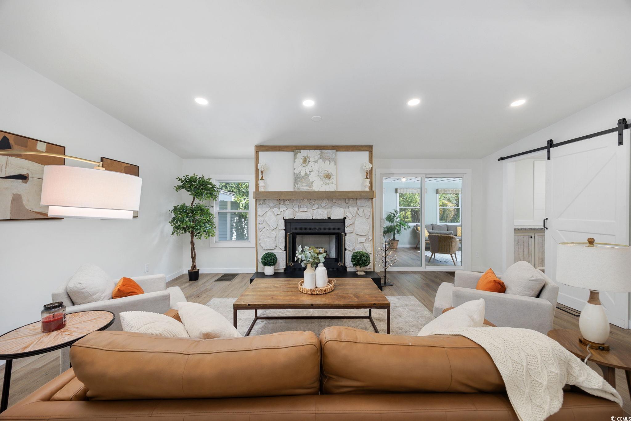 JUST REDUCED!!! BIG RENOVATION PLUS METAL ROOF!!! Here is your chance to own a beautiful home in the very desirable 55+ Live Oak community in Murrells Inlet!! This spacious manufactured home features 3 bedrooms and 2 full baths with a split floor plan & fireplace, bonus room, and NO MONTHY LAND LEASE...LAND INCLUDED!!! Enjoy tons of upgrades in this newly renovated property that includes new LVP flooring throughout, drywall instead of paneling, and the GORGEOUS KITCHEN includes new Shaker-style cabinets with soft-close doors & drawers, textured tile backsplash, large stainless sink, additional pantry cabinets, pendant lights & granite countertops!!! Enjoy the wood-burning fireplace in the living room with a new barn door to your bar/laundry area. Primary suite boasts walk-in closet with automatic light, and large bathroom with new double-sink vanity, new vanity mirror & lighting, new comfort-height toilet and walk-in shower. On the other side of the house are two additional bedrooms and another full bath with shiplap detailing. All new craftsman-style door hardware and trim. LED lighting added in most rooms. Many other improvements throughout. Go out the back door and step into the enclosed back porch complete with separate HVAC, new slider door and pickled paint. This area is great for watching the game, crafting or doubling as an office. Out the back door there is a large 10 x 12 shed with electrical, carport, patio area and space for a beautiful garden. The sellers also just installed new gutters. Don't miss the community center complete with large pool and hot tub. Live Oak has a monthly event calendar with something for everyone. The location of the property is ideal, just minutes from Huntington Beach State Park, Brookgreen Gardens, the Marsh Walk plus great restaurants, shopping and medical. Listing information is deemed reliable but not guaranteed. All measurements are approximate. Buyer is responsible for verification of all measurements and HOA info prior to closing.