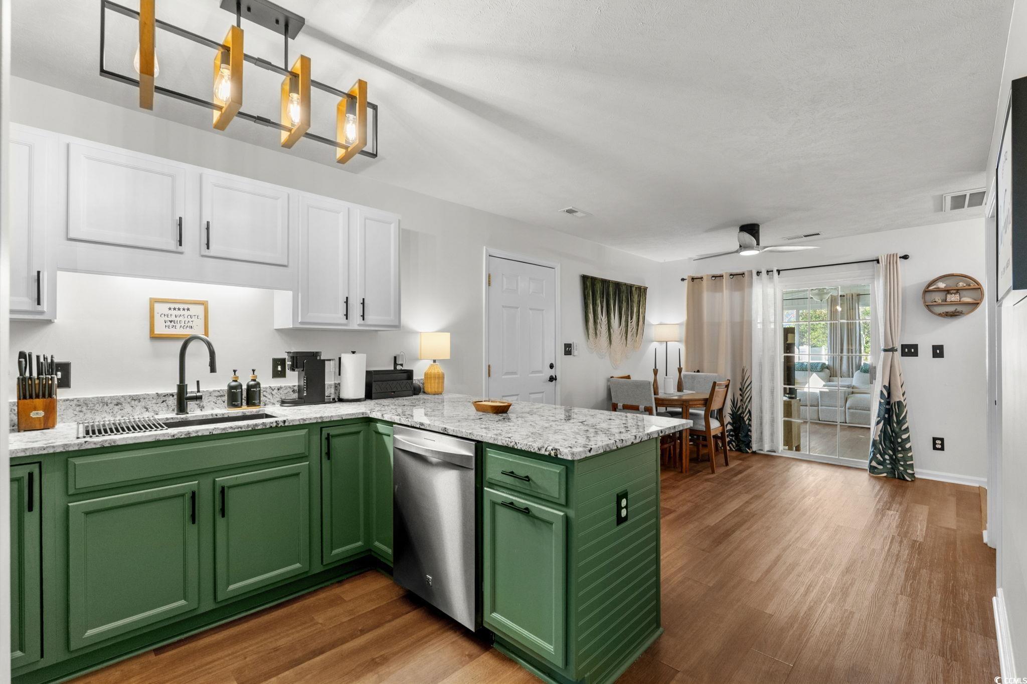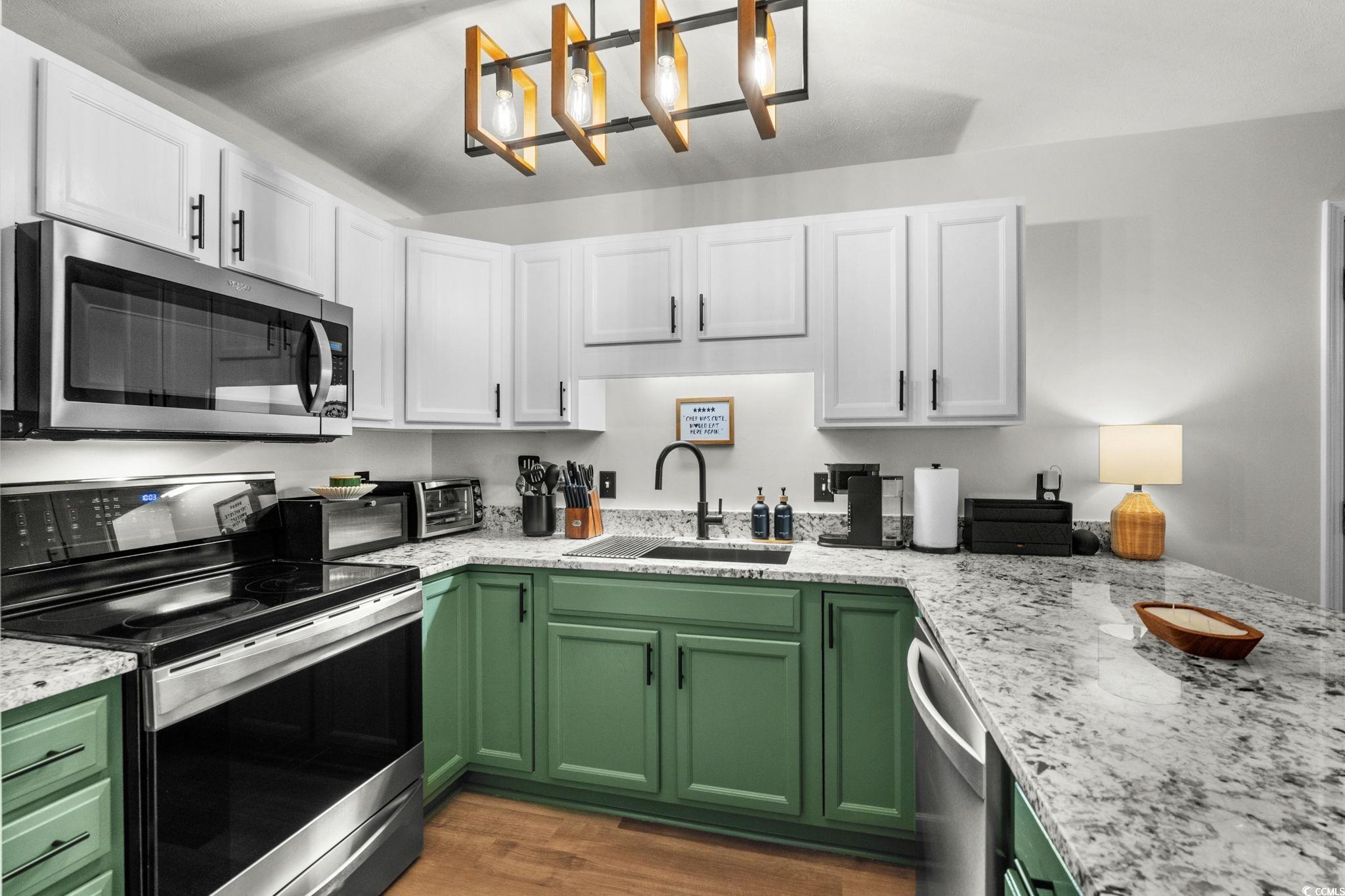 Fresh, Modern & Stylishly Renovated—Move-In Ready! Welcome to this beautifully updated 4-bedroom, 2-bath single-family home in the highly desirable St. James School District! Completely refreshed from top to bottom in 2025, this property blends modern style with everyday comfort, offering a truly turnkey experience. Step inside to find brand-new LVP flooring throughout, custom interior paint, and thoughtfully selected light fixtures and ceiling fans that give every room a contemporary feel. The kitchen shines with granite countertops, updated cabinet paint and hardware, and a new sink and faucet, perfectly complemented by newer stainless steel appliances. The washer and dryer, only two months old, also convey! Both bathrooms have been transformed with modern vanities, mirrors, and fixtures, creating spa-like spaces. A newly enclosed Carolina Room adds approximately 130 heated square feet, ideal for a home office, media space, playroom, or whatever extra room you need! Outside, enjoy the privacy of a 6-foot fenced backyard, welcoming front porch, and the convenience of an attached 2-car garage. Major mechanicals—roof, hot water heater, and HVAC—were all replaced in 2023 for added peace of mind. Located in The Pines of St. James, you'll enjoy community amenities including a playground and basketball area. Even better, this home is just minutes from the Murrells Inlet Marshwalk, top-tier medical facilities, shopping, dining, and quick access to Hwy 31, putting the entire Grand Strand within easy reach. This stylish, fully renovated home is truly move-in ready—don’t miss your chance to make it yours!