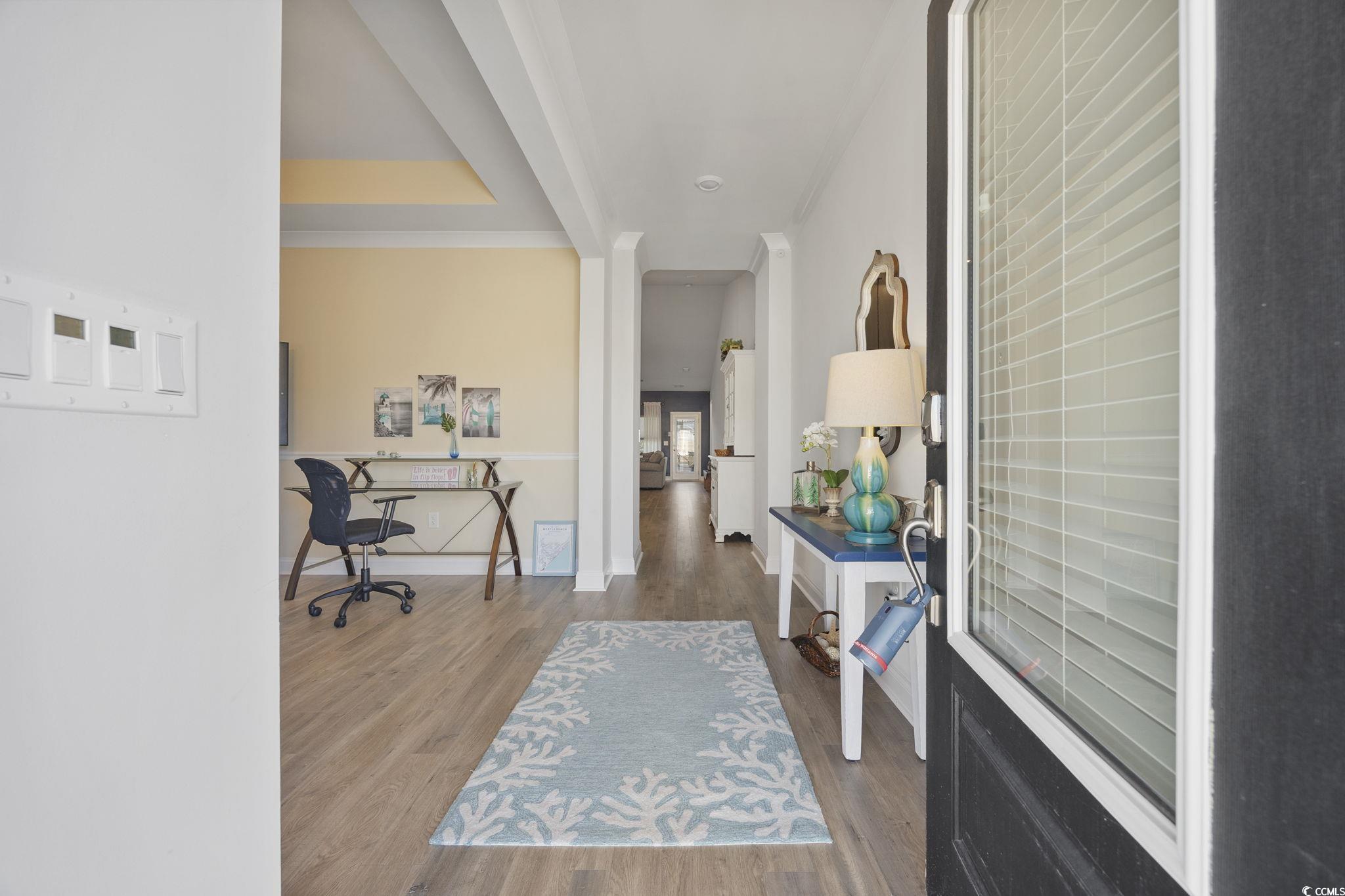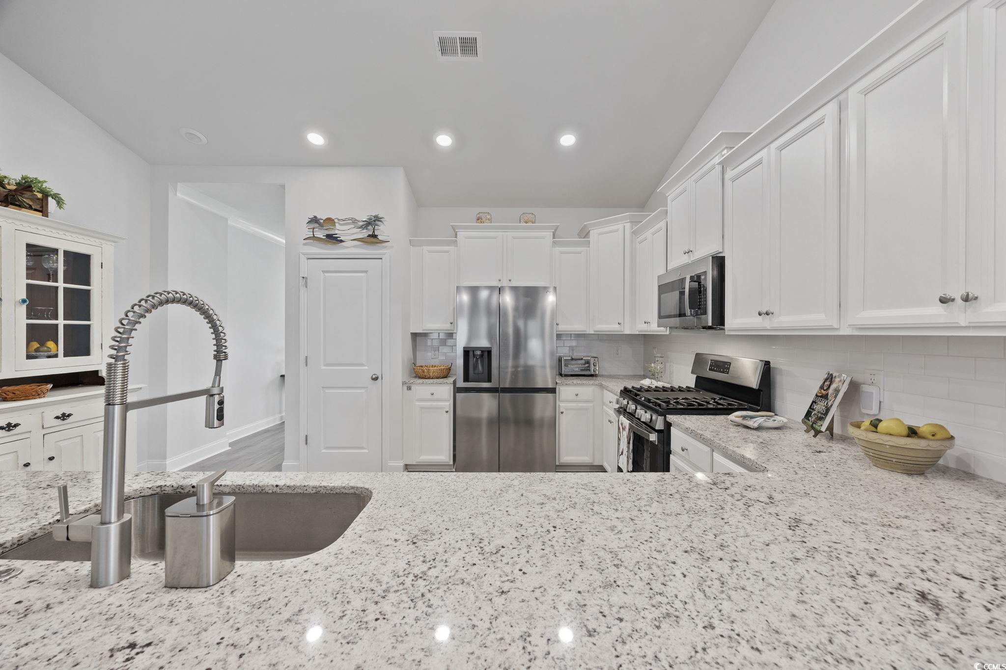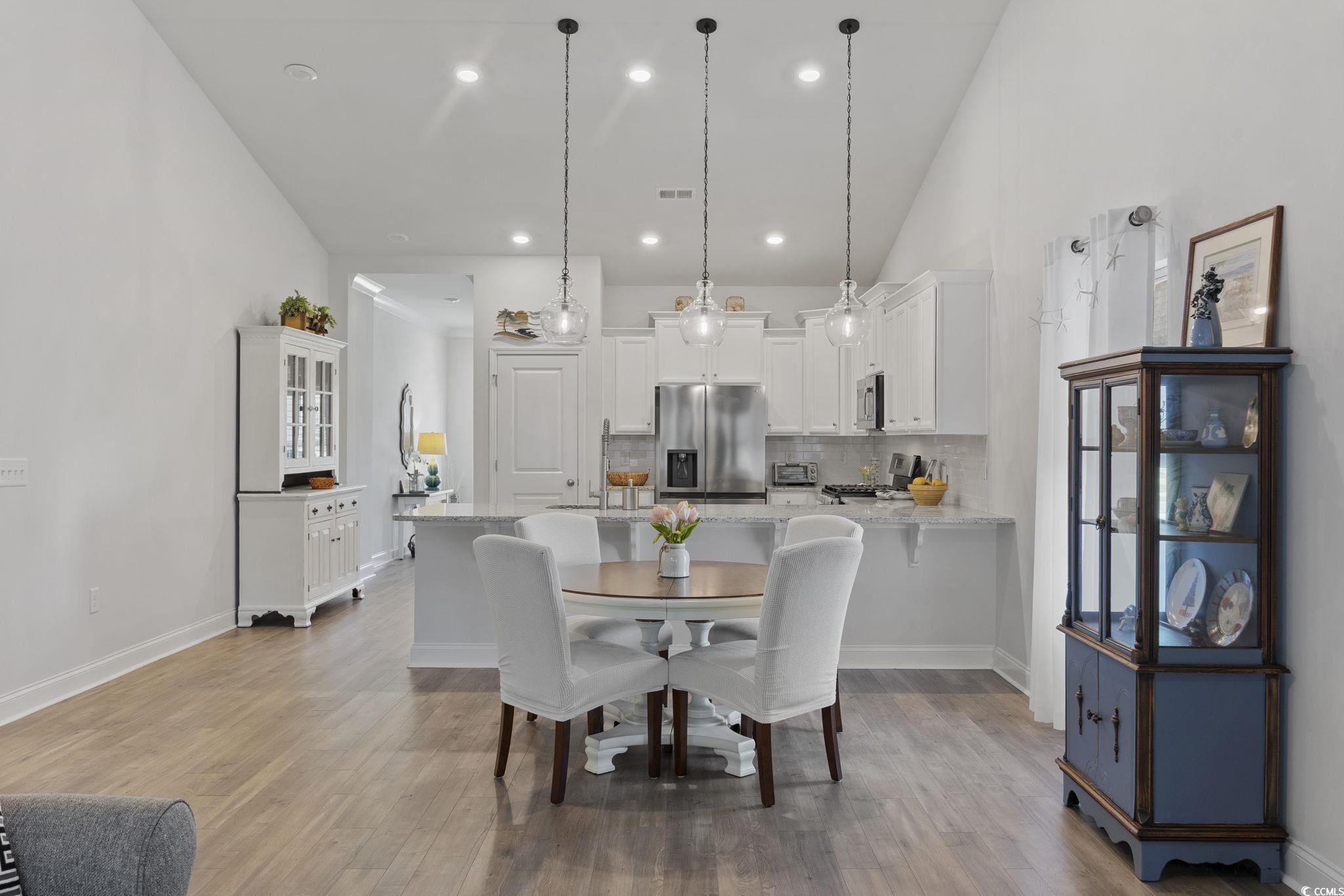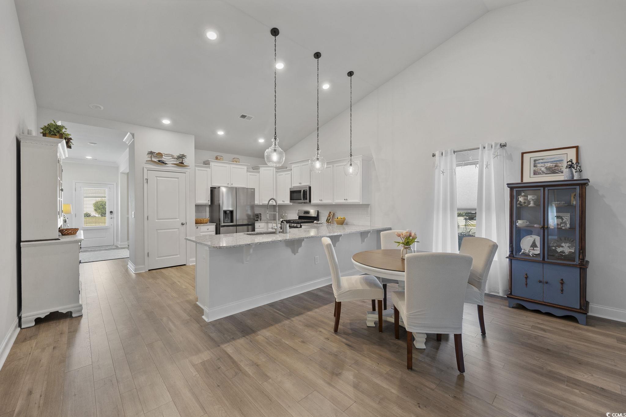 Do not miss touring this perfectly located, well-maintained, better than new home with upgrades throughout! So much to love about this home. Here are some highlights: Smart Home Technology,, Dining room with tray ceiling, chandelier, and plantation shutters. OPEN foor plan, Spacious, bright kitchen with upgraded cabinetry, natural gas range, tile backsplash, granite countertops, breakfast bar, and pantry. Large, light filled living area with vaulted ceilings, sleek LED lighting and access to the screened porch. LVP flooring throughout the common living areas. Primary suite features remote-controlled window treatments, tray ceiling and a custom walk-in closet! Primary bath also w/ upgraded cabinetry and countertops, a huge linen closet, private water closet, tiled, glass door walk-in shower with bench. The other two bedrooms are good size, have custom window treatments and spacious closets. Second full bathroom is off the hallway. Laundry room complete with utility sink, cabinets, and ceramic tile flooring. 2 car garage has built in cabinets and a workbench. Other upgrades include a tankless water heater, irrigation system, and decorative molding. The smart home technology allows you to lock /unlock doors / adjust thetemperature remotely. Belle Harbor amenities include a resort style pool , BBQ area, playground, and a pickle ball court. This location is very conveniently located close to the new Publix with surrounding restaurants & businesses. Market Common residents also enjoy miles of walking & jogging trails, a dog park, Savannah’s playground, fishing pavilions, and lovely lake views. a few minutes' walk, bike, or golf cart ride from shopping, a plethera of dining options, entertainment, beach access, and Myrtle Beach State Park Square footage is approximate and not guaranteed. Copy of builder floorplan available at the property. Buyer isresponsible for verification.