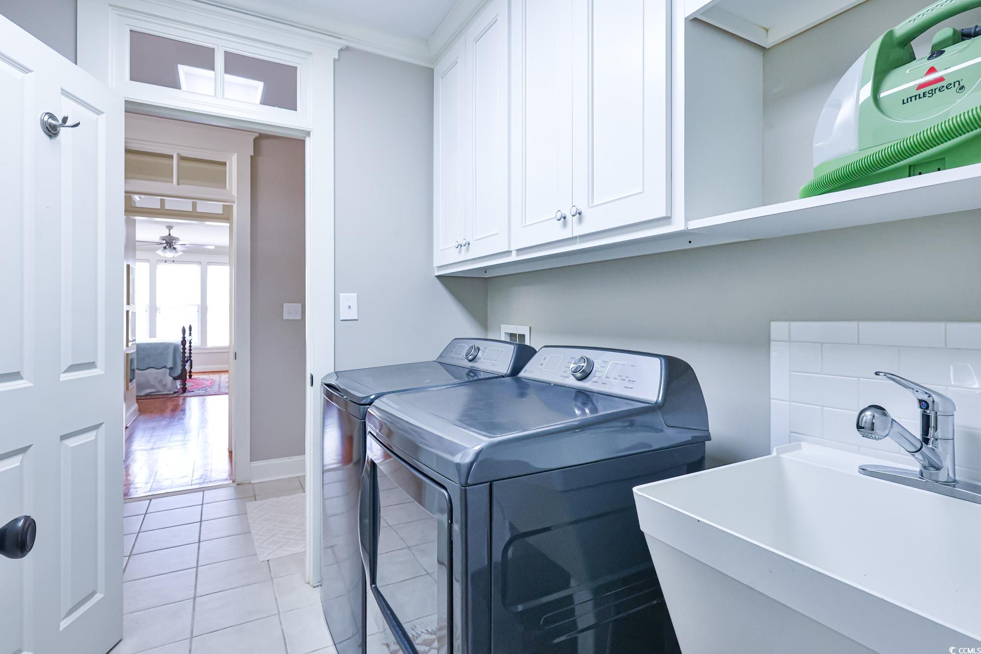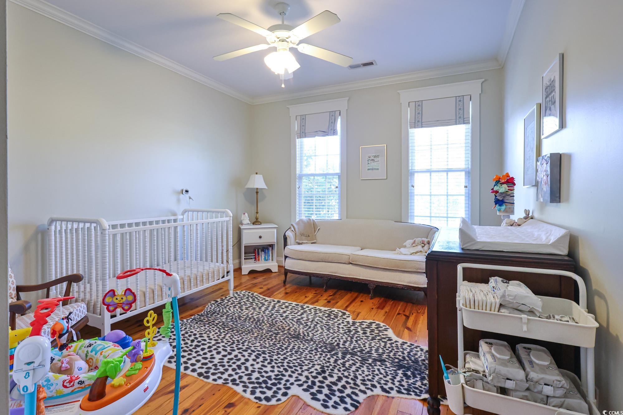 This stunning 5-bedroom, 3.5-bath Southern Charmer is located in the private, gated, luxury Intracoastal Waterway community of Carolina Waterway Plantation. Designed in elegant Lowcountry style, this custom-built home features Hardiplank siding, Bahama shutters on the upper windows, and exquisite knotty pine hardwood flooring throughout. The exterior has been newly and professionally painted, and professional landscaping with irrigation adds to the home’s impressive curb appeal. Inside, you'll find 10-foot ceilings on the main floor, an open and airy living space, and a beautifully updated kitchen with stainless steel appliances, granite countertops, and a spacious breakfast area. The main level includes the master suite plus two additional bedrooms, along with 2.5 bathrooms. Upstairs offers two more bedrooms, a full bath, and a landing area—with scenic views of the Intracoastal Waterway from the rear bedroom and hallway. Enjoy outdoor living on the charming covered front porch or the custom rear patio. A detached storage building, built to match the home’s style, provides convenience and extra space. Carolina Waterway Plantation offers resort-style amenities including a pool, clubhouse, tennis courts, boat launch, boat storage, boat ramp, and playground—perfect for an active coastal lifestyle.