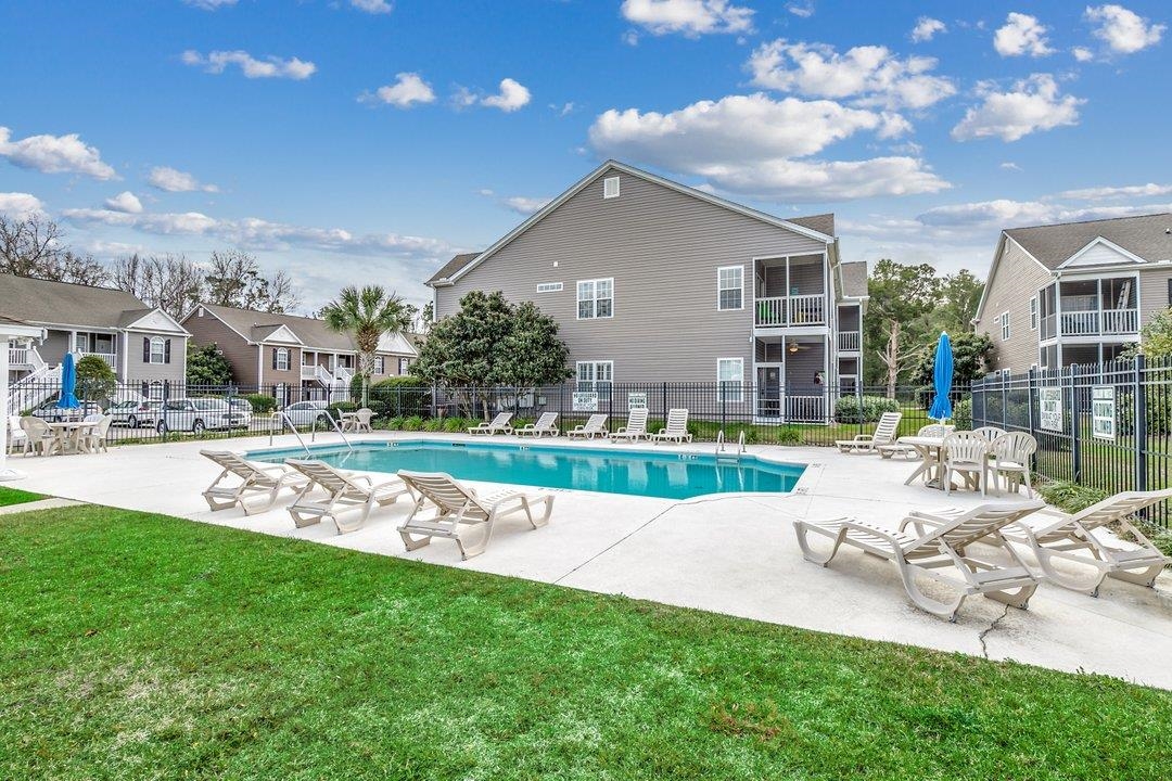 Pawleys Pavilion is located in the heart of Litchfield Mainland and is a short drive to area beaches, restaurants, night life, shopping, and golf courses There's much to love about this top floor spacious 3BR/2BA end-unit w/screened-in porch, vaulted ceilings inside along with newly installed wood floors and new paint throughout! plus, spacious dining area, breakfast bar, Split bedroom plan with master bedroom w/ two closets (one walk-in closet), master bathroom with a brand new garden tub, Ceiling fans with lights in each bedroom and in the great room and even a spacious Laundry room! Direct access to Stables Park, offering disc golf, pickleball courts, and more. The greenway connects you to Brookgreen Gardens, Huntington Beach State Park, and Murrells Inlet. Pawleys Pavilion has a gated entrance for added security. Reserved parking spot and attached downstairs storage room as well. Pawleys Pavilion replaced the roofs in 2022/2023 All measurements and square footage are approximate and not guaranteed. Buyer is responsible for verification