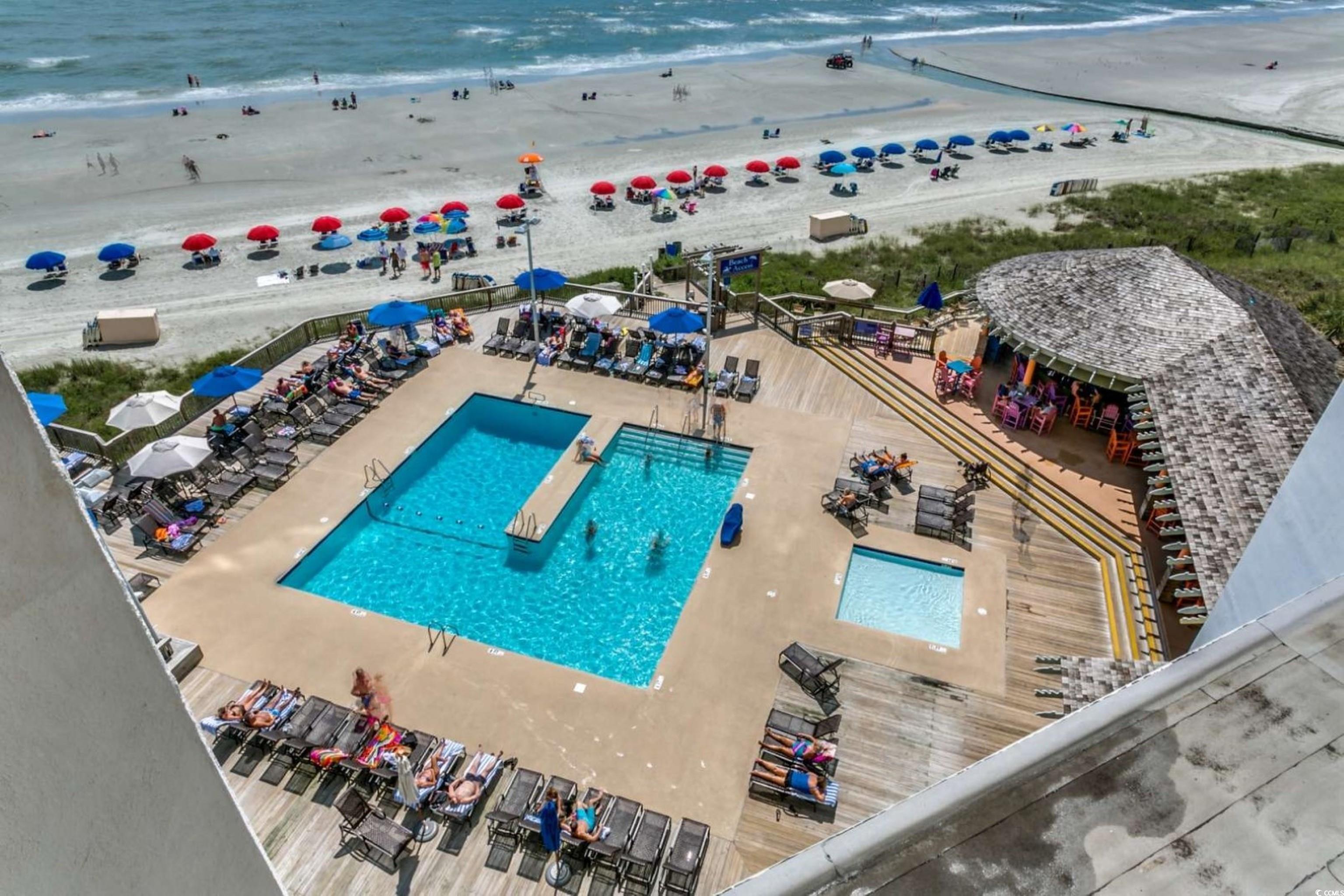 Once you step out on to this large balcony overlooking the ocean and the Kingston Resort, you will say WOW! This two-bedroom, two-bath residence has a large open floor plan with over 1,900 sq. ft. The kitchen has solid surface counter tops, stainless steel appliances, dining room seats 8. Split bedroom floor plan with walk-in closets, large master suite that steps out to the balcony, master bath with walk-in shower and whirlpool tub. Sold fully furnished. This tower is connected to the oceanfront Hilton hotel with restaurant, lounge, 24 hour security, parking garage and great amenities. Great primary residence, second home, or rental option.