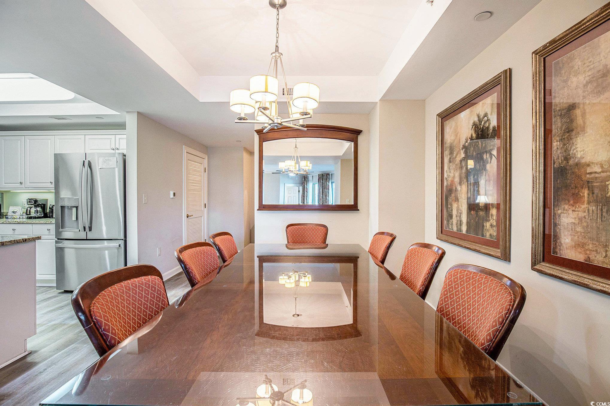 Beautiful 3-bedroom, 3-bath condo offering stunning Atlantic Ocean views. Features LVP flooring throughout, with tile in baths and laundry. The open living area and master bedroom both open to an expansive balcony filled with natural light. Master suite includes a tray ceiling, walk-in closet, and ensuite bath with jetted tub, shower, and double vanity. Spacious guest bedrooms each accommodate two queen beds, with two additional full baths--one with a shower, the other with a tub/shower combo. The kitchen boasts granite countertops, stainless steel appliances, and abundant storage. Laundry room includes full-size washer, dryer, and extra space. Perfect as a primary home, vacation retreat, or investment property. Royale Palms has wonderful amenities including an outdoor pool, tennis courts, the Veranda Bar, and The Royale Day Spa. And, of course, it's right on the beautiful Atlantic Ocean with 60 miles of white sandy beaches. Owners also have use of many of the amenities at the Hilton Hotel and the Embassy Suites. Royale Palms is located close to all of the shopping, dining, entertainment, golf and area attractions that the Grand Strand has to offer.