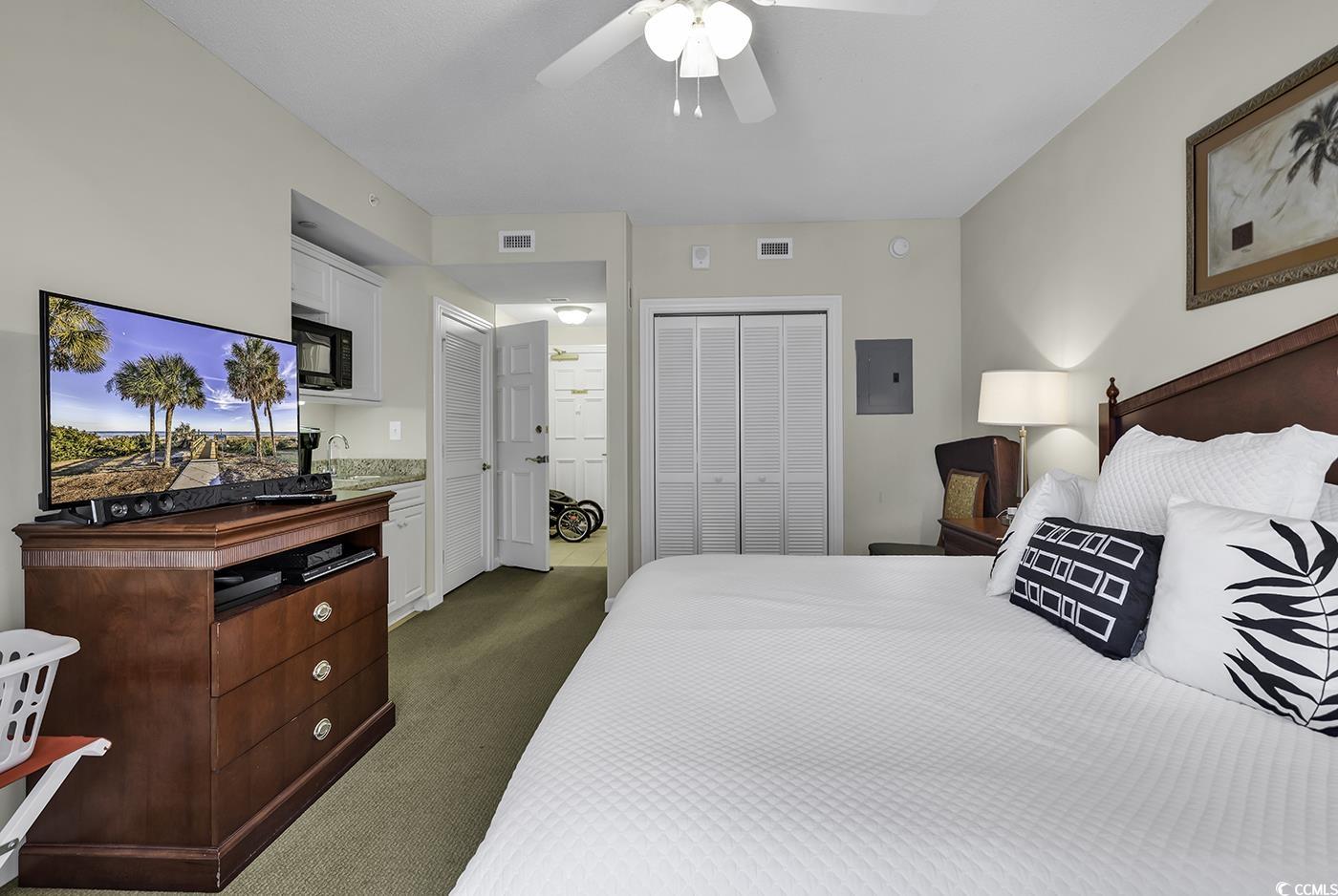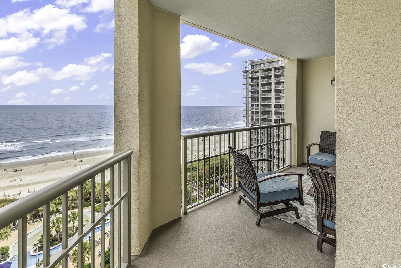 Direct oceanfront three-bedroom three-bathroom corner lockout condo in the gated condo complex of Royale Palms in Myrtle Beach. This furnished 9th floor unit is not currently on a rental program and only being used as a secondary residence. This popular floor plan that has the capability to be used as a one and two-bedroom OR as a three-bedroom, a great rental option. It comes with tile flooring and granite countertops in the kitchen area. Not to mention, it has over 2000 total sq. ft. and a spacious balcony. The master bedroom includes plenty of space and DIRECT OCEAN VIEWS. The bathroom area has a double sink, walk in shower, and tub. The third bedroom is set up with the lock-out feature and can be rented separately. Both HVAC replaced in 2022. Washer/Dryer replaced 2021. Unit has 2 separate hot water heaters. HOA does not include electric inside the unit. Whether you are looking for your forever home or a vacation get-away you won't want to miss this one! All local attractions, restaurants, shopping, and golf courses are in close proximity.
