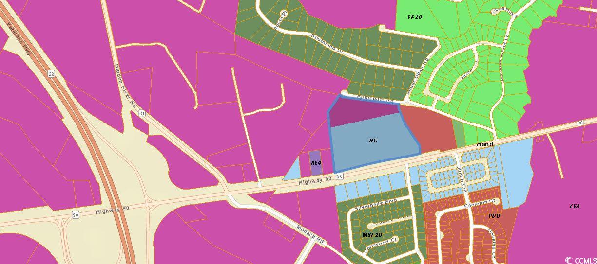 19.98 acre development tract - zoned HC (small portion in rear is zoned CFA) - located near SC 22 / SC 90 interchange