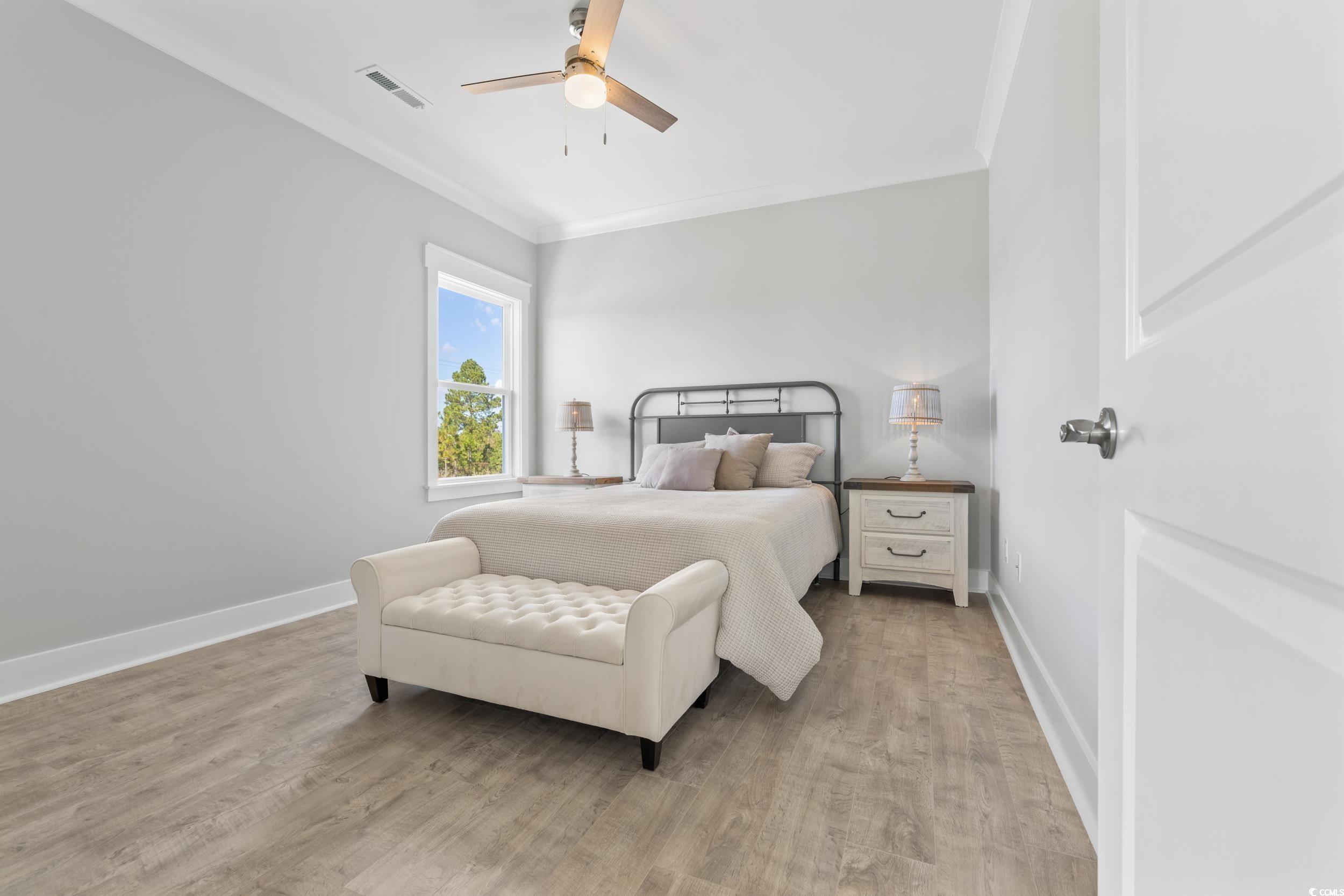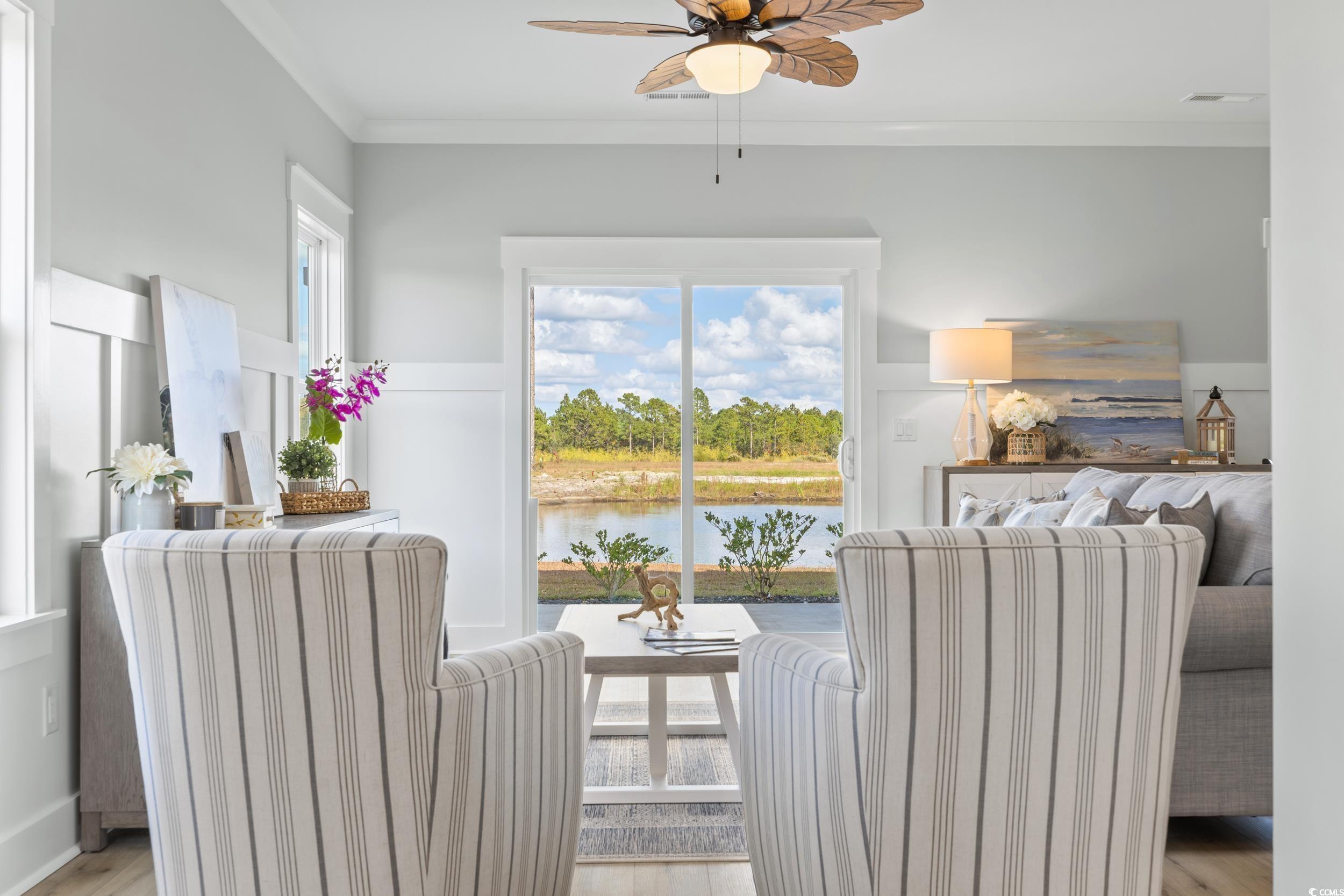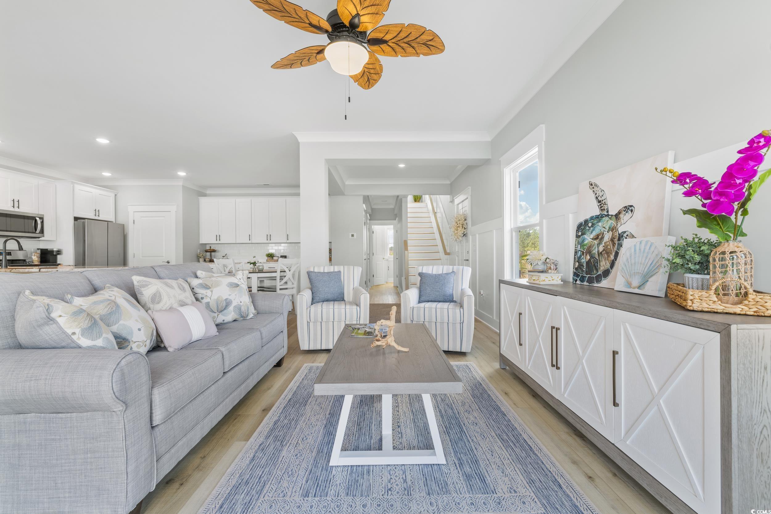 Discover Watertower Estates – Investors Dream! North Myrtle Beach Living at Its Finest. Welcome to Watertower Estates, a sought-after community in the heart of North Myrtle Beach, where coastal charm meets modern living. This beautifully designed 5-bedroom, 3.5-bath townhome offers the perfect combination of style, functionality, and investment appeal. True Townhome Ownership – You’ll own the land beneath your home, and short-term rentals are permitted, offering flexibility whether you're looking for a full-time residence, vacation getaway, or income property. As a bonus, this is a natural gas community, something rarely found in the area. Step inside and you’re greeted by high9-foot ceilings and elegant luxury vinyl plank flooring. Crown molding upgraded 3¼" window trim, and 5¼" baseboards add a touch of sophistication throughout the home. The open concept living and dining area flows effortlessly into a stunning kitchen, complete with granite countertops, tile backsplash, stainless steel appliances (including refrigerator), a large breakfast island, and a generous walk-in pantry. The main floor also features a half bath, a spacious laundry room, and access to a finished 2-car garage—complete with painted walls and hung drywall for a polished look. Upstairs, retreat to a luxurious owner’s suite featuring a sitting area, dual walk-in closets, double vanity, private water closet, and a tiled walk-in shower. Start your day with coffee on the private balcony overlooking the tranquil pond. Two additional bedrooms share a Jack-and-Jill bathroom—perfect for guests or family members. Residents enjoy low HOA fees that include access to the community pool, pickle ball courts, golf simulator, clubhouse, and scenic lakes. Just minutes from local shopping, top-rated restaurants, golf, and the beach—and only a short drive to Barefoot Landing—this location truly has it all. Whether you're seeking a forever home or a smart investment, this townhome delivers on every level. Schedule your showing today and experience life in one of North Myrtle Beach’s most desirable neighborhoods! PHOTOS ARE OF OUR MODEL, NOT REPRESENTATIVE OF HOMES CURRENTLY UNDER CONSTRUCTION!! THERE ARE MANY PLANS AND FINISHES TO CHOOSE FROM.