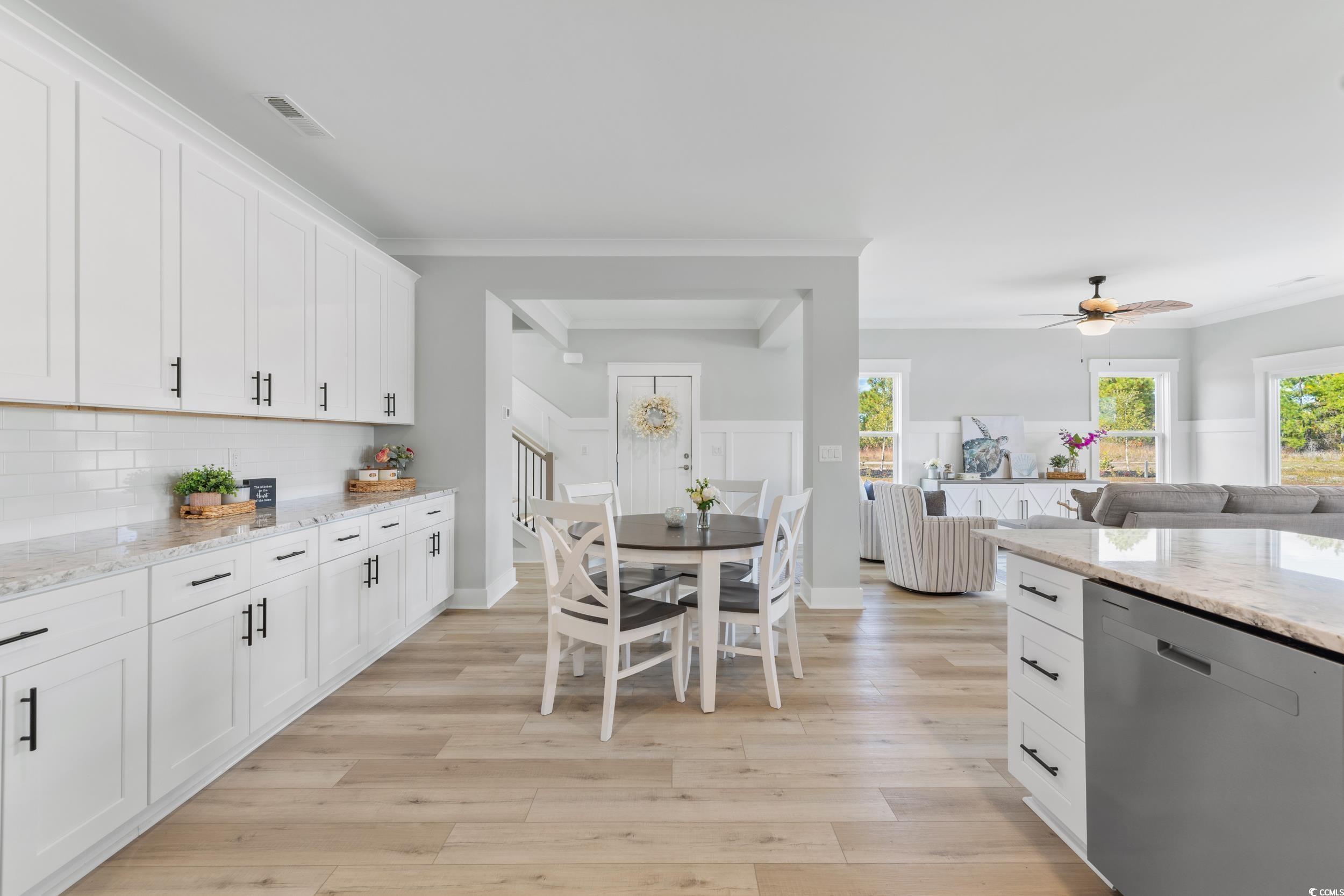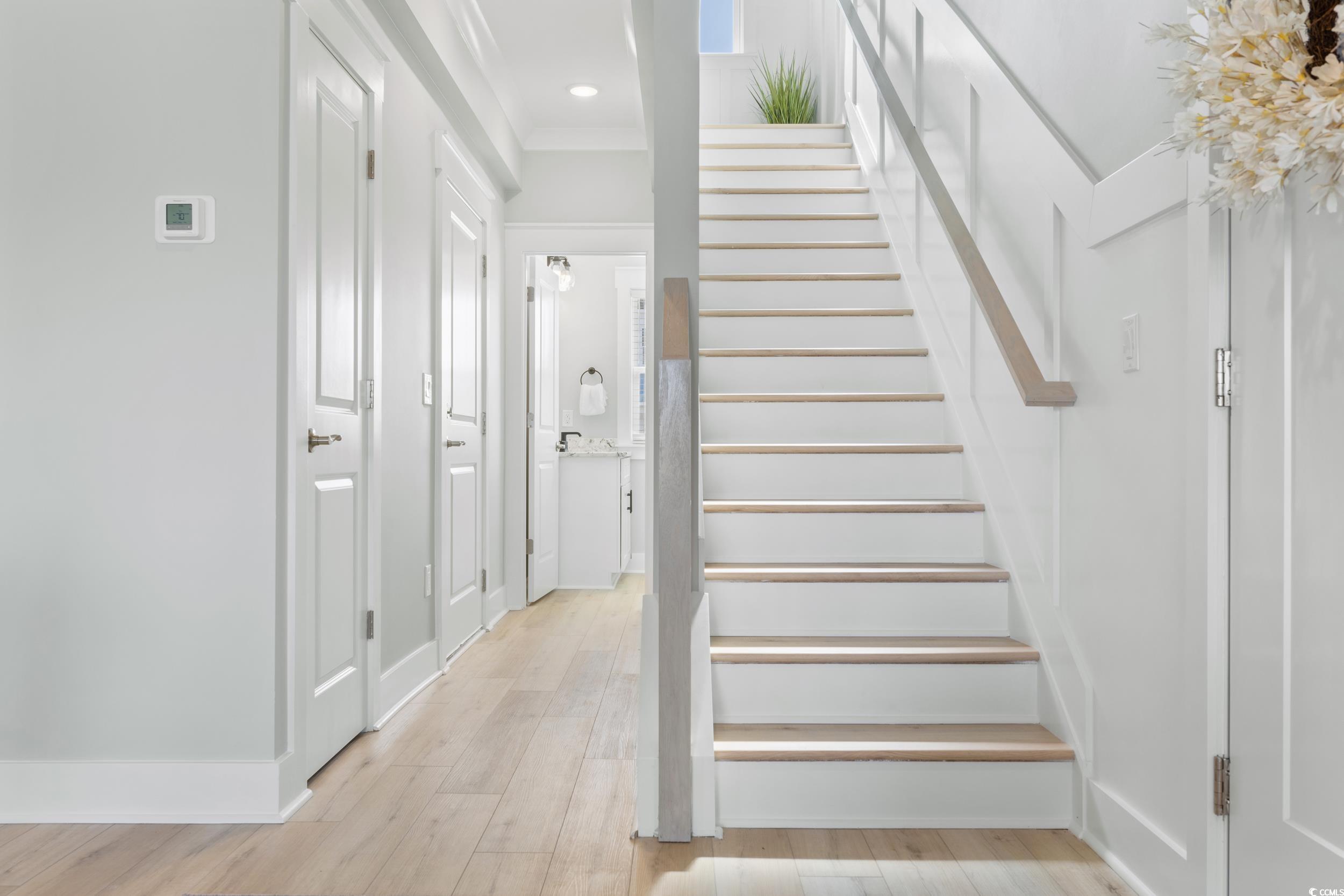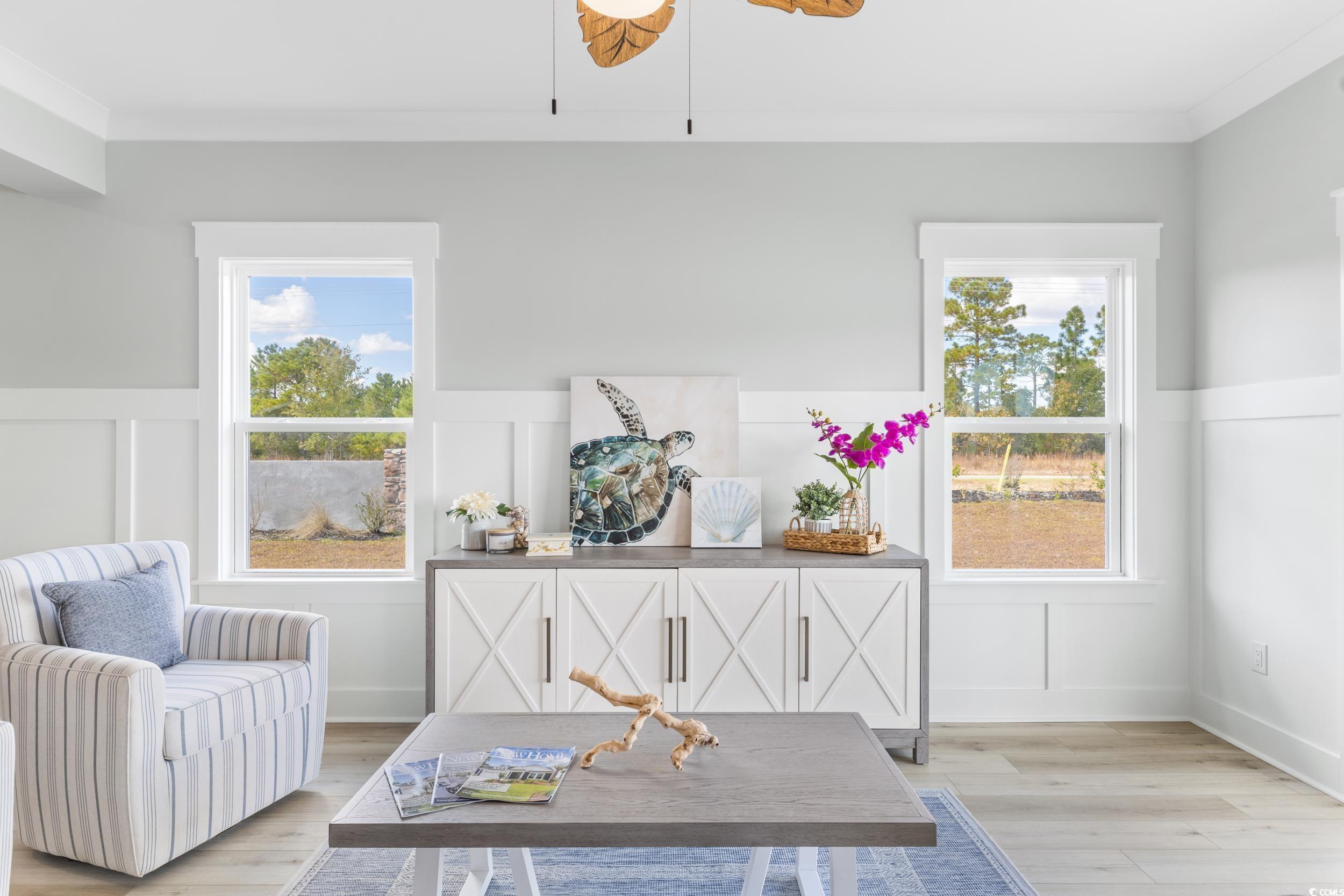 Discover Watertower Estates – Investors Dream! North Myrtle Beach Living at Its Finest. Welcome to Watertower Estates, a sought-after community in the heart of North Myrtle Beach, where coastal charm meets modern living. This beautifully designed 5-bedroom, 3.5-bath townhome offers the perfect combination of style, functionality, and investment appeal. True Townhome Ownership – You’ll own the land beneath your home, and short-term rentals are permitted, offering flexibility whether you're looking for a full-time residence, vacation getaway, or income property. As a bonus, this is a natural gas community, something rarely found in the area. Step inside and you’re greeted by high9-foot ceilings and elegant luxury vinyl plank flooring. Crown molding upgraded 3¼" window trim, and 5¼" baseboards add a touch of sophistication throughout the home. The open concept living and dining area flows effortlessly into a stunning kitchen, complete with granite countertops, tile backsplash, stainless steel appliances (including refrigerator), a large breakfast island, and a generous walk-in pantry. The main floor also features a half bath, a spacious laundry room, and access to a finished 2-car garage—complete with painted walls and hung drywall for a polished look. Upstairs, retreat to a luxurious owner’s suite featuring a sitting area, dual walk-in closets, double vanity, private water closet, and a tiled walk-in shower. Start your day with coffee on the private balcony overlooking the tranquil pond. Two additional bedrooms share a Jack-and-Jill bathroom—perfect for guests or family members. Residents enjoy low HOA fees that include access to the community pool, pickle ball courts, golf simulator, clubhouse, and scenic lakes. Just minutes from local shopping, top-rated restaurants, golf, and the beach—and only a short drive to Barefoot Landing—this location truly has it all. Whether you're seeking a forever home or a smart investment, this townhome delivers on every level. Schedule your showing today and experience life in one of North Myrtle Beach’s most desirable neighborhoods! PHOTOS ARE OF OUR MODEL, NOT REPRESENTATIVE OF HOMES CURRENTLY UNDER CONSTRUCTION!! THERE ARE MANY PLANS AND FINISHES TO CHOOSE FROM.
