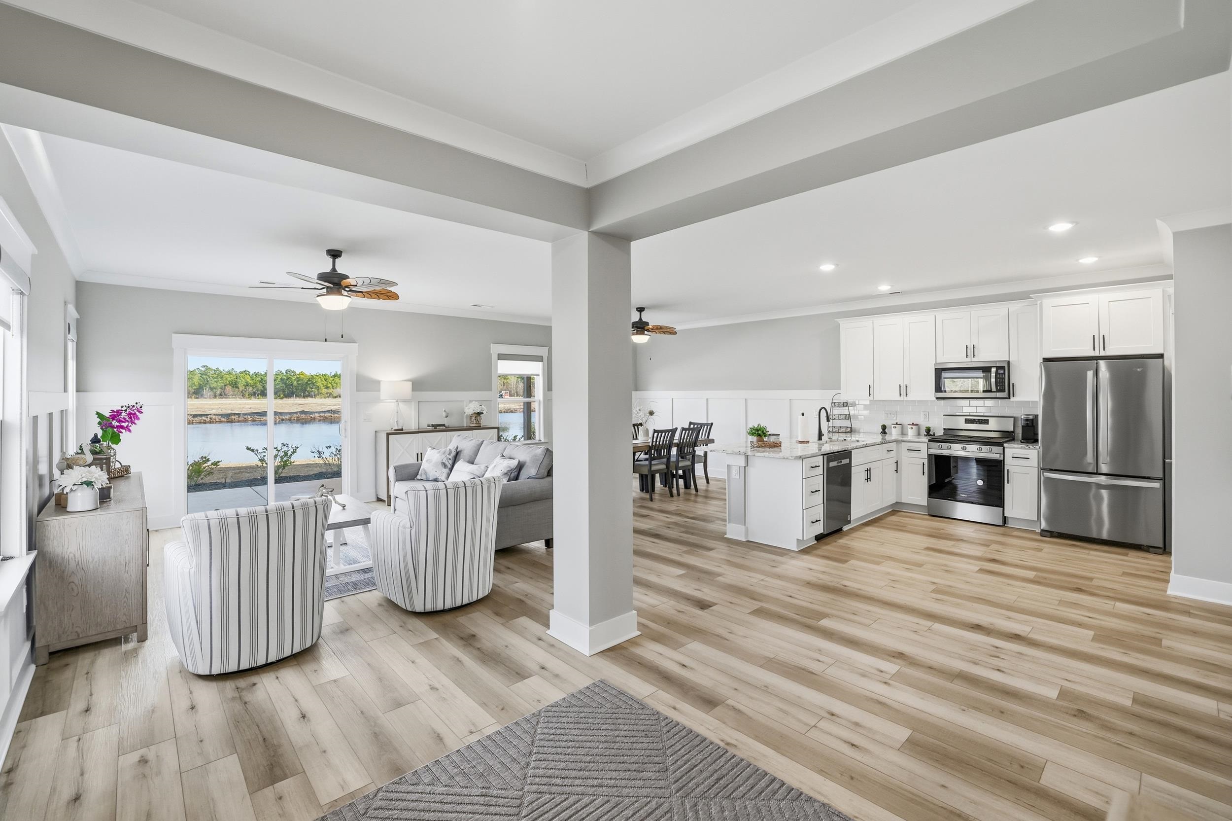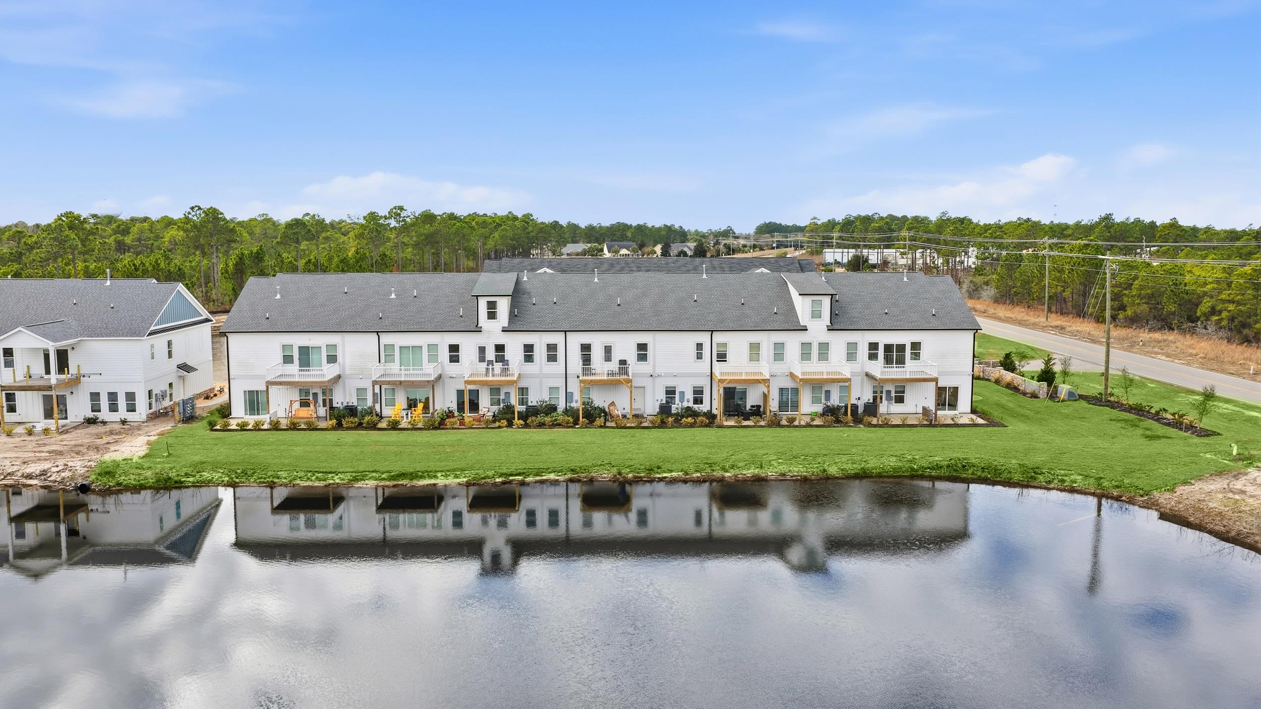 Coastal living, short term rental potential, and modern design come together at Watertower Estates, one of North Myrtle Beach’s most desirable new construction communities. This beautifully designed 3 bedroom 2.5 bath townhome offers a rare opportunity for buyers seeking a primary residence, second home, or income producing property with true townhome ownership, ownership of the land, short term rentals permitted, natural gas service, and low HOA fees. Inside, 9 foot ceilings, luxury vinyl plank flooring, crown molding, 3¼ window trim, and 5¼ baseboards create a refined and welcoming atmosphere throughout. The open concept living and dining area flows seamlessly into a stunning kitchen featuring granite countertops, tile backsplash, stainless steel appliances including refrigerator, large breakfast island, and a spacious walk in pantry, making it ideal for entertaining and everyday coastal living. The main level also includes a half bath, generous laundry room, and access to a finished 1 car garage with painted walls and hung drywall for a polished low maintenance experience. Upstairs, the owners suite serves as a private retreat with double vanity, private water closet, tiled walk in shower, and a private balcony overlooking the tranquil pond, perfect for starting and ending each day in comfort. Two additional bedrooms share a Jack and Jill bathroom, offering excellent flexibility for guests, family, or rental use. Life at Watertower Estates feels effortless, with an amenity rich setting that includes a pool, pickleball courts, clubhouse, and peaceful lake views woven throughout the community. Whether your day includes a morning swim, pickleball with friends, time at the clubhouse, or sunset walks by the water, the lifestyle here is designed to feel like a getaway. Just minutes from North Myrtle Beach beaches, shopping, dining, championship golf, and Barefoot Landing, this location consistently performs for both lifestyle buyers and investors. Opportunities that combine modern construction, strong rental appeal, and this level of access to everything the area offers do not come around often, and this is a property that continues to make sense long after closing.