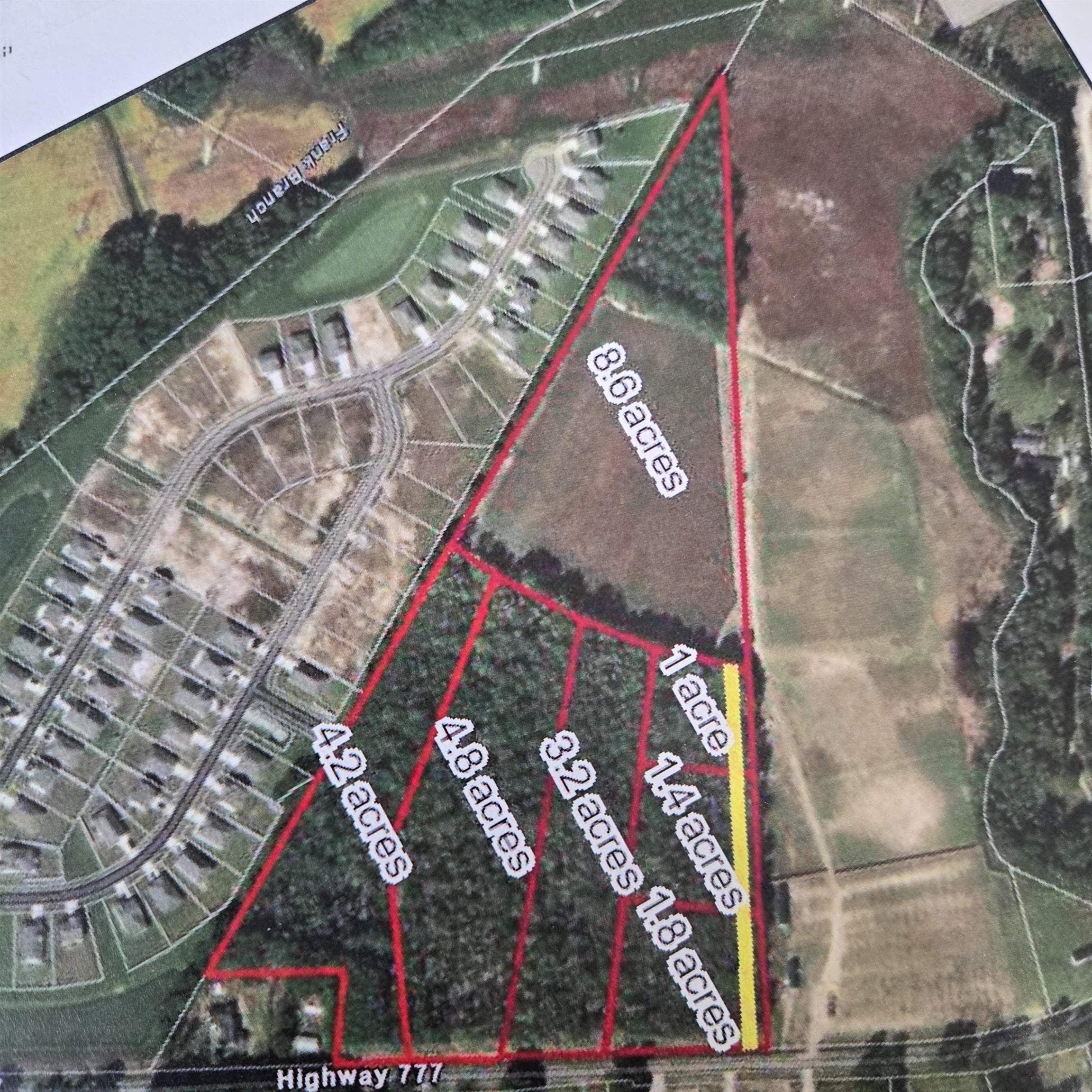 The Total Tract is approx 25.35 acres. Seller is willing to subdivide in the manner shown. This Tract is 1.8 acres on the right hand corner of the diagram.. If you are wanting a different size tract, we can discuss. Buyer will be responsible for any land surveying and subdividing work. List agent is well experienced with the process and will assist if needed. Public water and sewage is available. Property is a few minutes from Hwy 22 and 31. Rural and spacious but close to 22, 31, 90, 905. 20 to Downtown Conway and 15 to downtown Loris. Great place for your homestead. The Vacant land to the right in the photo is a 25 acres recreational field for soccer.