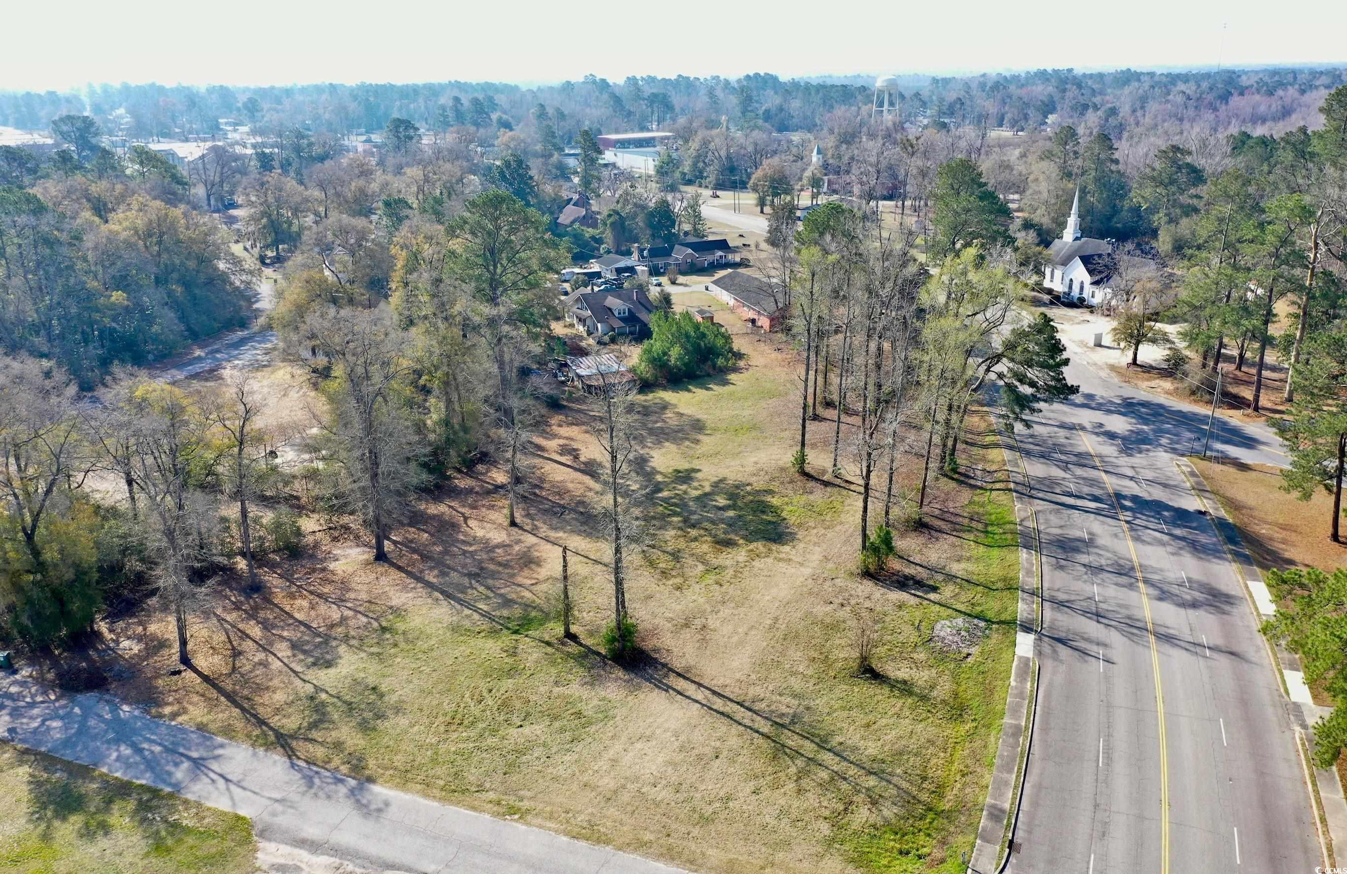 Corner lot that is partially cleared in a charming small town. Estimated at 1.30 of an acre. STICK BUILT ONLY! NO TINY HOMES! No HOA'S!!! No timeframe on building! TWO PARCELS CONVEY! Water and sewer run on that road. Buyer will have to pay tap in fees. You are an estimate of 50 minutes away from North Myrtle Beach, SC and all that it offers. Which means you are tucked away from all the beach traffic, but close enough if you want to visit anytime. Buyer is responsible for all measurement verifications.