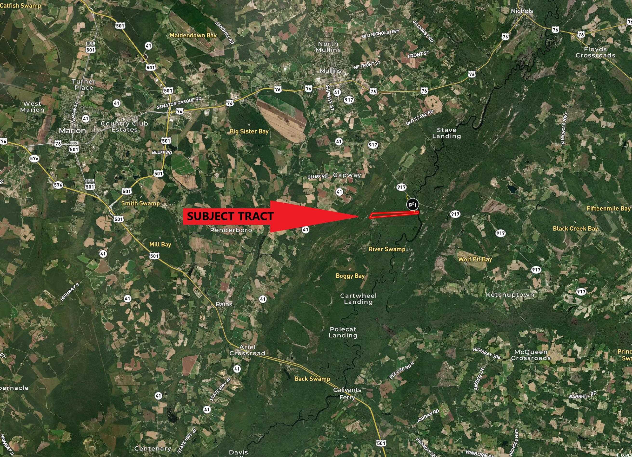 Perfect tract of land right on the banks of the Little Pee Dee River with two manicured lots included with private river access and then 800 feet of high road frontage along Parker Road and 90 acres in between to hunt deer, turkey, ducks, and big fat hogs! It is the paradise every hunter and fisherman has been waiting to find! The Little Pee Dee River is one of the last pristine systems in the state that nearly checks off every available necessity for a die hard hunter or angler with a pulse. Few tracts become available along this corridor with easy access from the highway with cleared building lots with ponds and a large section of woodlands filled with wildlife. And if somebody wanted to build within a private area away from the river, they have several acres of high, sandy ground on the west side along the 800 feet of frontage along Parker Road. The tract contains pine/hardwood covered ridges, flooded timber, oxbow lakes, and river and road frontage. Tract has public road access from two county roads on either end of the property. The majority of the tract is covered in 10-12 year old timber. The tract lies along the banks of the Little Pee Dee River with nearly 300 feet of frontage. The Pee Dee Corridor is nationally recognized within the Eastern Waterfowl Flyway and provides excellent wintering area for waterfowl in northeastern S.C.. This tract is found on the Marion County side of the river along the greater Pee Dee Migration Route through S.C. This tract is part of a very large wooded corridor that extends from 40 to 50 miles up into North Carolina down south to the confluence with the Pee Dee River and then all the way to Georgetown. This tract is right in the middle of this wooded corridor that provides a massive habitat corridor for turkeys, small game, and could easily house some of the biggest and oldest bucks in S.C. Since this tract is located within this Little Pee Dee River corridor, wild hogs roam this area freely and are one of the prime hunting opportunities outside of the deer, turkey, waterfowl, and small game in this area. Their are two places to potentially build homes on this tract, including the two river lots on the east side and then along the 800 feet of frontage along Parker Road. Tract could be split into multiple tracts with some restrictions. Please inquire for more information. It's a unique hunting tract with abundant habitat for deer, ducks, wild hogs, and turkey secluded within the Marion County countryside, but is only 4 miles east of Mullins and just off southwest of S.C. 917. The tract is only 40 minutes to Myrtle Beach and North Myrtle Beach, 30 minutes to Florence, 20 minutes to I-95, 30 minutes from Lumberton, 1.5 hours from Columbia, and 2.5 hours from Charlotte and Raleigh. For hunters and anglers looking for a place to build a river-front house, fish, hunt, and live within 40 minutes of Myrtle Beach, this is it! (An adjoining 296-acre tract is available that contains over 1/2 mile of river frontage, massive timber, and a beautiful oxbow lake is also available to be purchased. See website for additional details)