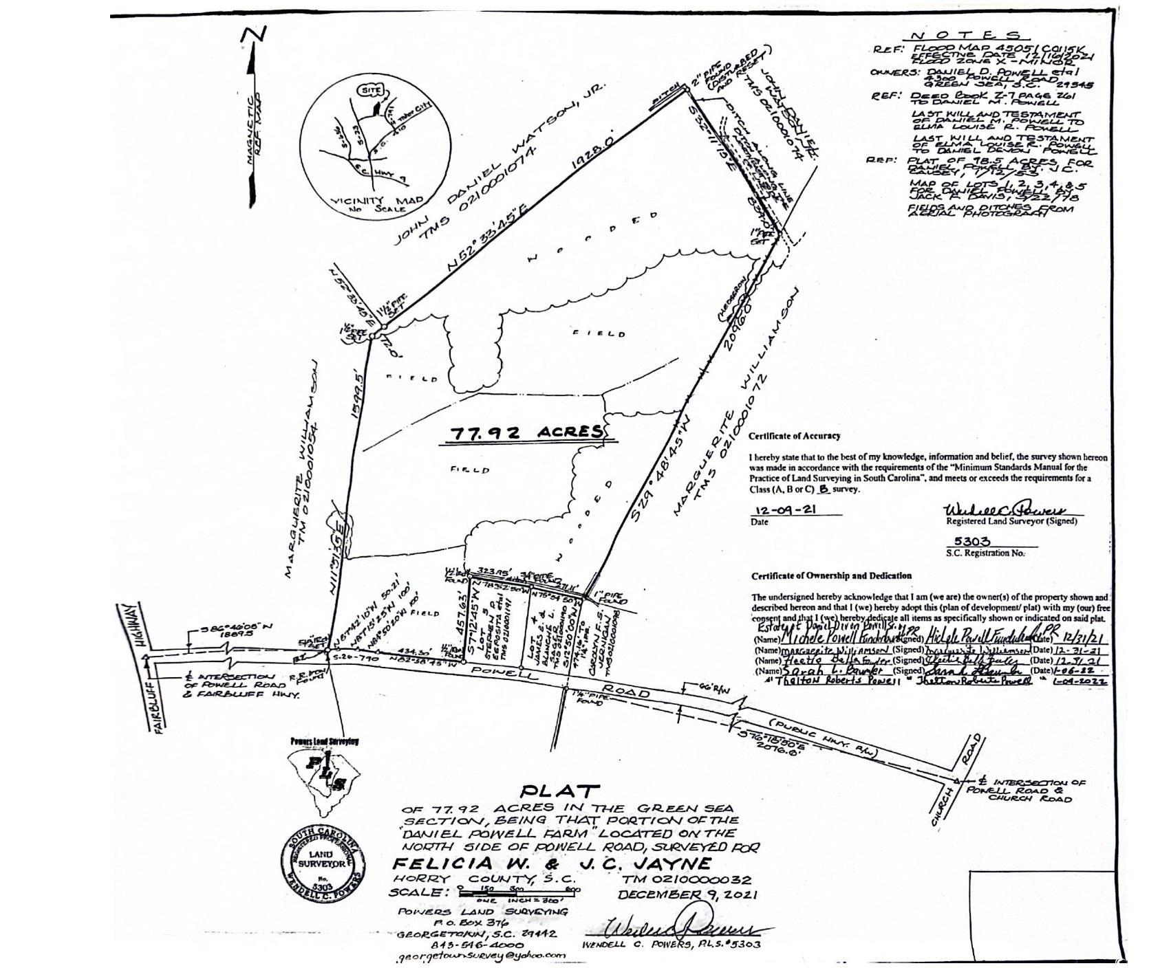 *** This stunning property offers an exceptional opportunity to build your dream home or develop a subdivision on an expansive piece of land. Boasting approximately 46 acres of cleared land and 23 acres of forestry, this tract is perfect for a homestead, farm, or agricultural pursuits. The property is equipped with a 4-bedroom septic system, a well, a 40x60 pole barn, a 16x40 agricultural building, and a 12x12shed with Hardie siding. The designated homesite has a permit for a 2,784 sqft house with a detached 2-story, 3-car garage.Underground electrical utilities are installed, extending to the homesite where the pole barn is located. Additionally, there's a crushed gravel driveway, and a separate septic permit for a 1,500 sqft home with a 2-bath system across the pasture. City water and fiber optic cable have been run to the front of the property, which has 600 feet of road frontage. If you are planning to build your dream home, architectural and engineering plans are available upon request, making it easier to visualize and plan your dream project. Nestled in a private and serene location, this beautiful homesite is surrounded by nature, offering sightings of turkeys, deer, foxes, and a variety of birds. Enjoy breathtaking sunsets and star-filled nights, making it the perfect paradise for nature lovers. The open fields, once used for crops, have been carefully maintained and are now ready for agricultural use. Come and experience the tranquility and beauty of Green Sea. This is truly a dream come true for anyone looking to create their own slice of heaven. Seller is willing to negotiate subdividing 12 acre tracts. Contact listing agent for details.